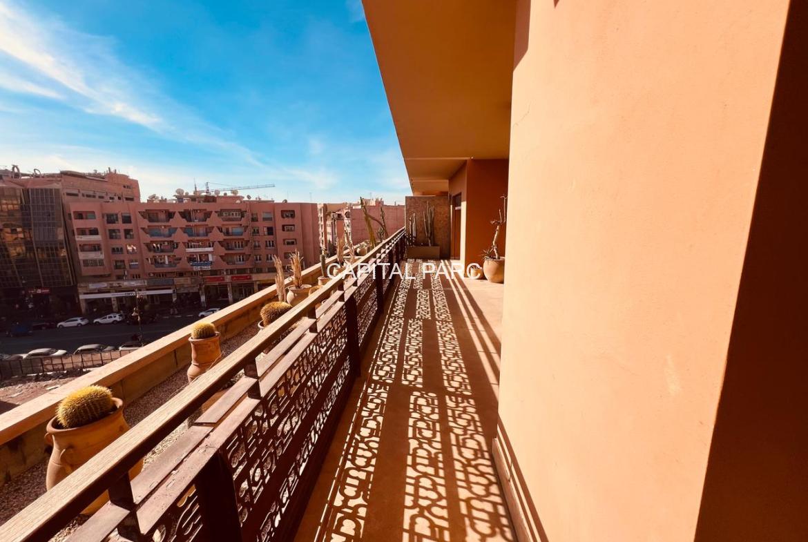 Cet appartement est placé au centre de gueliz a marrakech sur le boulevard mohamed 5 , grand appartement de 184 m , omposé de 3 chambres , un grand salon , une cuisine , une terrasse autour de la maison et une place parking avec boxe .