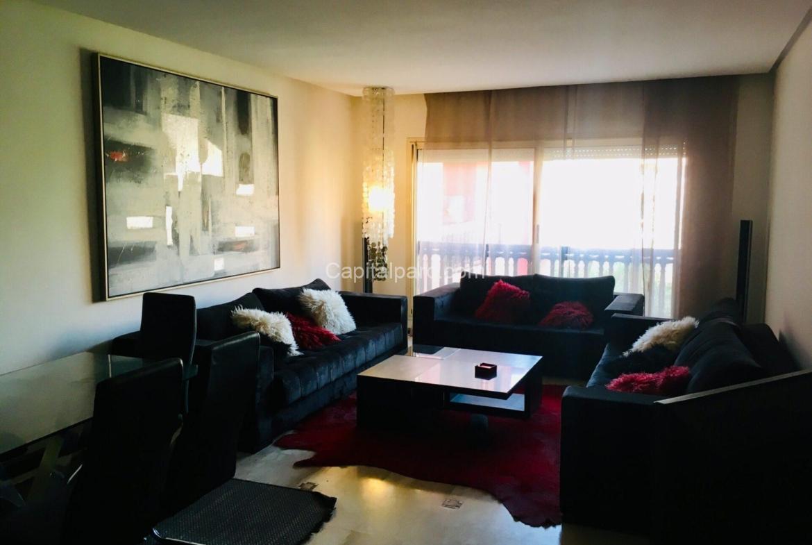 Très bel appartement de 125 m situé dans une belle résidence dans le prestigieux quartier de l’hivernage À marrakech , appartement de 3chambres , un hall , une salle de bain , une salle de douche dans la chambre principale , une grande cuisine et un petit balcon . Resudence de classe , bien entretenue , quartier sympa avec petits commerces de proximité.