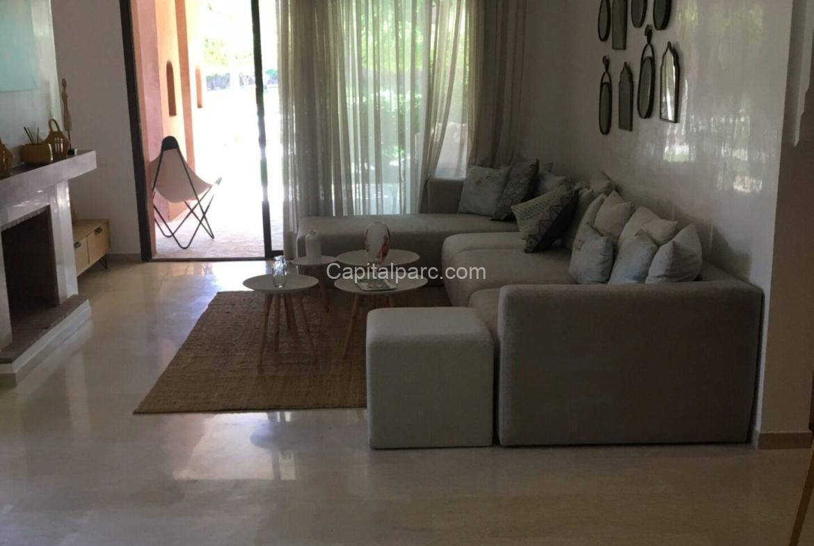 Bel appartement rez-de-chaussée, 129 m , deux chambres , deux salles de bains , cuisine équipée, toilette invitée , belle terrasse , belle finition , climatisation réversible , parquet au sol , double cabine de douche dans la chambre principale , résidence avec piscine et beaucoup de verdures . Proximité des grandes résidences , super-marchés et établissements hôteliers .
