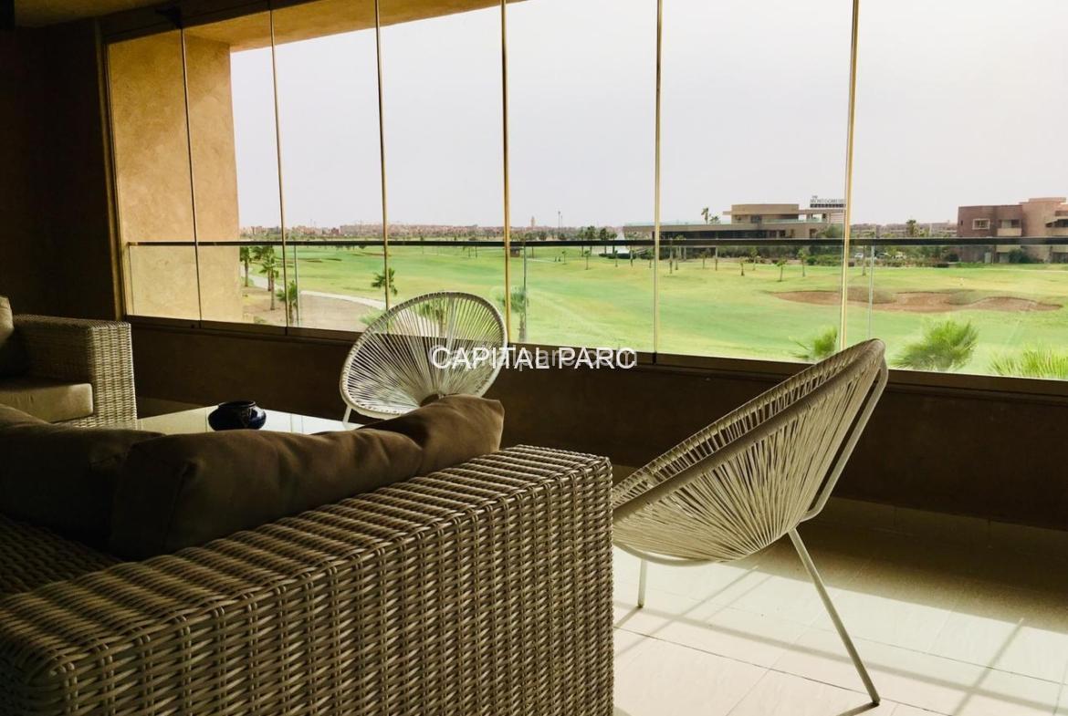 Bel appartement de 151 m, bien meublé , décoré avec goût , double salon , cuisine ouverte bien équipée , deux chambres dont une parentale avec sa salle de bain et toilette , belle terrasse avec vu sur le couché du soleil et le golf . Résidence avec un parcours de golf , une bonne maintenance des parties commune et le ne sécurité maintenue H24