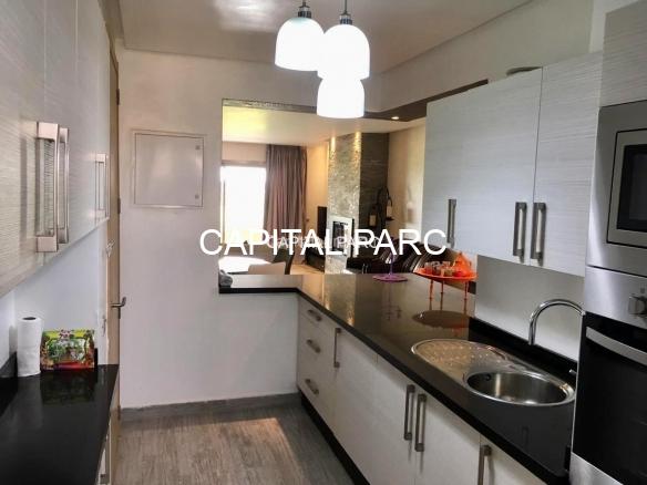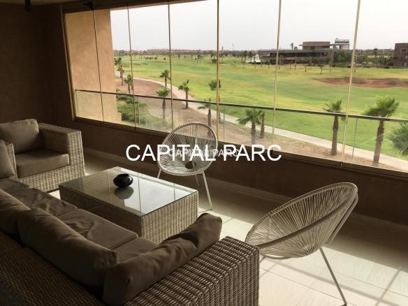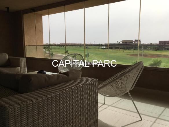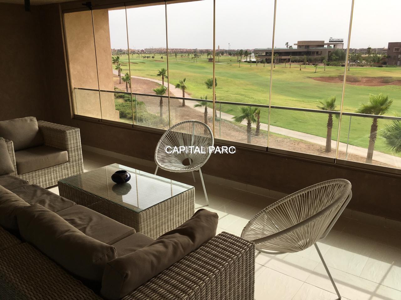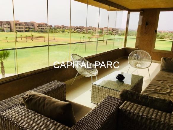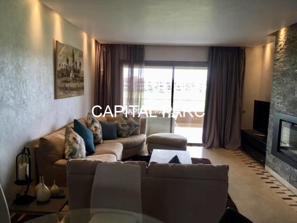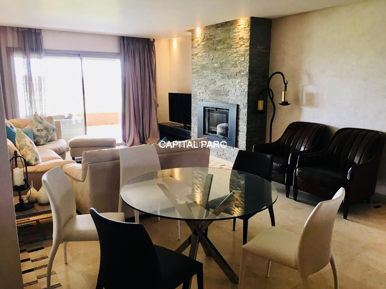 Bel appartement de 151 m, bien meublé , décoré avec goût , double salon , cuisine ouverte bien équipée , deux chambres dont une parentale avec sa salle de bain et toilette , belle terrasse avec vu sur le couché du soleil et le golf . Résidence avec un parcours de golf , une bonne maintenance des parties commune et le ne sécurité maintenue H24