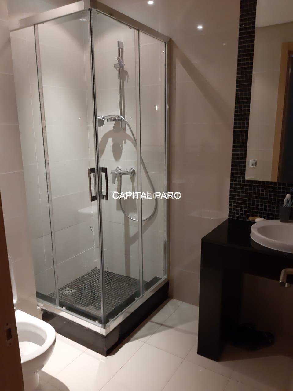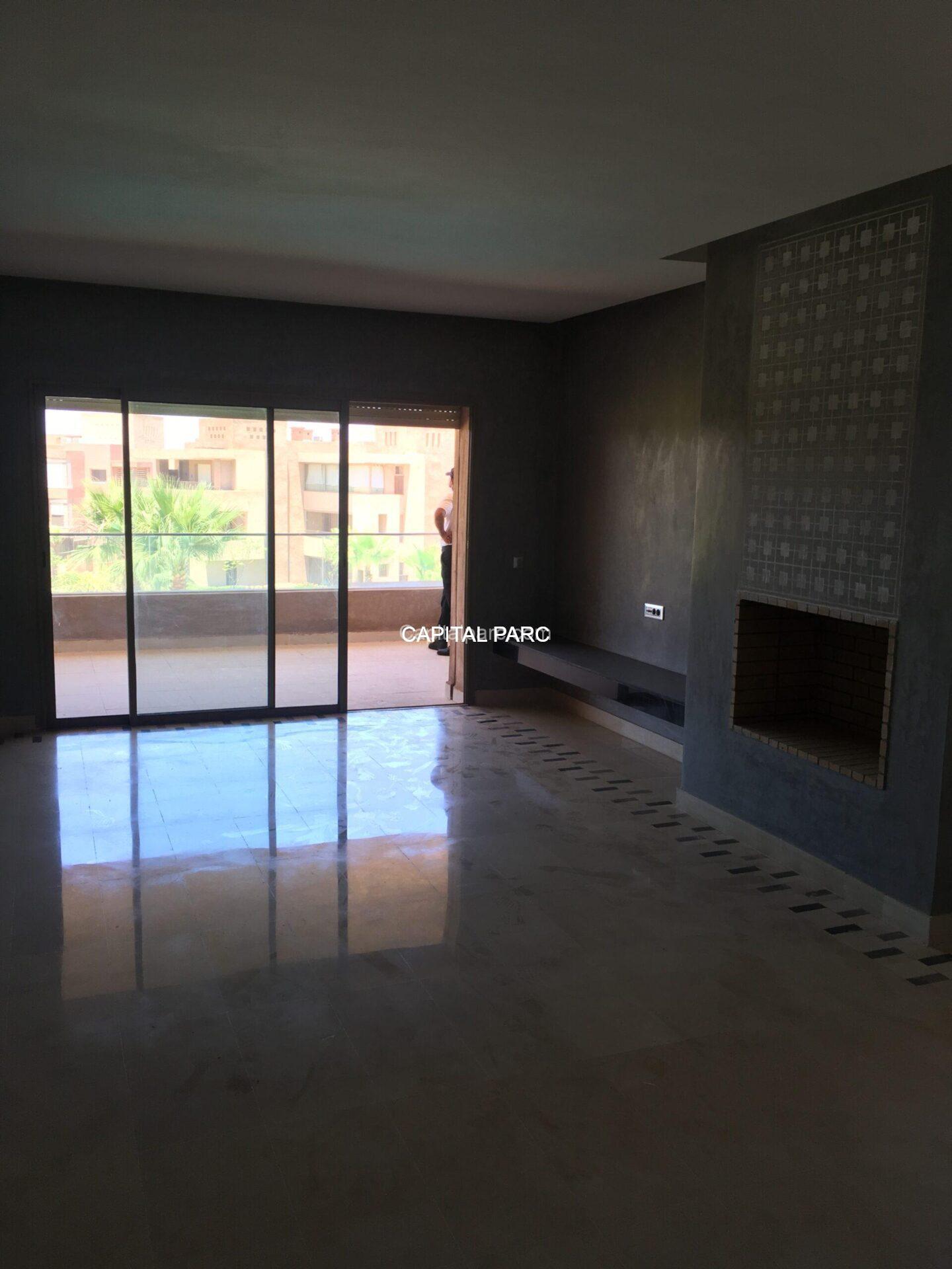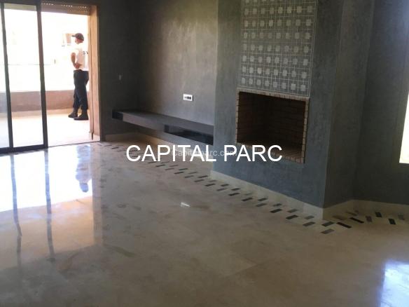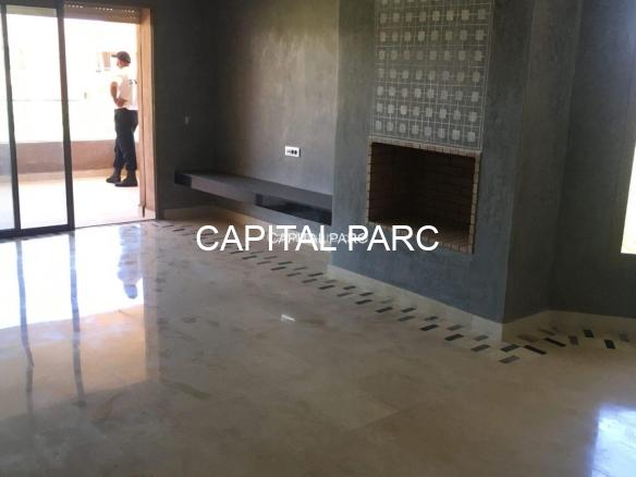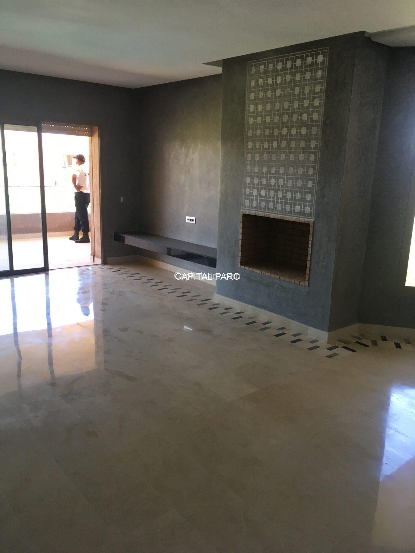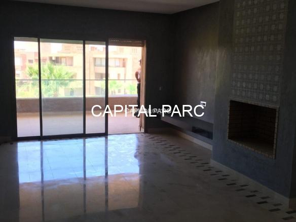 Appartement vide à louer , architecture design , superficie de 160 m , 2 grandes chambres , chacune sa salle de bain , grand salon avec cheminée fonctionnelle , grande terrasse , vue sur piscine , Résidence calme et sécurisée . Quartier Agdal