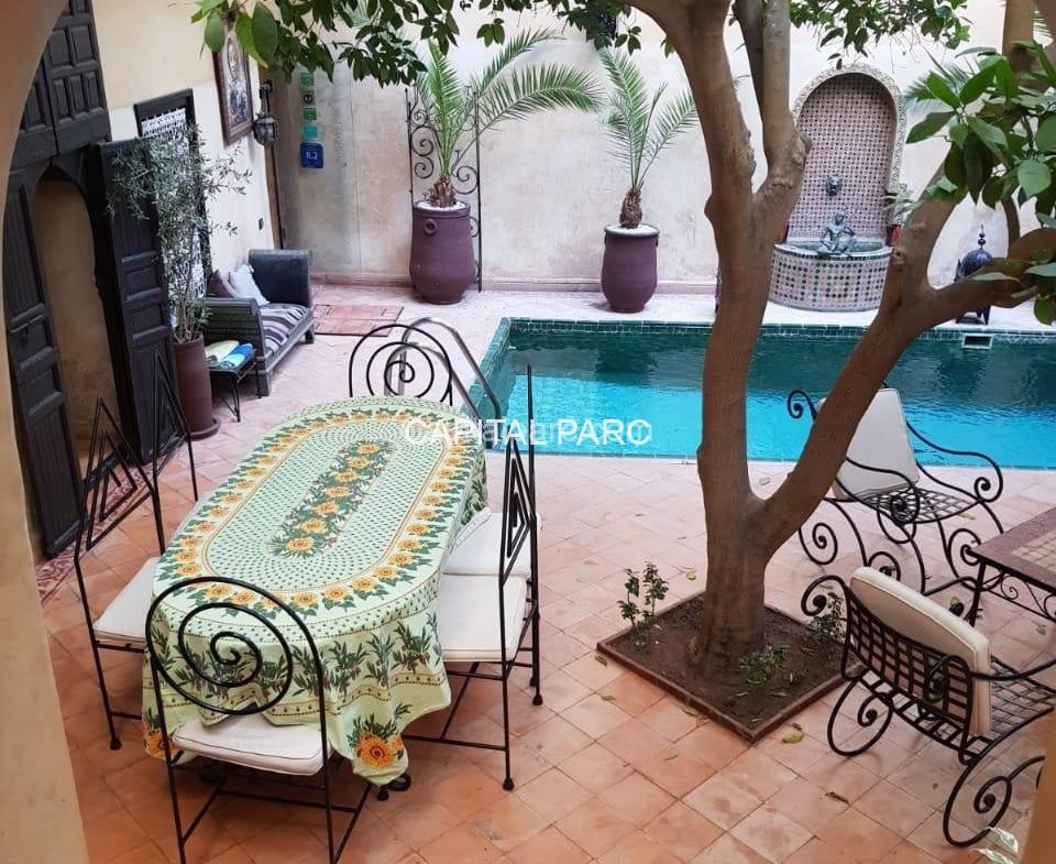 Ce beau Riad titré en pleine activité se situe au niveau de la médina de Marrakech à quelques minutes de la place , Riad de 300 m , composé de 8 chambres avec chaque chambre sa salle de bain . Le Riad est aussi doté d’un beau patio avec une piscine .