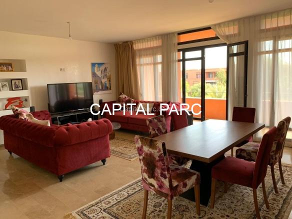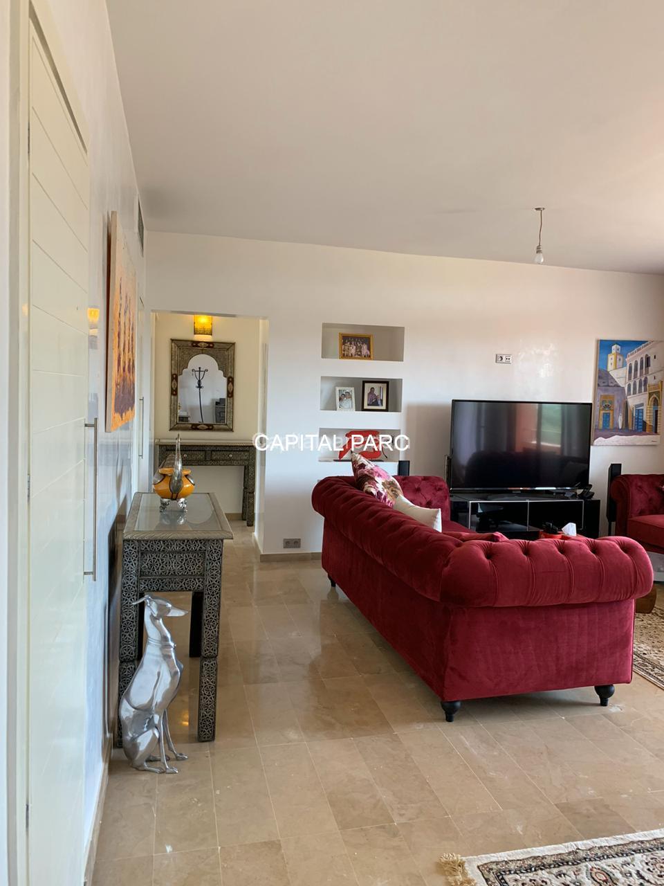 Superficie ;127 m , 2 chambres , 1 salon , un cuisine avec buanderie , 2 salles de bain, une toilette invitée , balcon , terrasse , Résidence de qualité avec beaucoup de verdures , la sécurité et la maintenance sont au top .