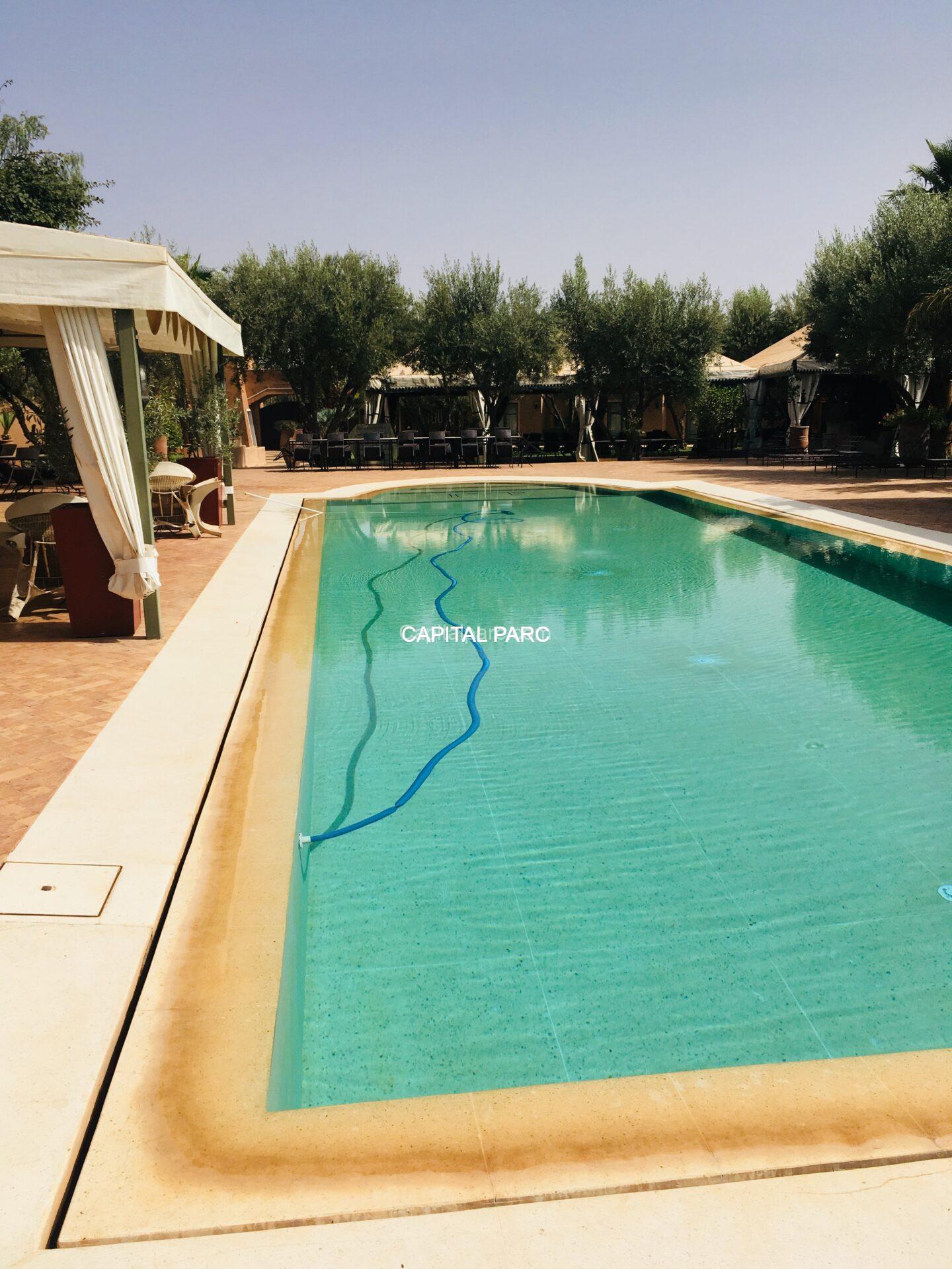 14 chambres avec chacune sa salle de bain et dressing , cuisine , mini bar , grand salon d’hiver avec cheminée , belle plage de piscine , grande piscine ( chauffée ) , grande capacité pour organiser mariages , anniversaires et fêtes .