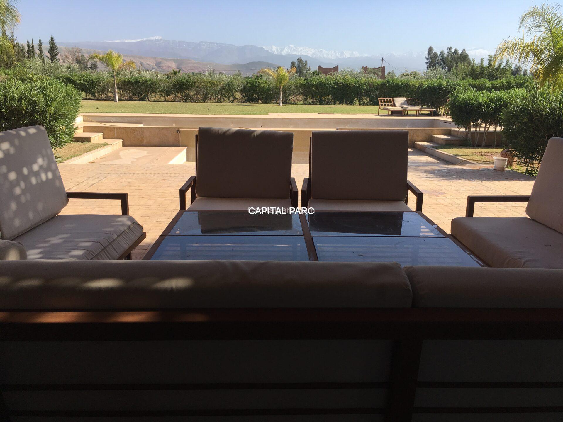 Double terrasse , place barbecue , splendide vue sur l’atlas à partir de chaque pièce de la Maisons , le domaine est doté également d’un puits , une maison du gardien et une pièce de stockage .