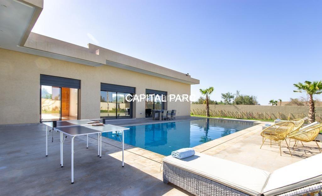 Très belle villa récemment construite et meublée avec goût , située sur la route de Ouarzazte à seulement 5 minutes de l’école Américaine .