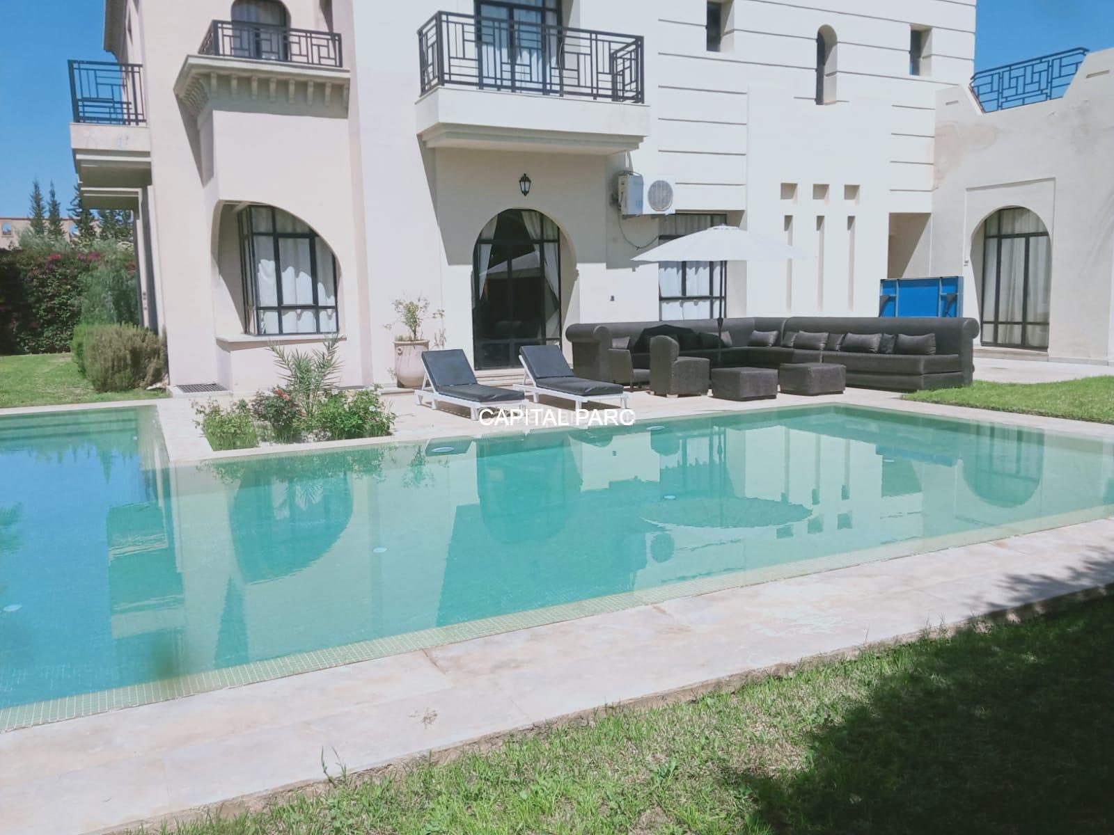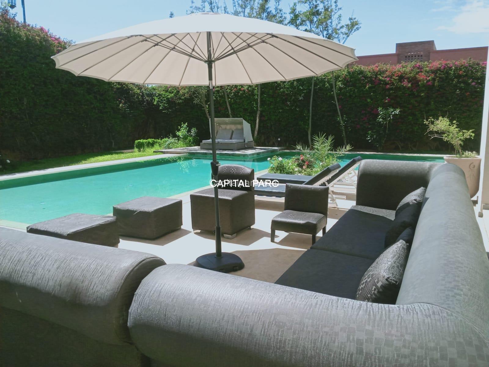 - Somptueuse villa de 1200 m de jardin , Villa isolée située à 5 minutes du Royal golf amelkis de marrakech . Villa de 6 chambres avec chacune sa salle de bain dressing et toilette , le sous-sol de la villa est équipée d’une salle de sport , une salle de cinéma et un hammam Beldi . La villa comprend également 3 cuisines , double salons , une grande piscine et un parking pour voitures
