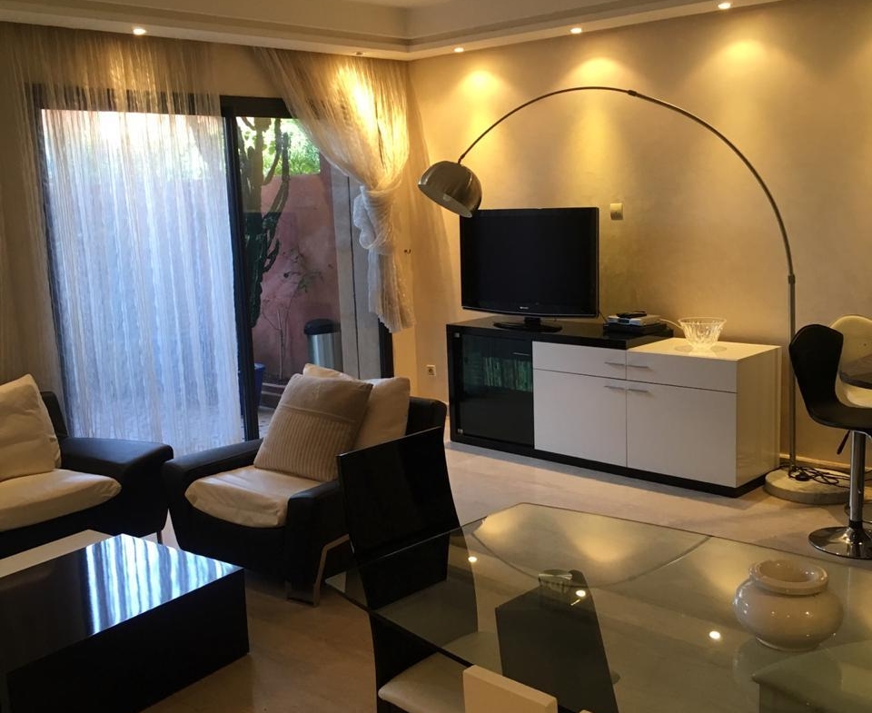 Sympathique appartement situé au rez-de-chaussée d’une belle résidence dans le quartier de l’hivernage à Marrakech . Appartement de standing joliment meublé , matériaux de qualité , Petite cuisine américaine , une belle chambre avec salle de bain et dressing , et une petite Terrsse sympathique .