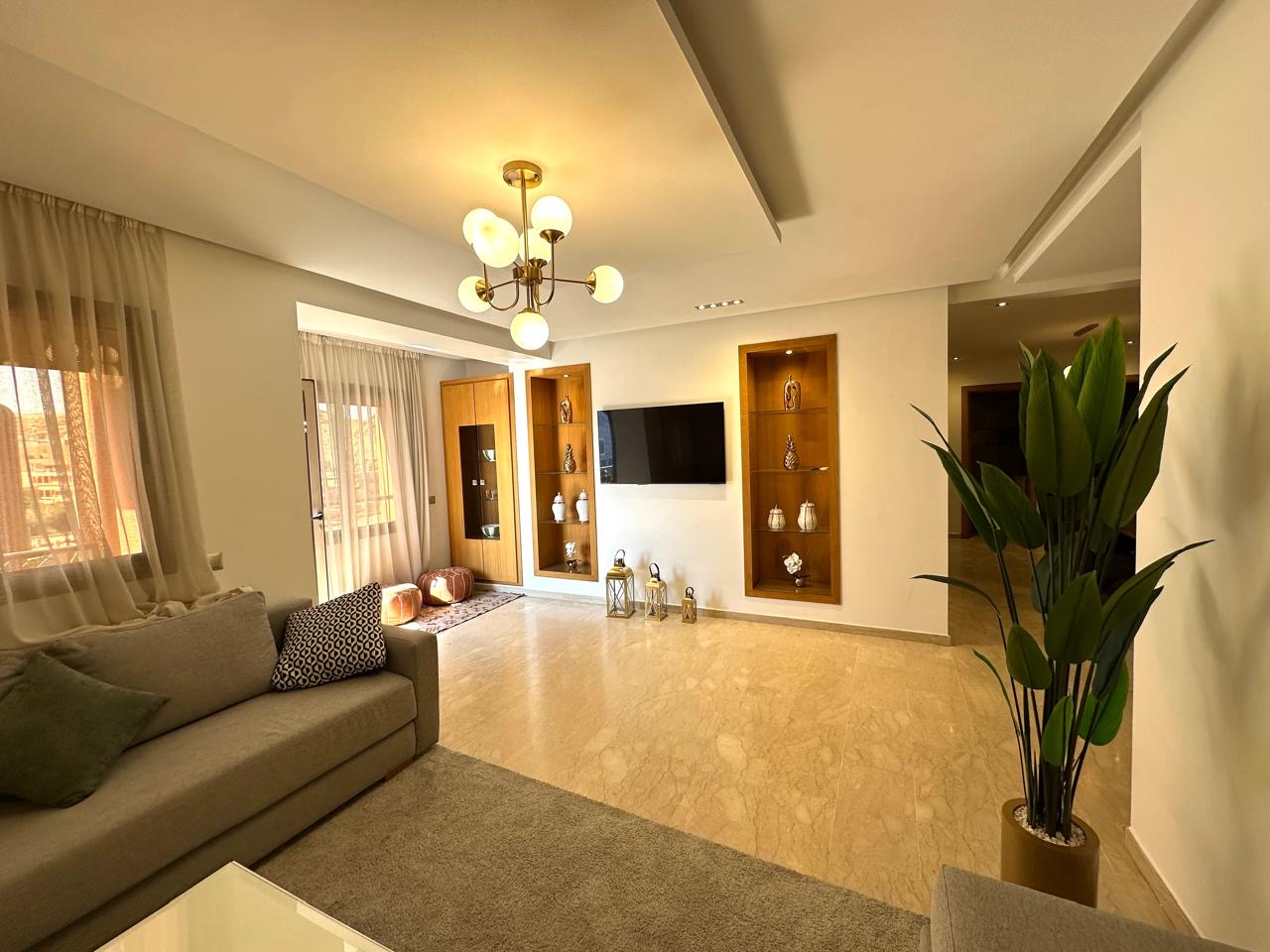 Situation : Quartier gueliz , superficie : 92 m , Nombre de chambre 02 , nombre de salle de bain 01 , un grand séjours , des petit balcons .