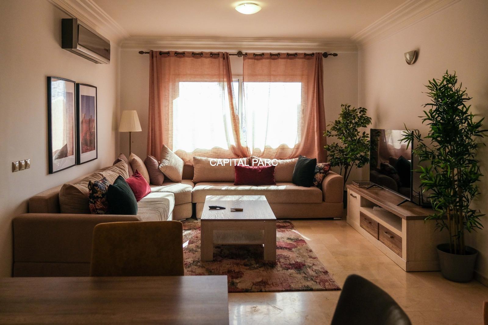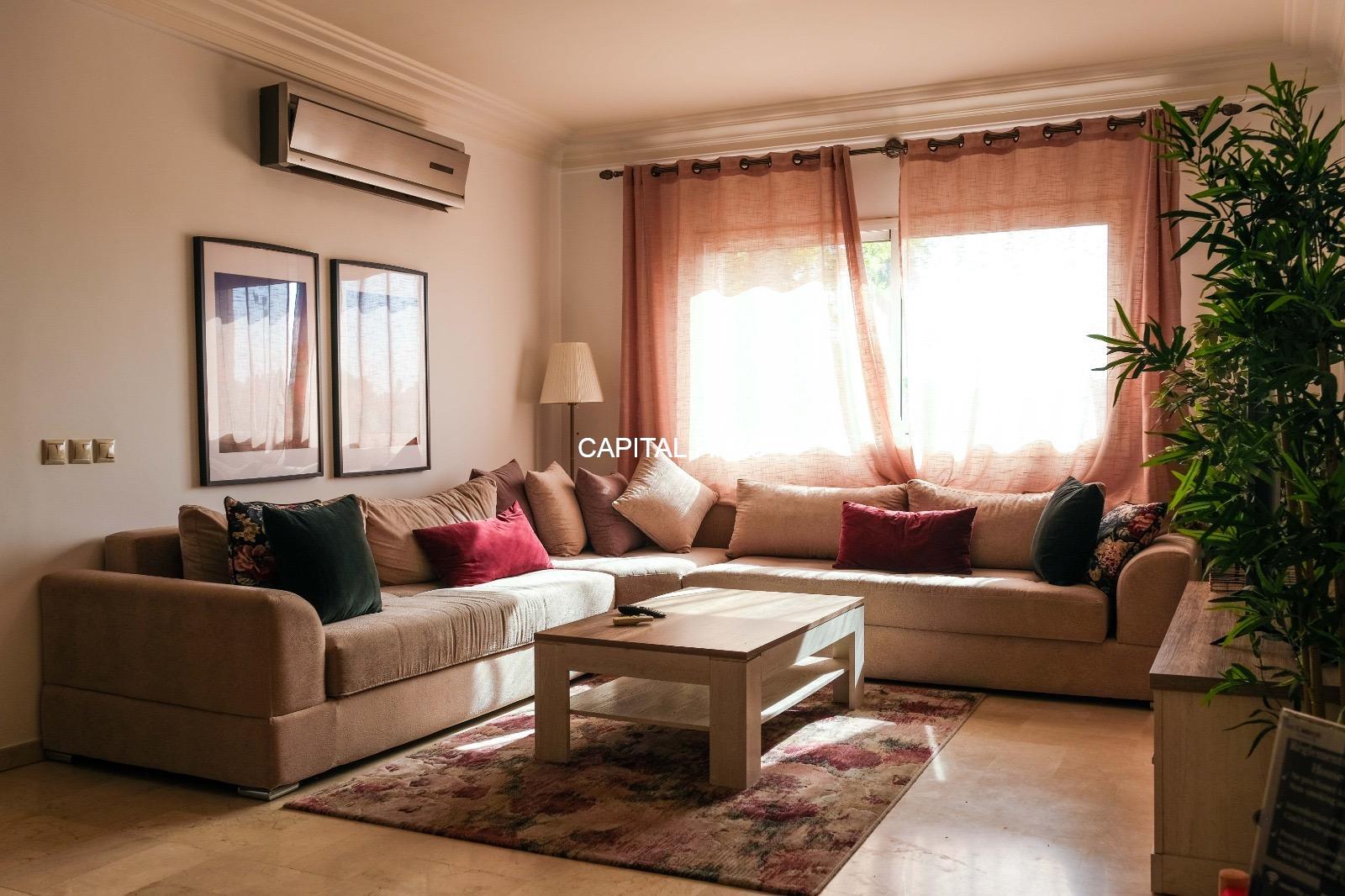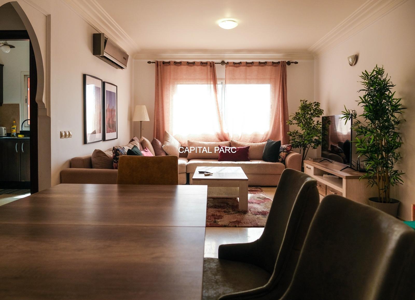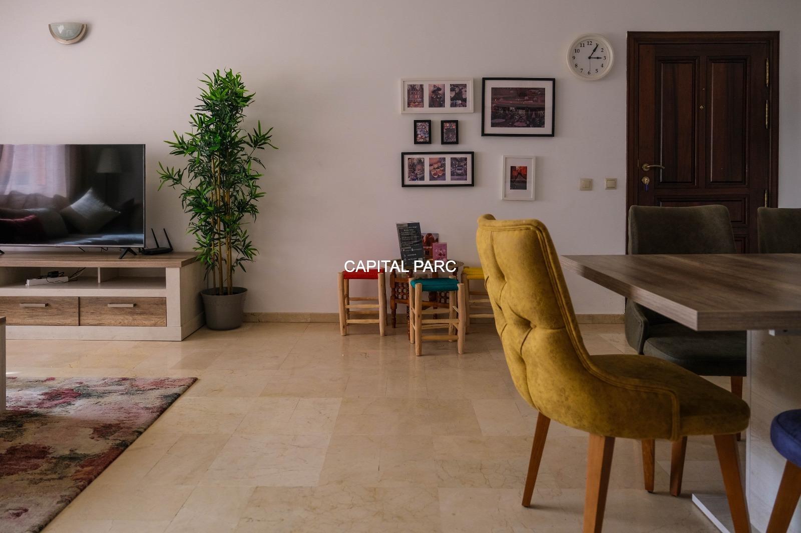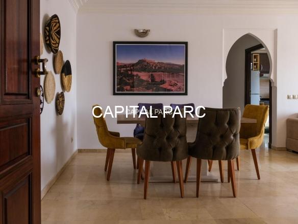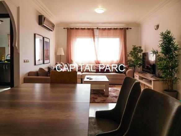 Ville : Marrakech , quartier : gueliz , étage : 3eme , superficie : 80 m . Bel appartement soigneusement meublé avec goût , situé au 3eme étage d’une belle résidence au coeur du quartier des affaires a gueliz . La résidence est située à seulement 2 minutes du café de la poste et Mcdonald. Quartier calme , voisinage de qualité, résidence avec ascenseur , surveillée H24 .
