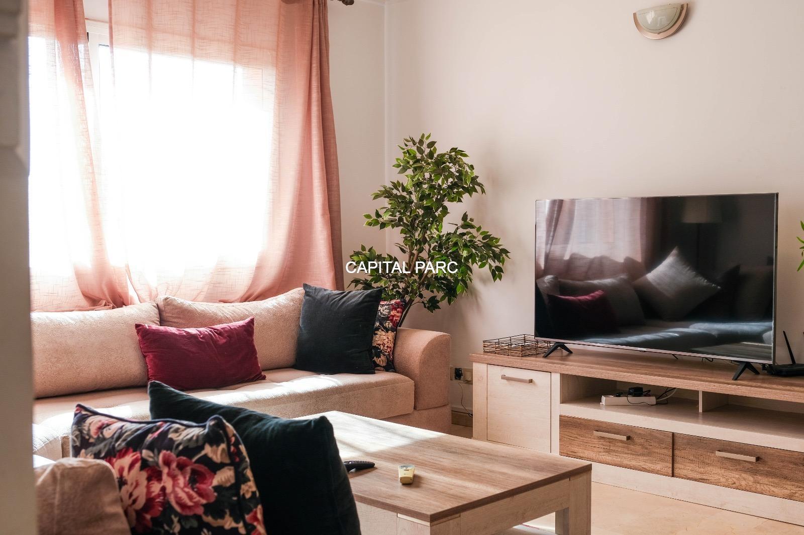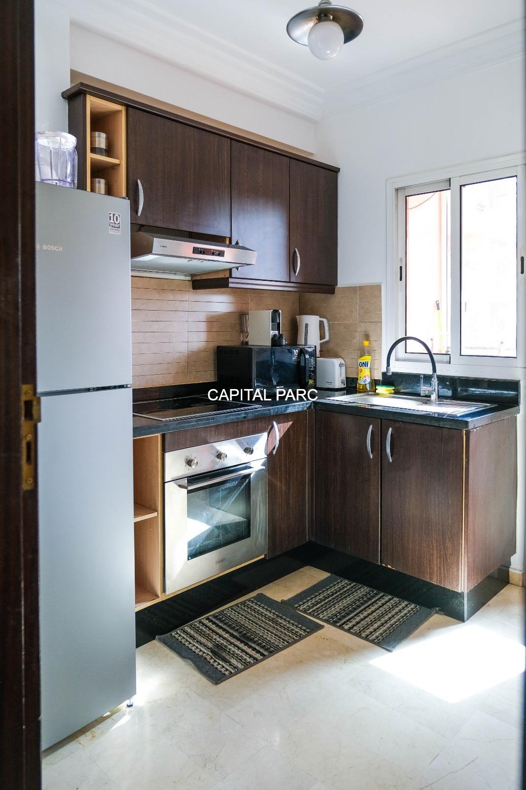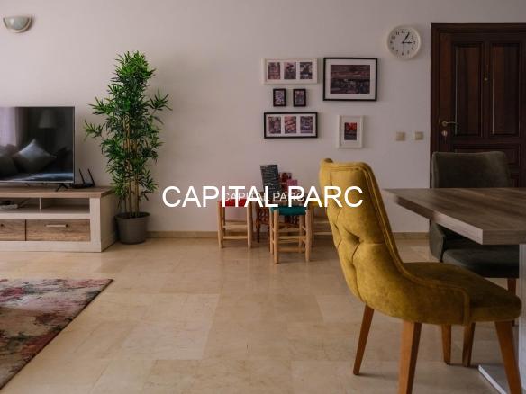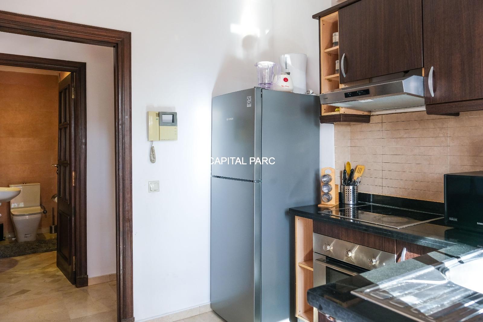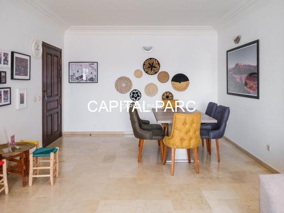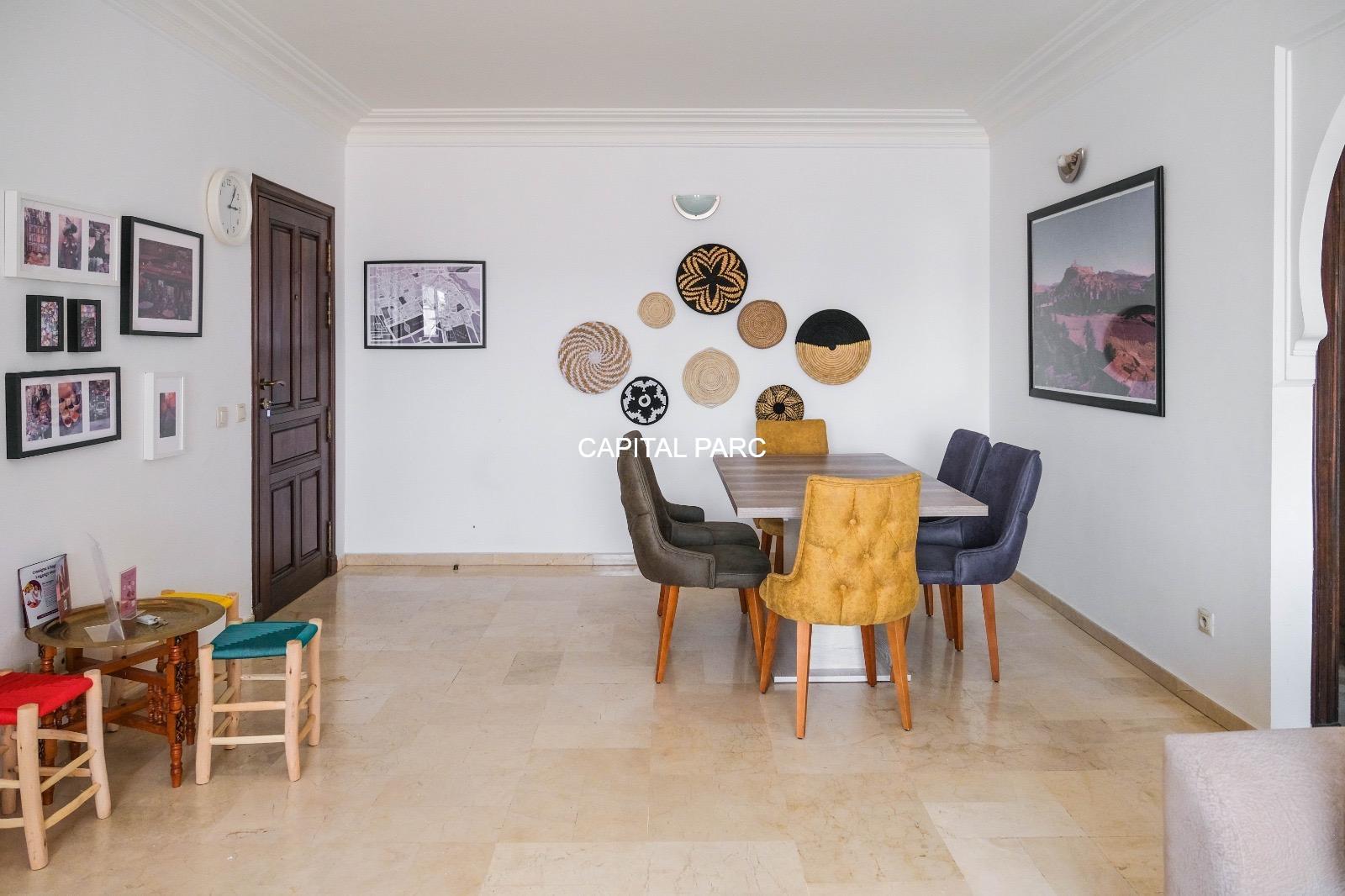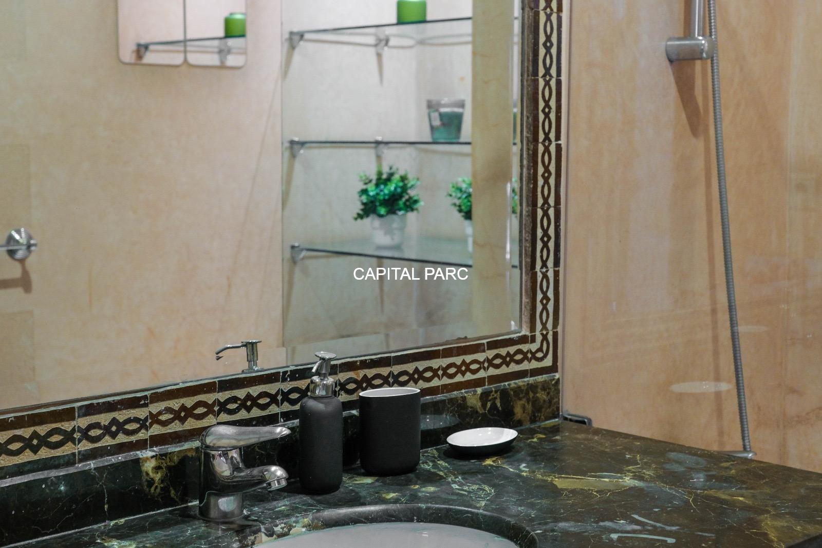 Ville : Marrakech , quartier : gueliz , étage : 3eme , superficie : 80 m . Bel appartement soigneusement meublé avec goût , situé au 3eme étage d’une belle résidence au coeur du quartier des affaires a gueliz . La résidence est située à seulement 2 minutes du café de la poste et Mcdonald. Quartier calme , voisinage de qualité, résidence avec ascenseur , surveillée H24 .