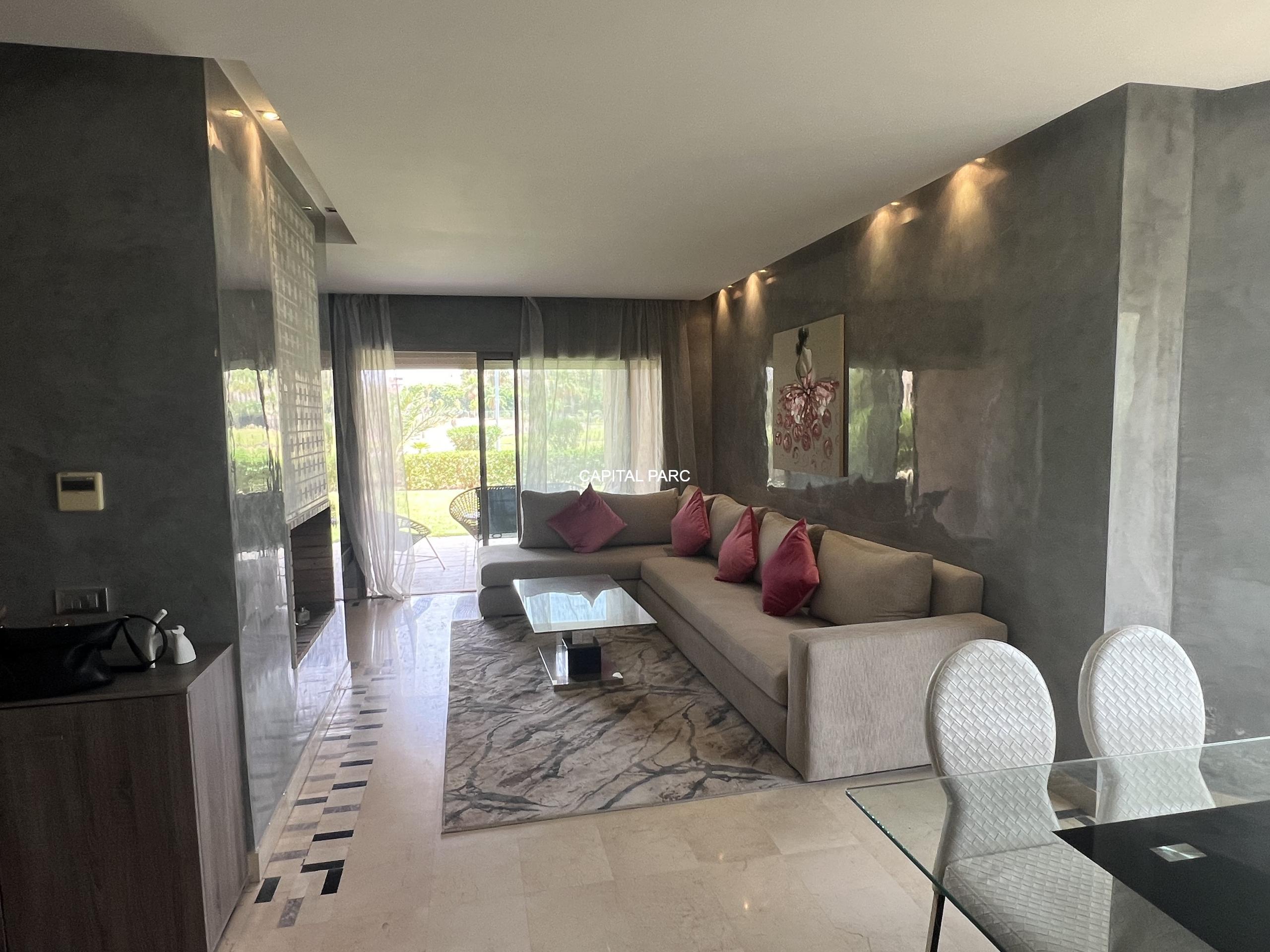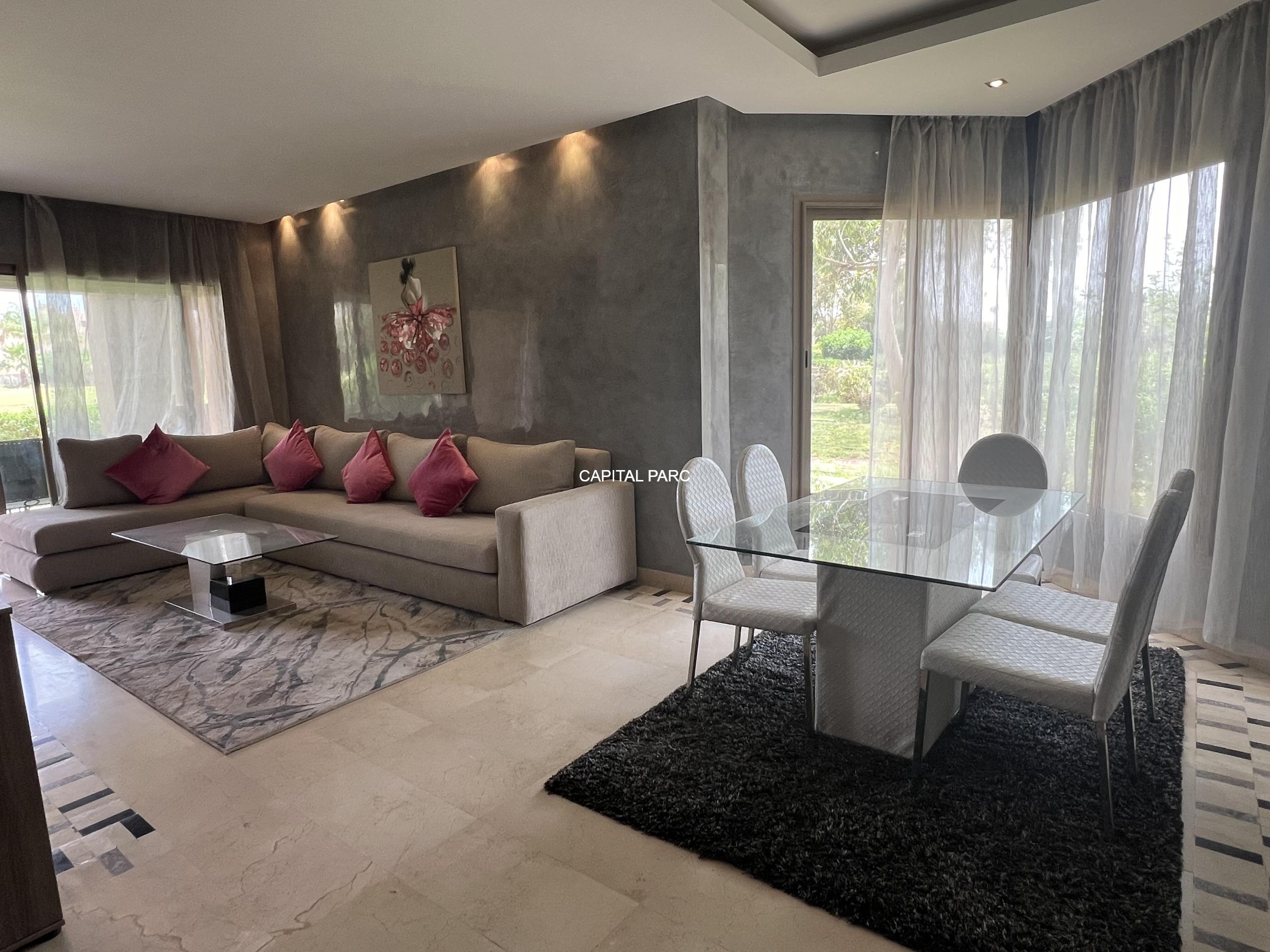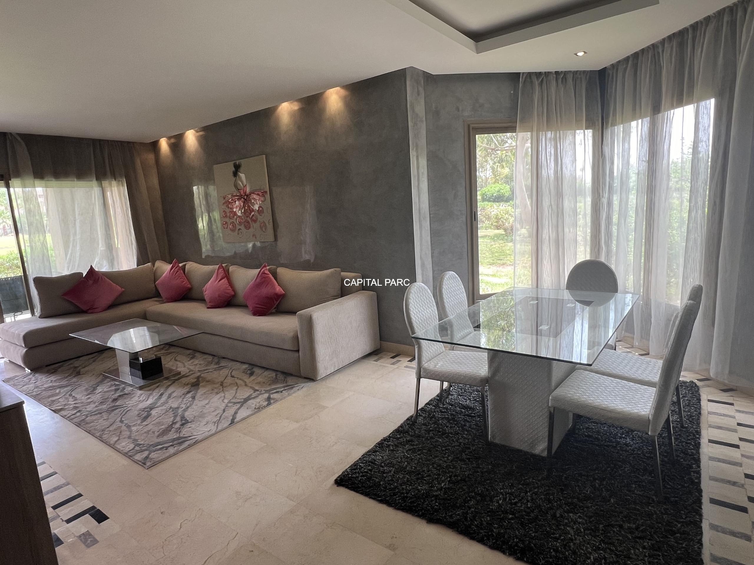 Bel appartement de 115 m , 02 grandes chambres , 02 salles de bain , toilettes invités, grande cuisine , double salons , grande terrasse , résidence avec golf et piscine.