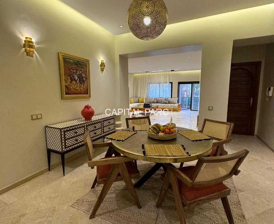 Cet grand appartement est exceptionnellement parfait pour une famille nombreuse , il est situé dans une belle résidence à quelques minutes du lycée Victor hugo de Marrakech . 180 m , 03 chambres , 02 salles de bain , la chambre parentale est avec sa salle de bain , dressing et toilette . Le salon exposé à l’ouest est ensoleillé toute la journée, une grande terrasse de 30 m avec une belle vue est le point fort de cet appartement.