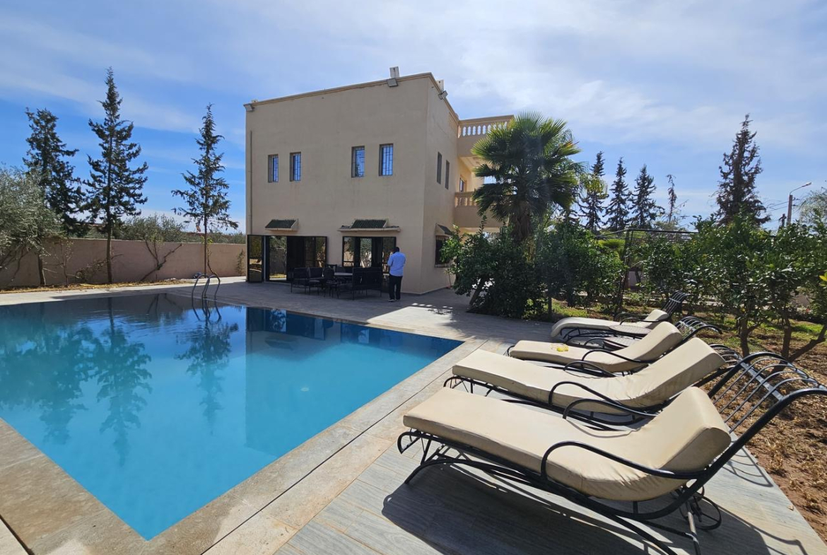 Jolie petite maison de campagne en location longue durée, évadez vous des bruits de marrakech et de la pollution pour vous offrir cette tranquillité inestimable, petite maison de 1400 m de jardin , 300 m habitable , 03 chambres , 02 salles de bain , double salon , grande cuisine , piscine , des arbres fruitiers dans tout dans un paysage verdoyant, tranquille avec une belle vue à 360 degrés sur les montagnes de l’atlas . Maison fonctionnelle , idéal pour un couple sans enfants ou pour un couple de retraités.