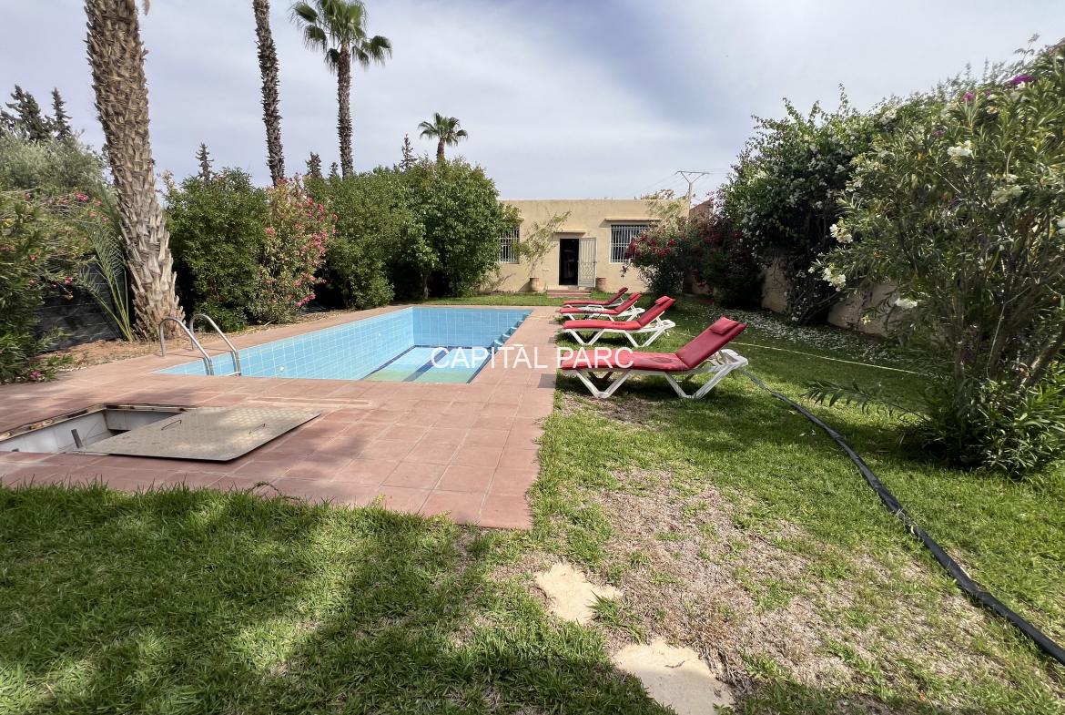 Cette petite villa pavillonnaire se trouve dans à seulement 5 minutes de l’école Américaine sur la route de Ouarzazte à Marrakech , belle villa soigneusement meublée avec goût. Environ 1200 m de terrain , 250 m habitable , 3 chambres dont une parentale avec sa salle de bain et un jacuzzi. Un grand salon européen avec cheminée, une cuisine entièrement équipée, une terrasse extérieur bien aménagée, une piscine et une pergola en face de la piscine , le toit de la villa est accessible par un escalier extérieur.