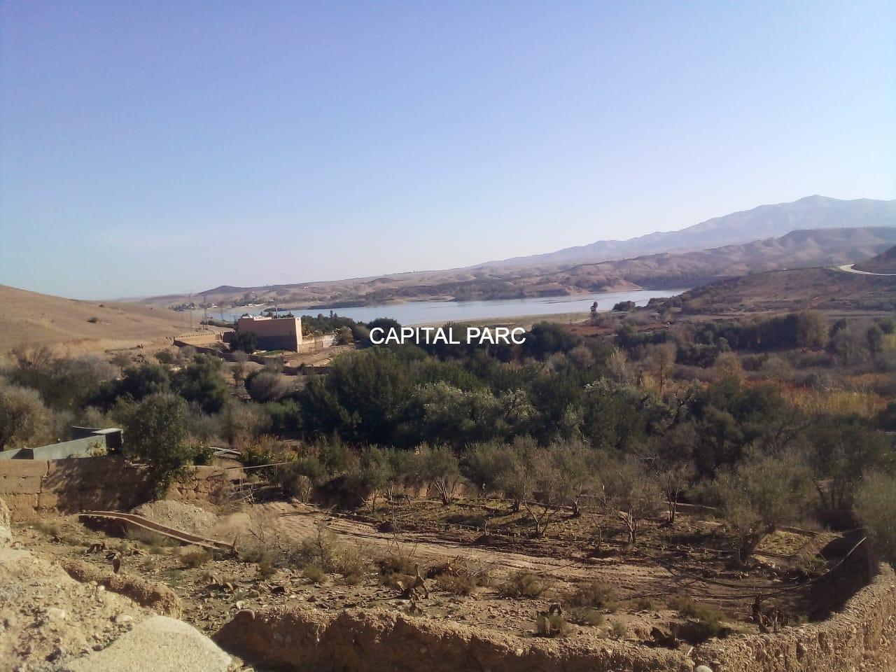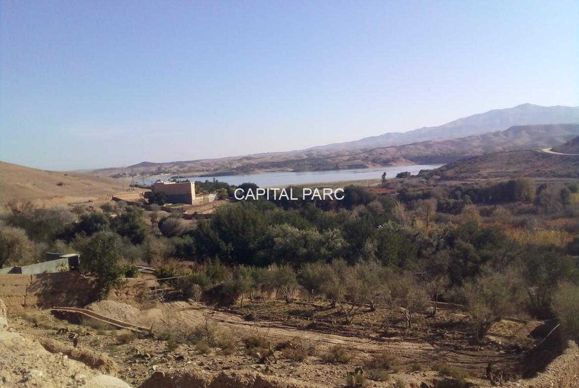 Terrain de 5500 m , à 40 km de marrakech , en direction du sud de marrakech vers le barrage Lalla takarkous. Terrain ideal pour réaliser un projet touristique, restaurant , maison d’hôtes, auberge … , terrain situé au bord de la route , pas de piste , bel emplacement, vue de loin sur le lac .