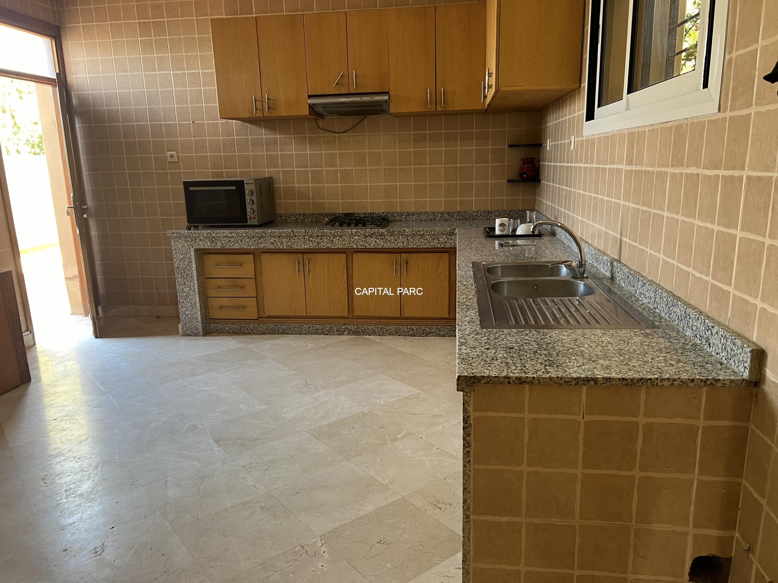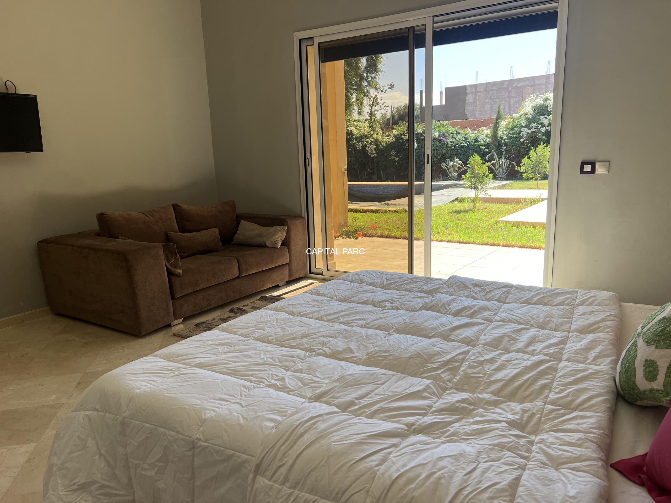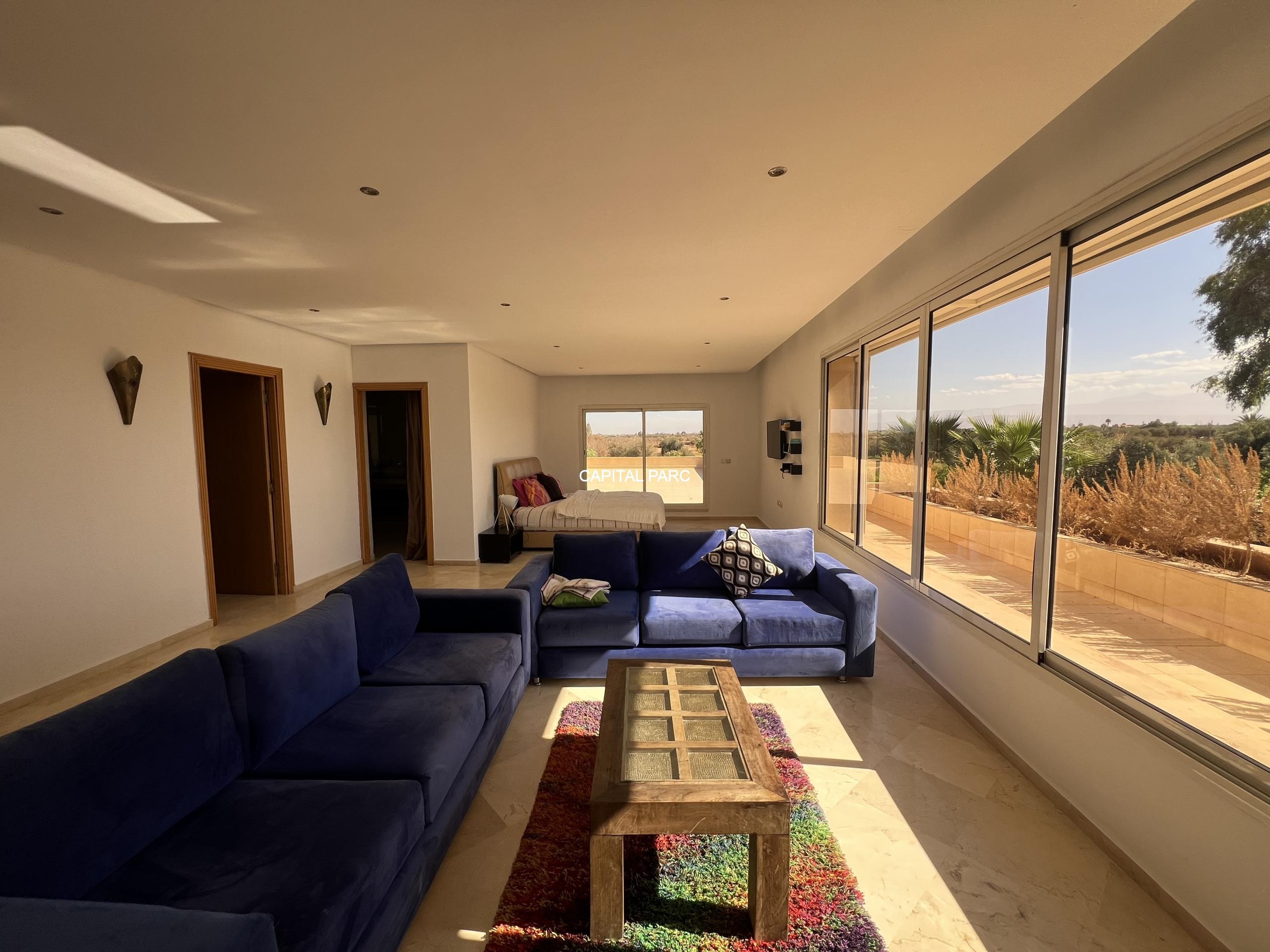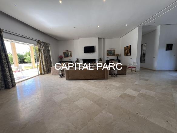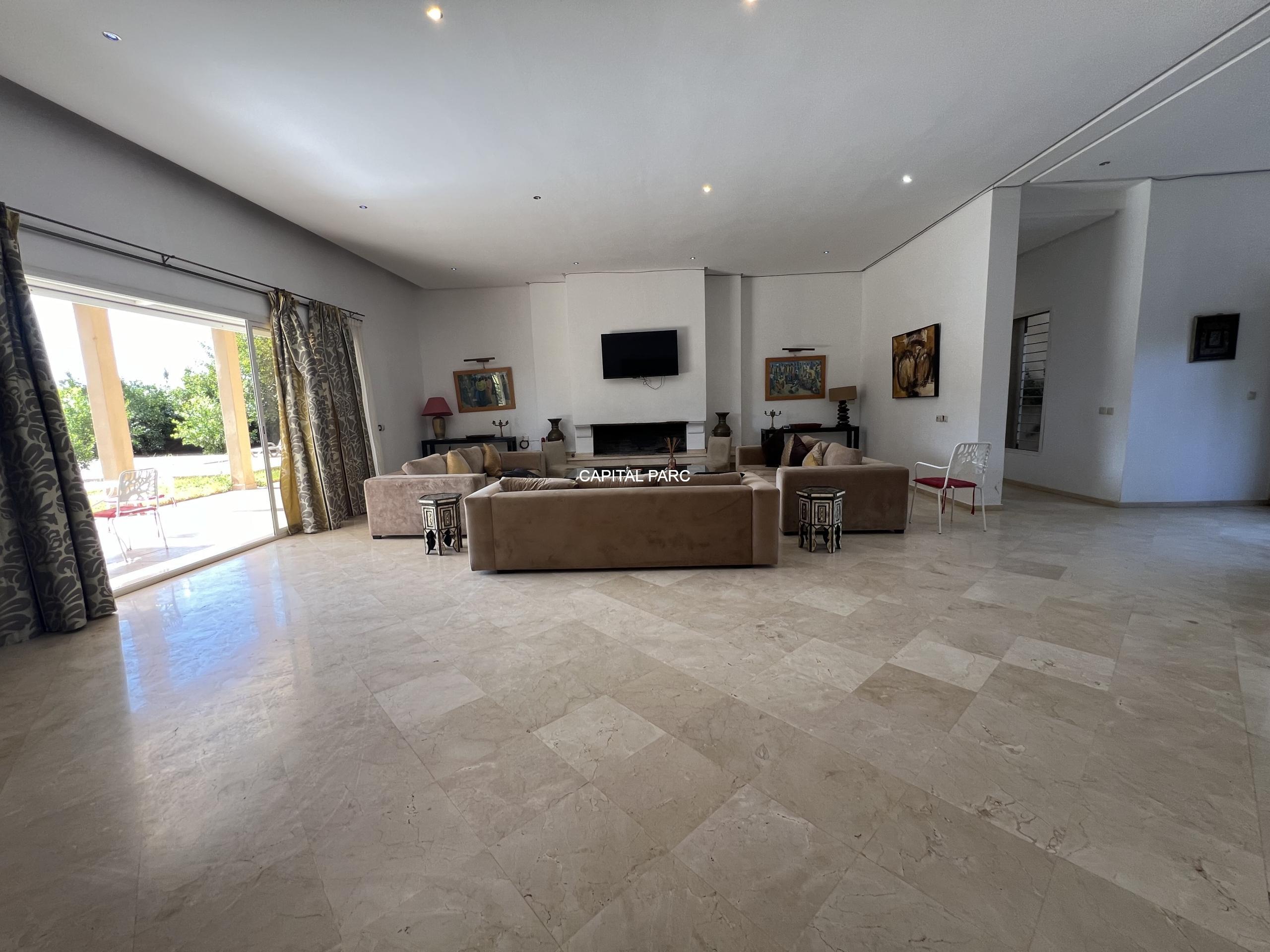 Nous vous proposons à la location longue durée, cette belle villa moderne située à environ 20 km de marrakech entre route de fes et route de Ouarzazte, 1900 m de jardin bien arboré , olivers , figuiers , orangers constituent la beauté de son jardin , 400 m habitables.