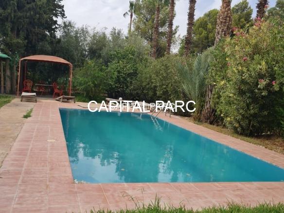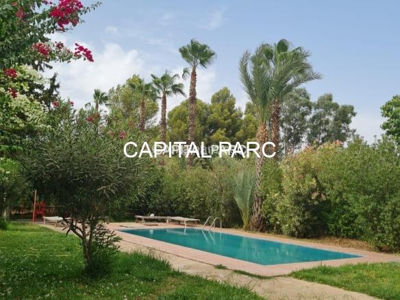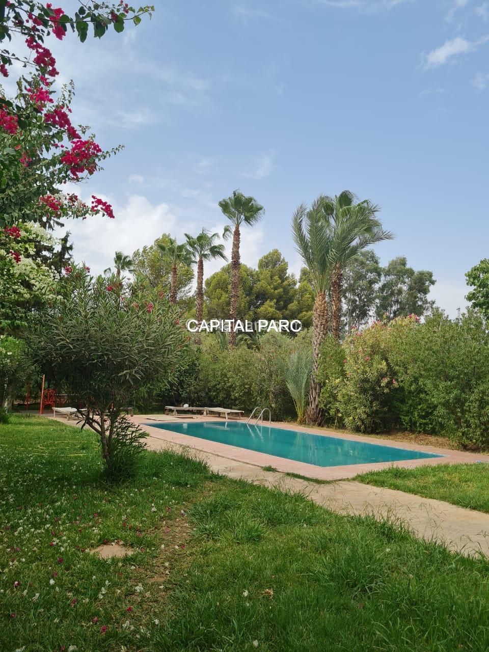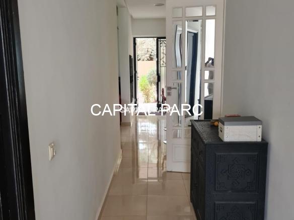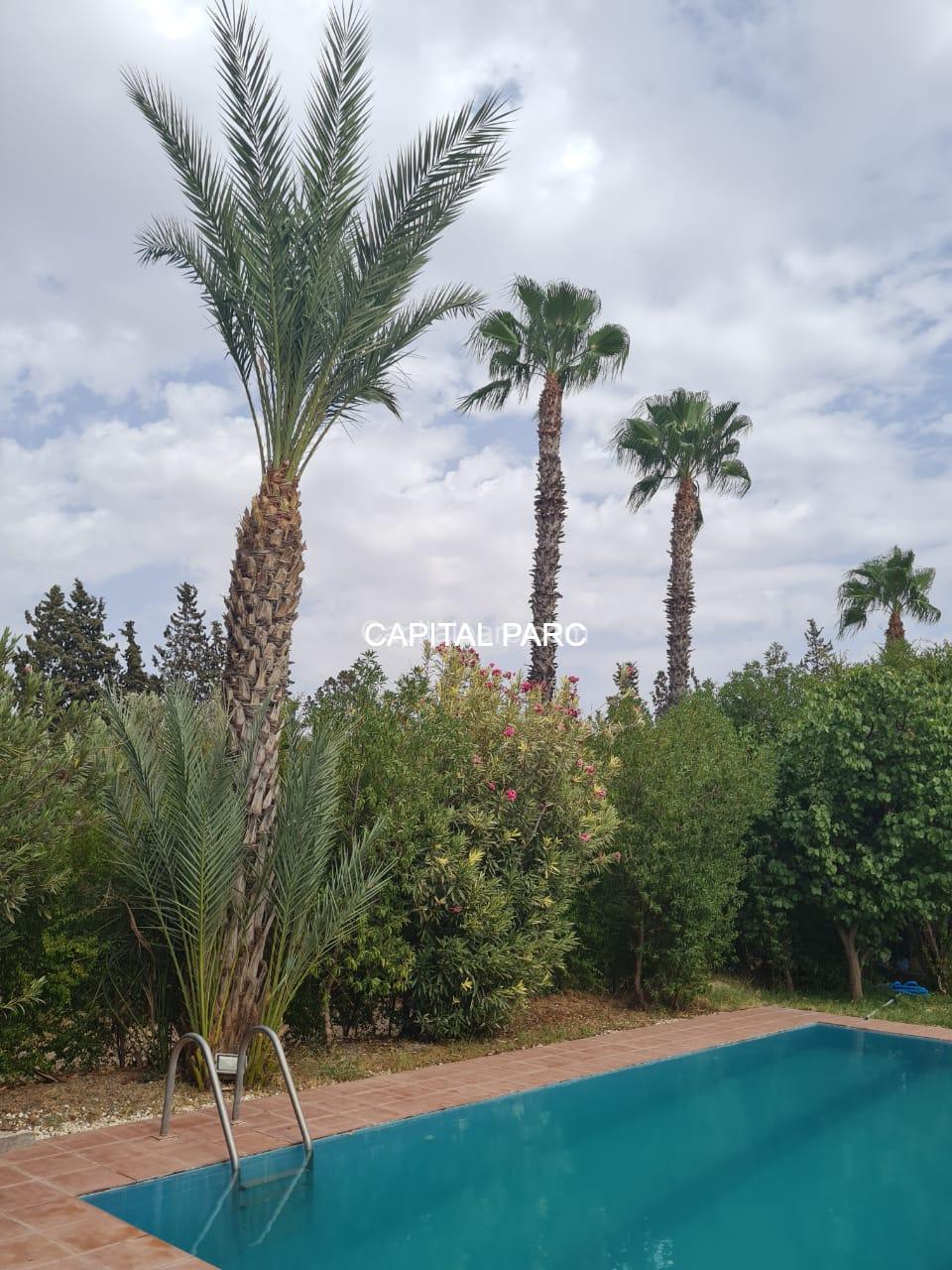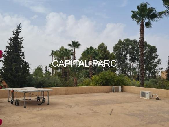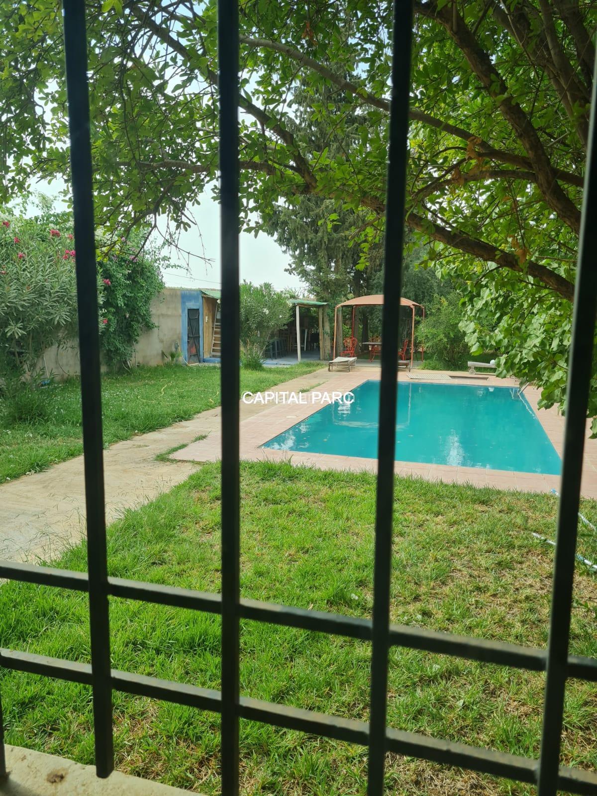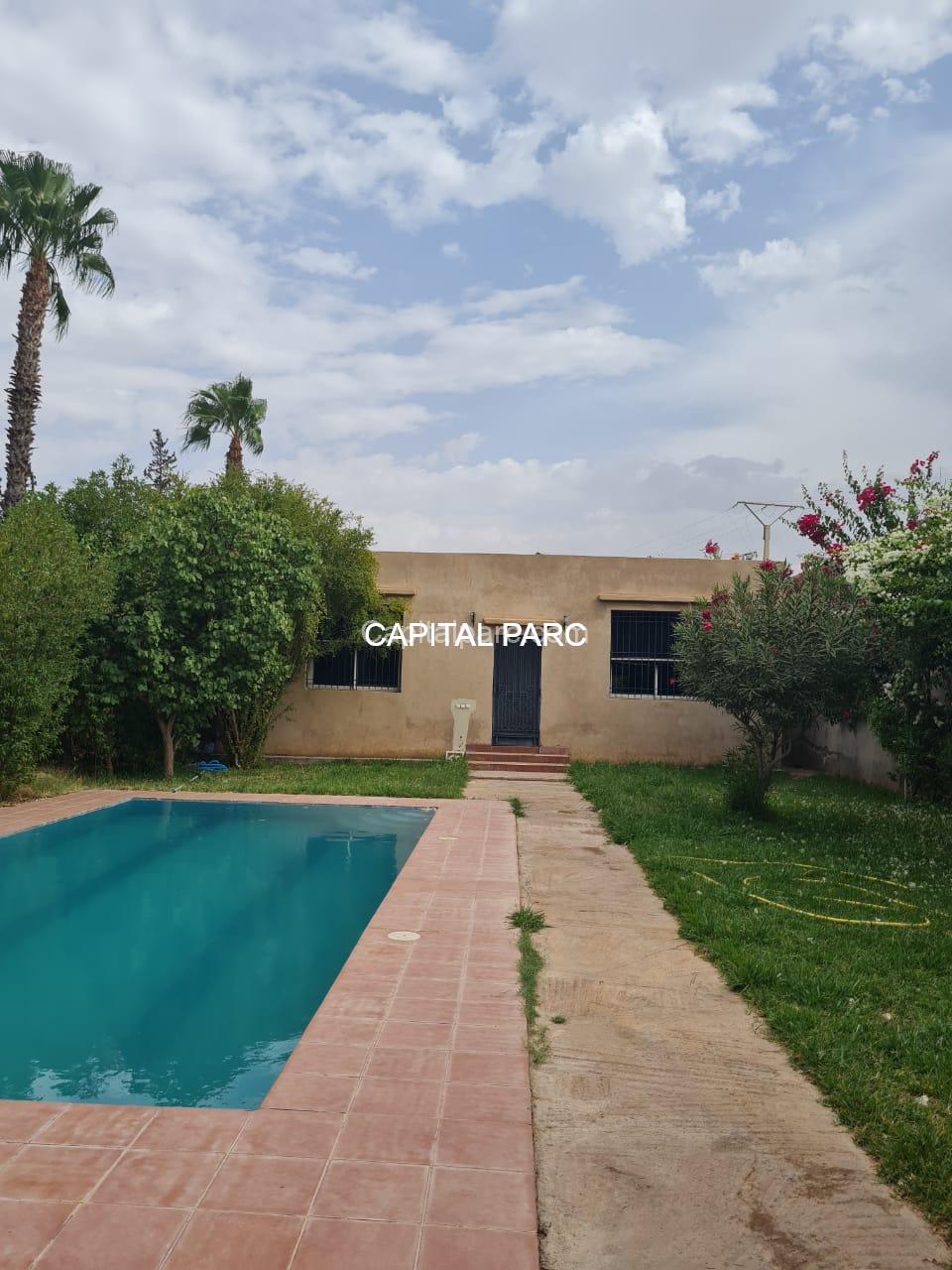 cette petite villa est située sur la route de ouarzazat à seulement 5 minutes de l’école Américaine , petite villa de 1400 m de terrain , composée d’un grand salon avec cheminée , une cuisine américaine avec une table à manger , une terrasse extérieure, 3 chambres , dont une parentale avec salle de bain et dressing , une autre salle de bain , et une terrasse sur le toit . la est dotée d’une piscine et un mini bar