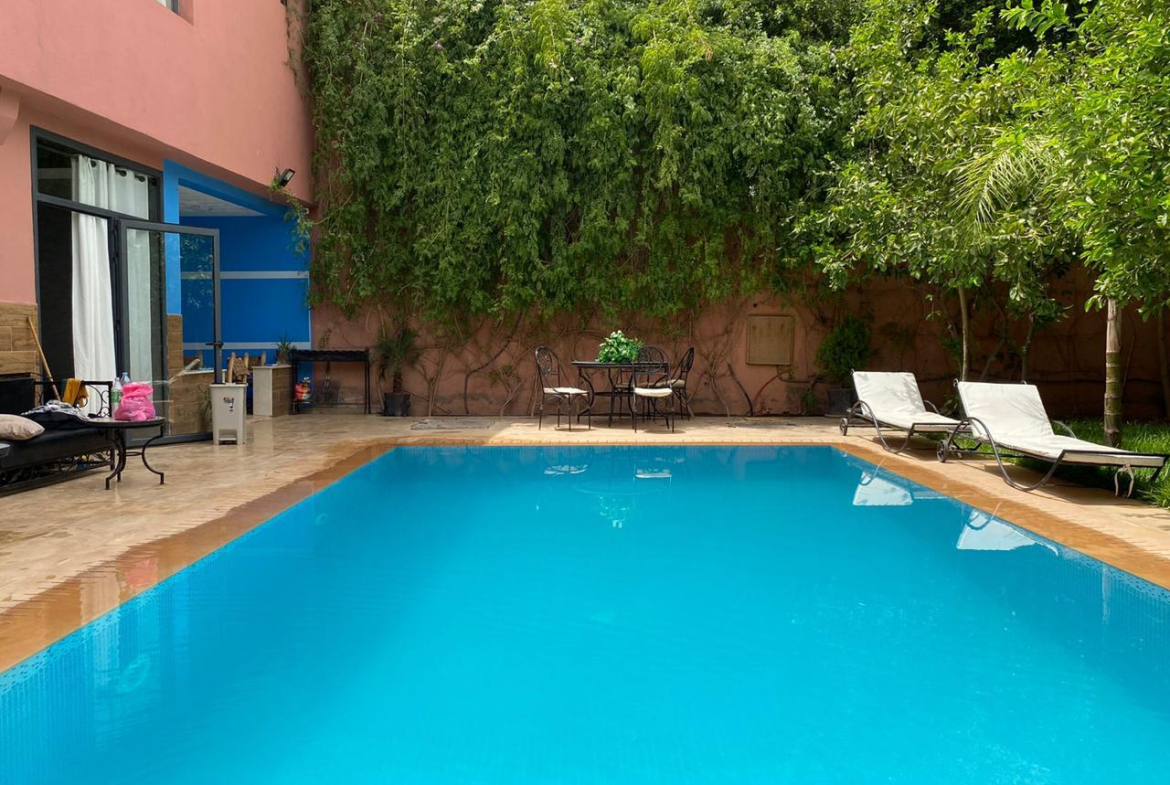 Voici une belle maison traditionnelle et familiale, 500 m de terrain , environ 300 m habitable , 5 chambres , 5 salle de bain , cuisine , salon , terrasse , piscine et jardin . Maison destinée à la location longue durée, a 5 minutes du supermarché atakadao et à 10 minutes du centre- ville de Marrakech, maison idéale pour une nombreuses famille .