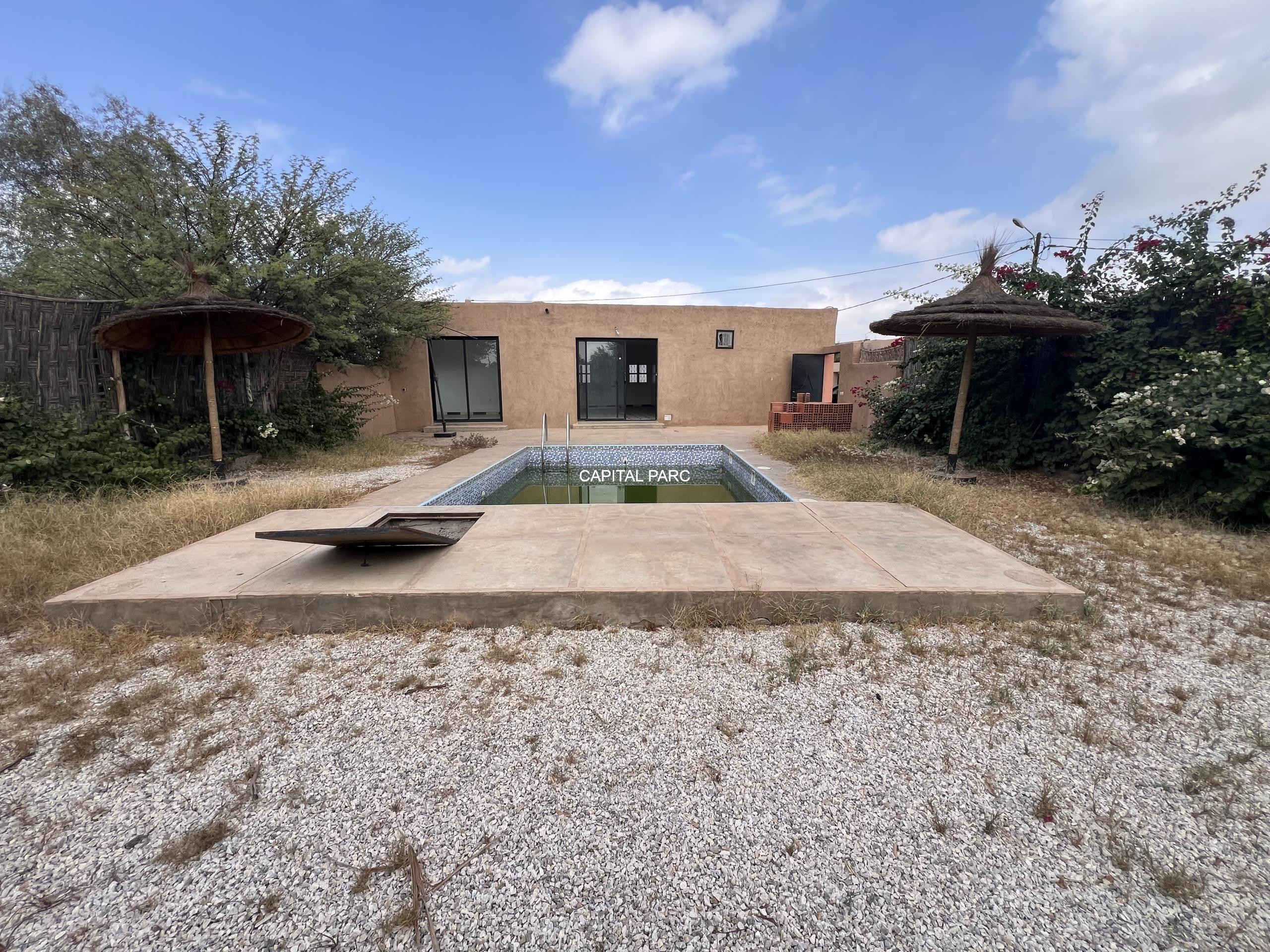 Location longue durée, petite maison de campagne, située entre la route de l’ourika et la route de Ouarzazte. D’une superficie environ de 400 m , elle comprend 03 chambres , 03 salles de bain , un salon rectangulaire, une cuisine , une piscine avec un local technique et un petit jardin . Des travaux de mise à niveau sont nécessaires.