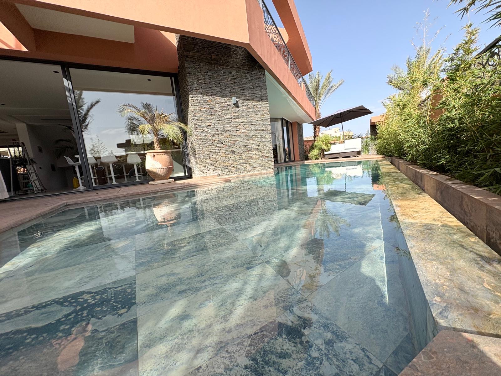 Villa neuve de luxe de 480 m² proche golf amelkis composée de 5 élégantes suites ,cuisine équipée sur piscine ,réception