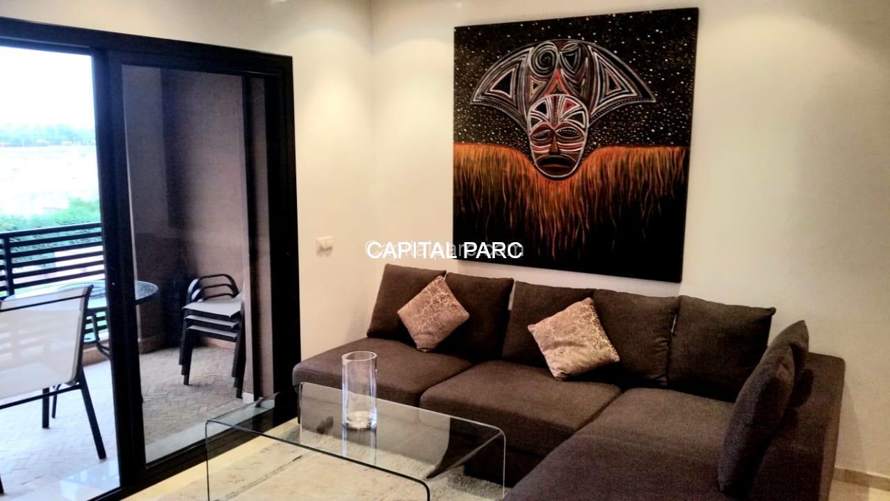 Petit appartement meublé à louer en longue durée située à l’hivernage à cinq minutes du palais des congrès . Appartement de 53 m , comprenant : une chambre , un salon , une cuisine équipée , une petite terrasse et une salle de bain . Résidence avec piscine , ascenseur , proche de petits commerces.