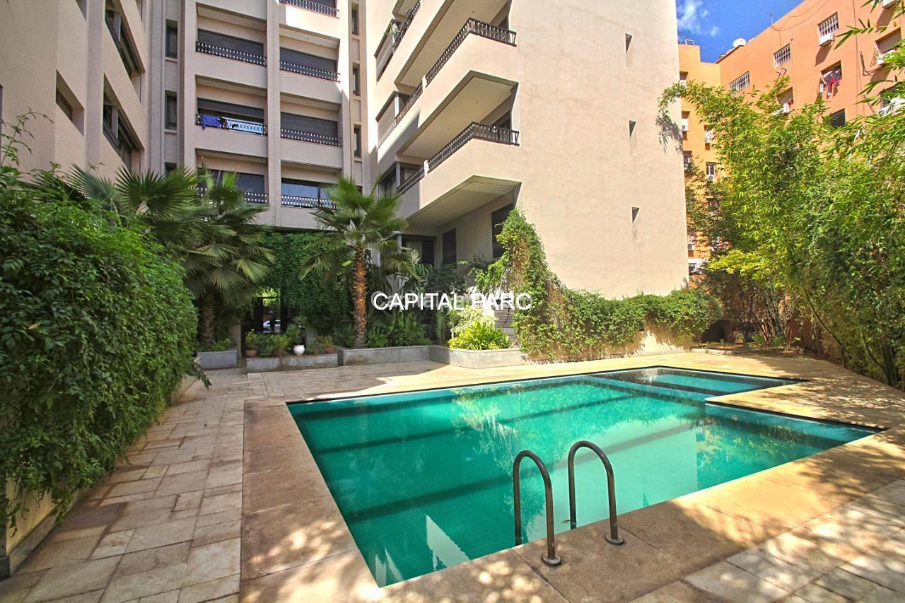 Nous prions à la vent ce superbe appartement situé en plein centre-ville de Marrakech ( Gieliz ) . Appartement de 148 m , 2 chambres , 2 salles de bain , place parking + box , résidence avec piscine , commerces et commodités à proximité.