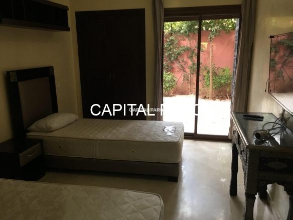 Nous vous proposons à la location longue durée , ce bel appartement rez-de-chaussée avec un beau jardin de 320m autour de l’appartement . Ce joli bijoux se compose de deux chambres , deux salles de bain , une cuisine équipée , un grand salon avec cheminée, une toilette invitée et une belle terrasse couverte .resudence avec beaucoup de verdures , bien entretenue et calme .