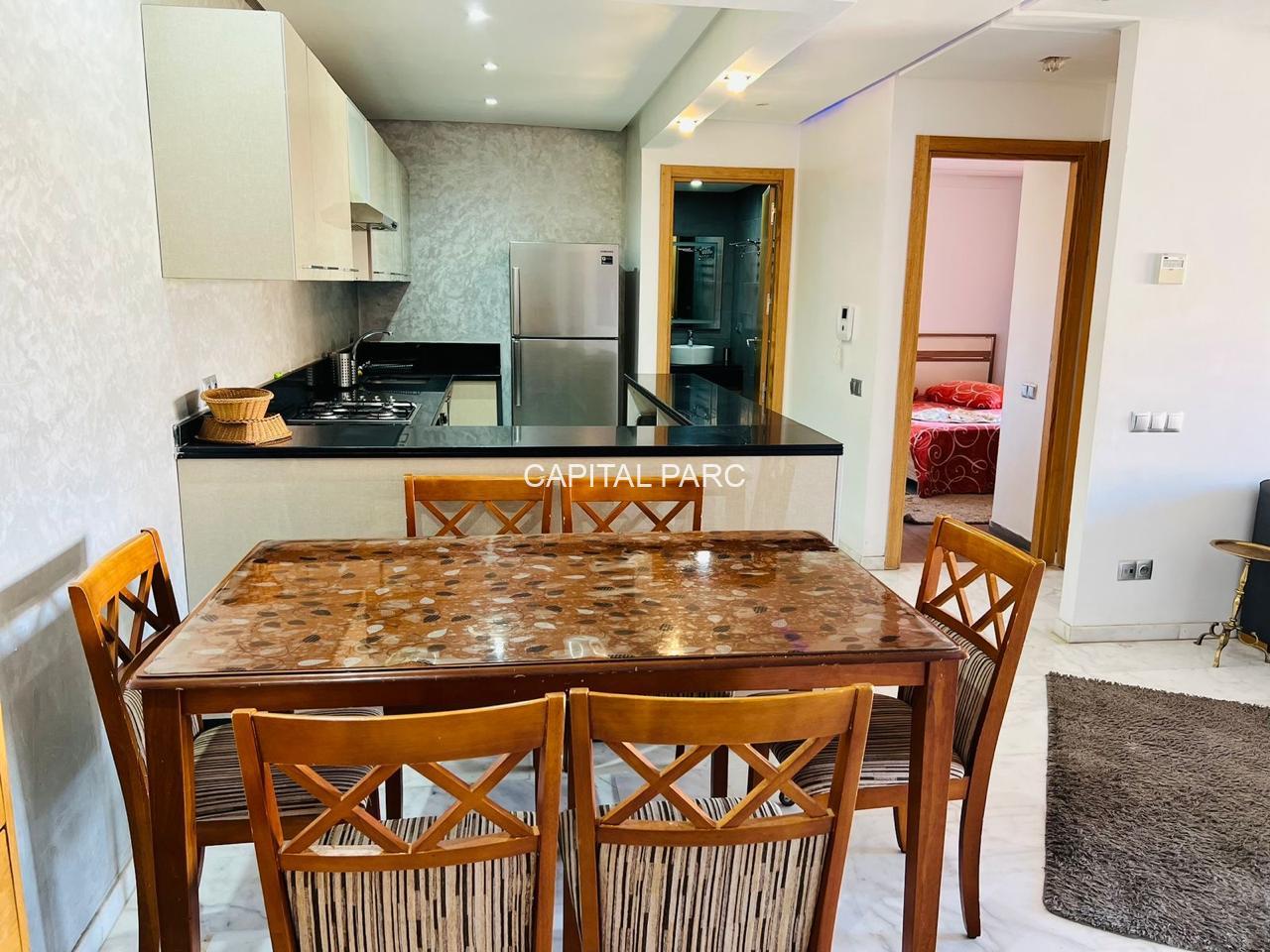 Chambres , un salon , une salle de bain , une cuisine ouverte, et un petit balcon. Résidence avec ascenseur, place parking et une surveillance en permanence. L’appartement est vendu meublé. Disponible à partir du premier janvier 2016 .