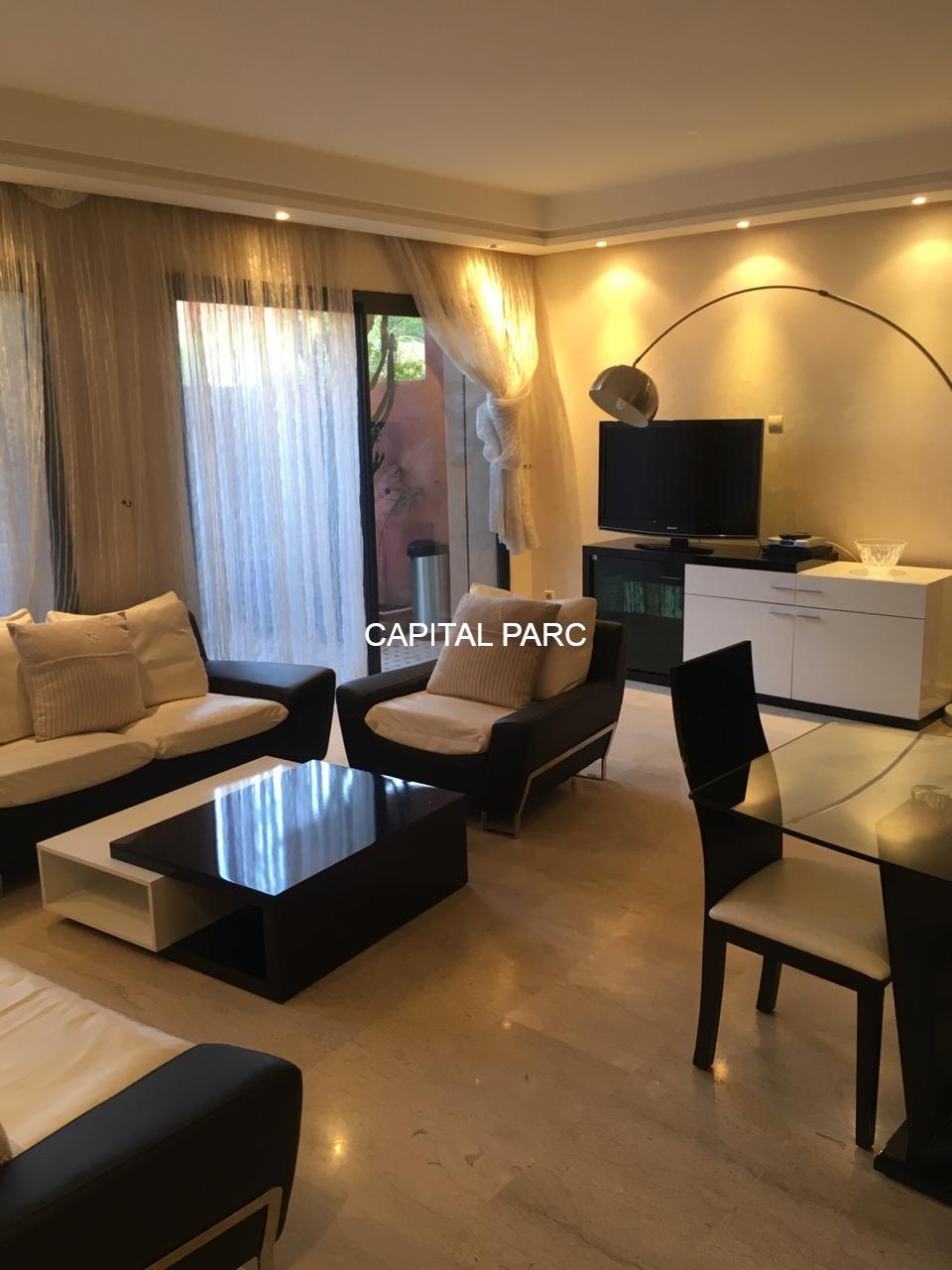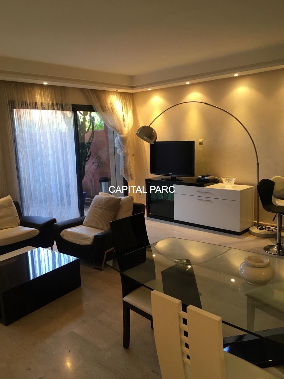 Profitez de ce bel appartement situé dans le prestigieux quartier de l’hivernage à Marrakech , appartement de 103 m , composé d’un grand salon , une grande chambre avec sa salle de bain , une cuisine ouverte sur le salon , une terrasse et une toilette invité .