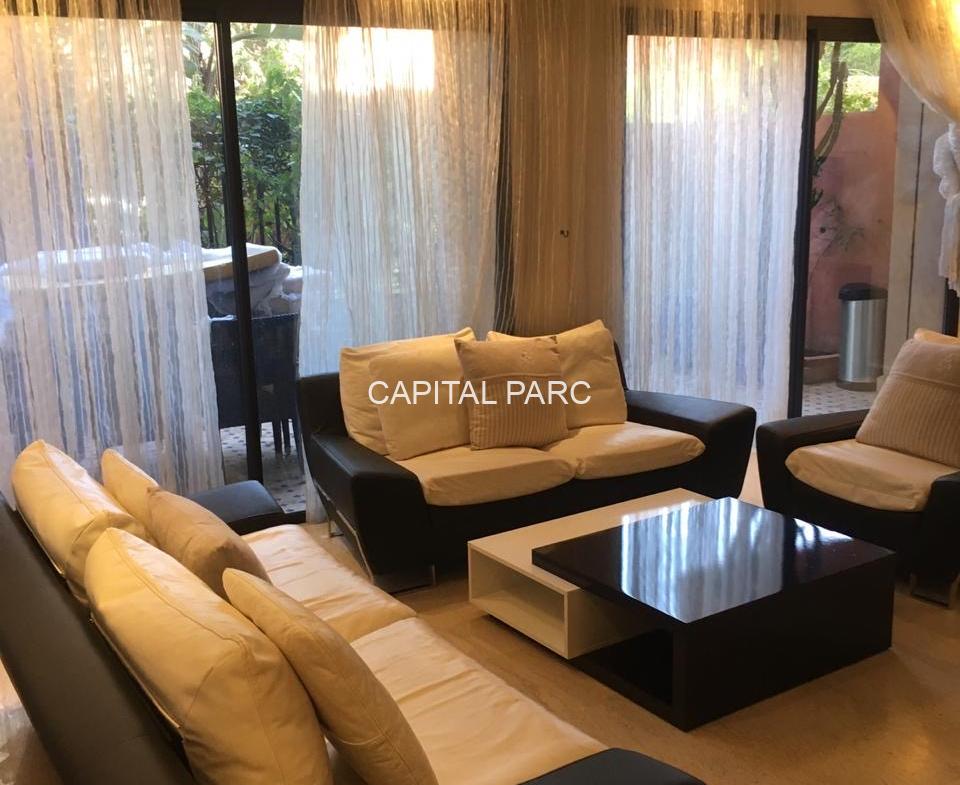 Profitez de ce bel appartement situé dans le prestigieux quartier de l’hivernage à Marrakech , appartement de 103 m , composé d’un grand salon , une grande chambre avec sa salle de bain , une cuisine ouverte sur le salon , une terrasse et une toilette invité .