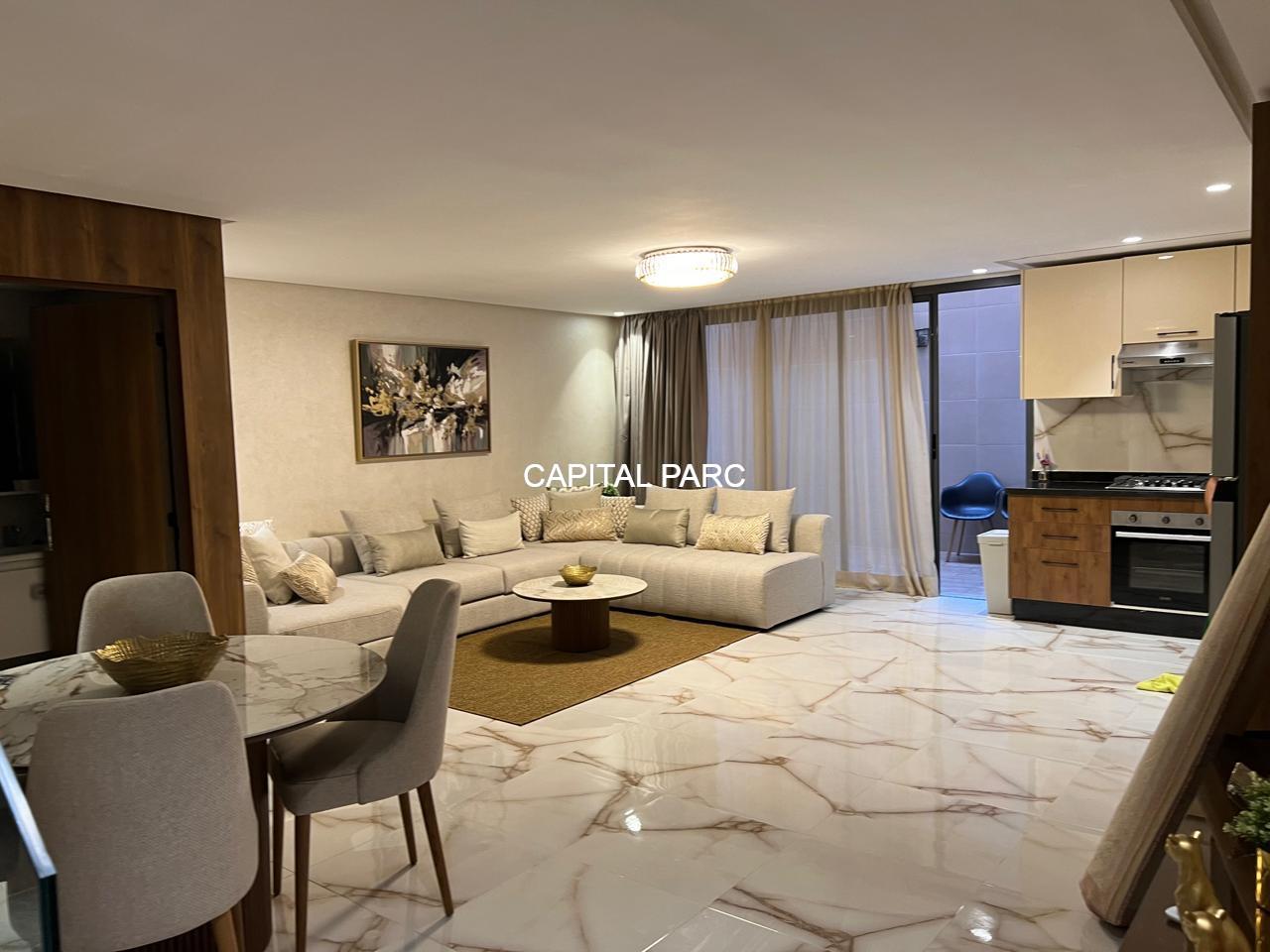 Situation : Marrakech gueliz quartier Victor Hugo. Superficie 92m , 02 chambres, 03 salles de bain , cuisine et cours avec un puits de lumière. Résidence avec ascenseur et place parking .