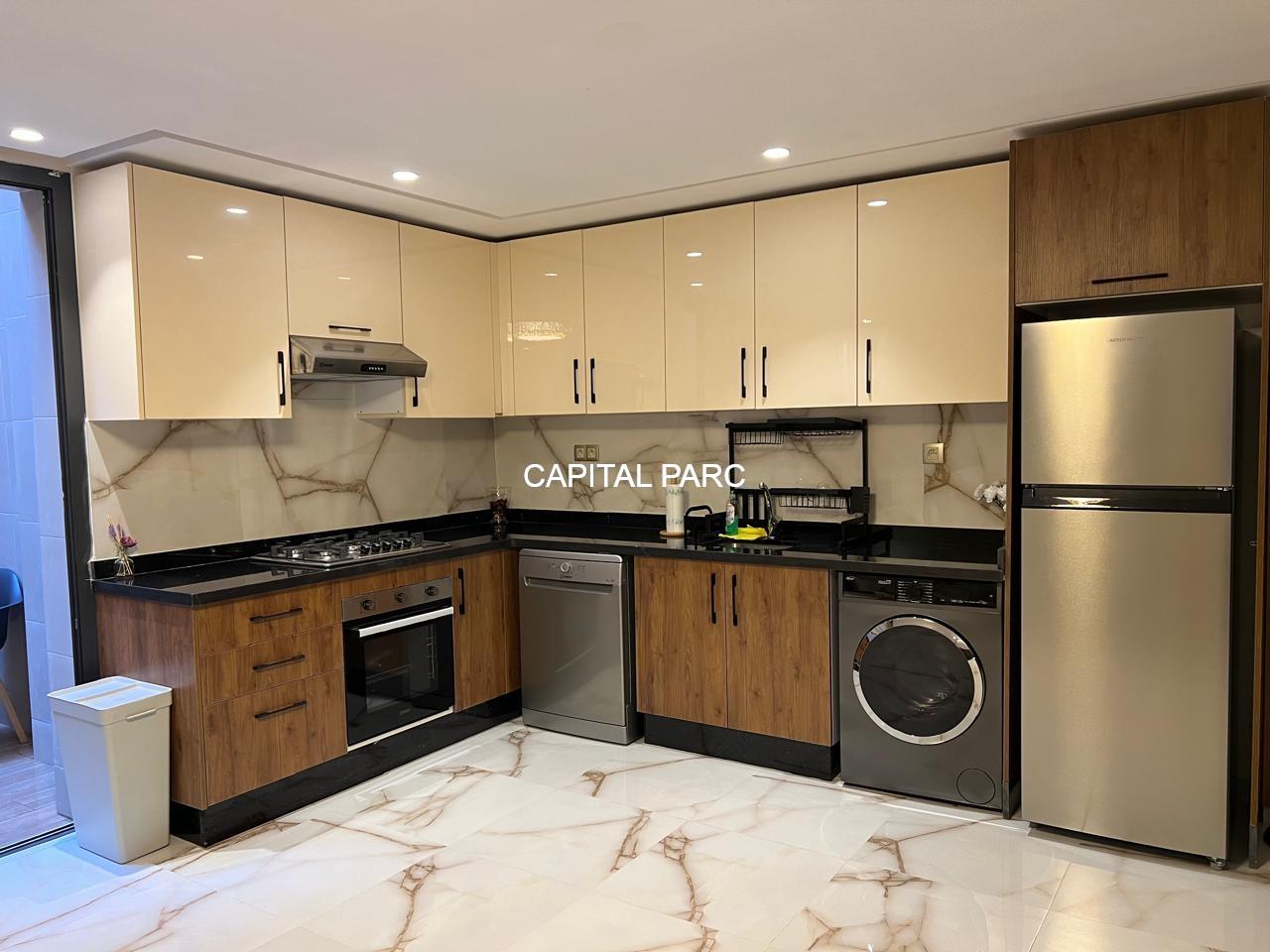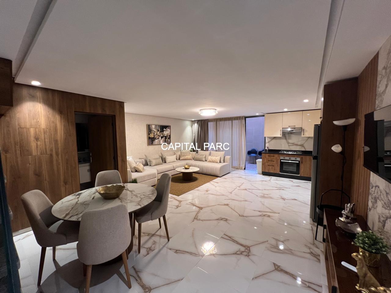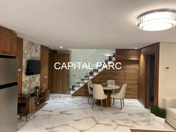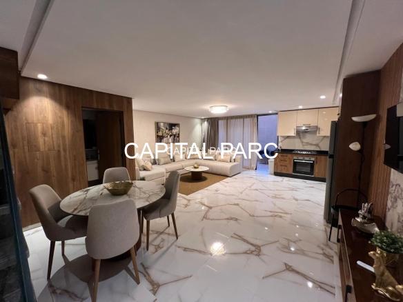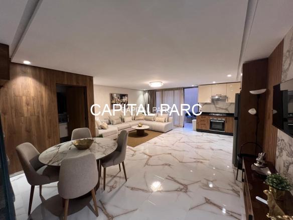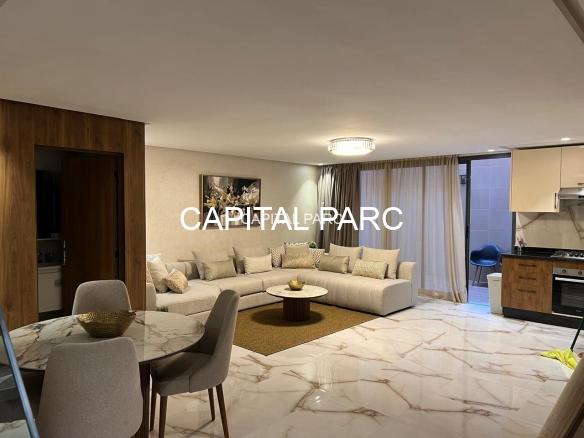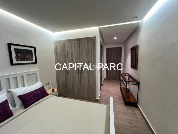 Situation : Marrakech gueliz quartier Victor Hugo. Superficie 92m , 02 chambres, 03 salles de bain , cuisine et cours avec un puits de lumière. Résidence avec ascenseur et place parking .