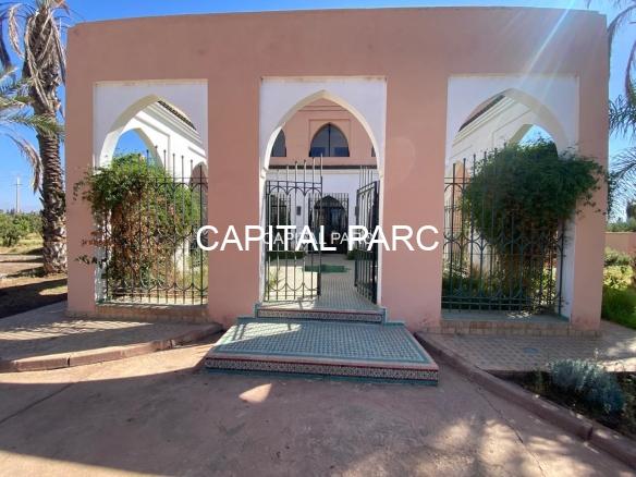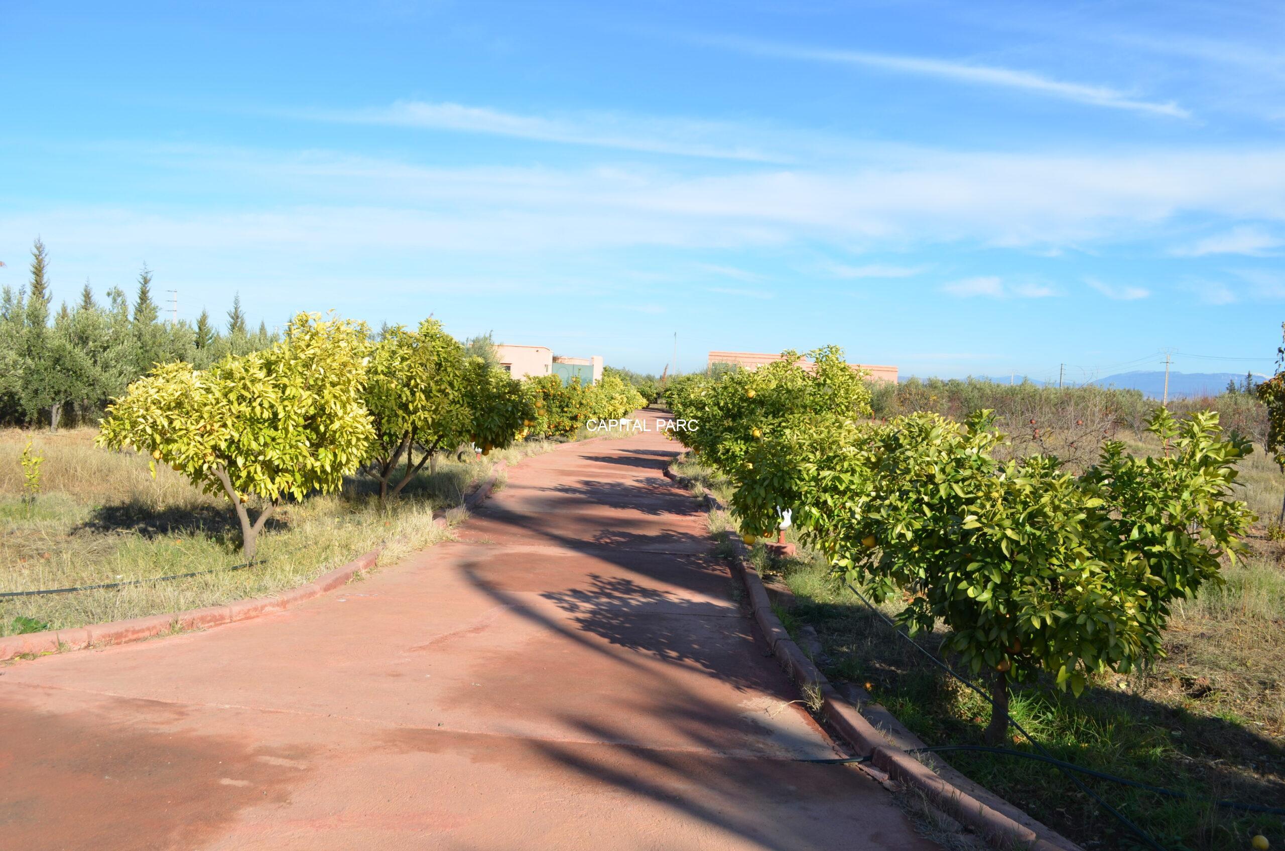 Nous vous proposons à la vente cette belle villa sur un terrain d’un hectare .située à seulement 20 minutes du centre-ville de Marrakech. Très belle villa sur un parc arboré de citronniers , orangers , oliviers etc…. , le terrain est aussi équipé d’un puits , un système d’irrigation goutte à goutte . La propriété est aussi dotée d’un poste électrique et d’une maison du gardien.