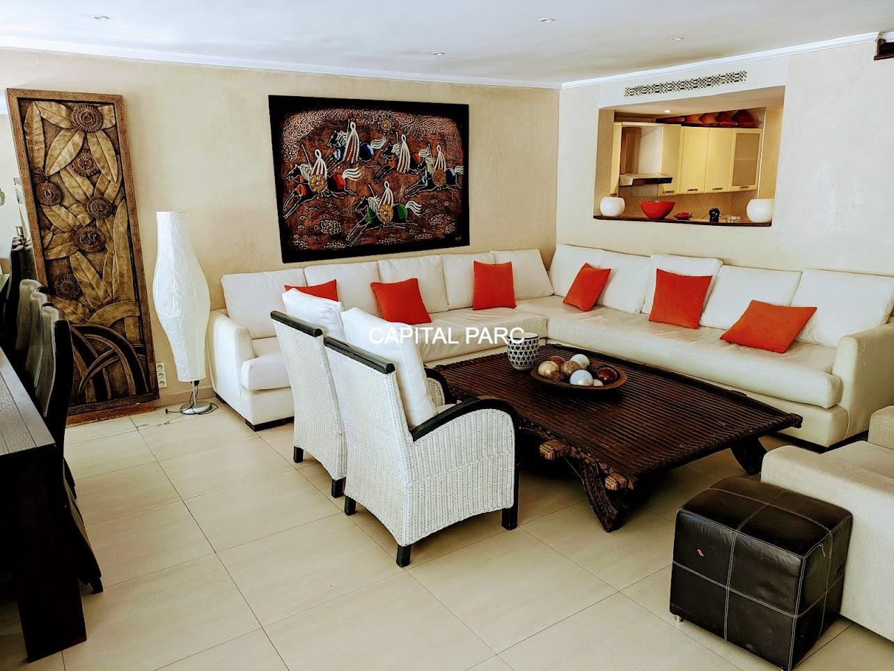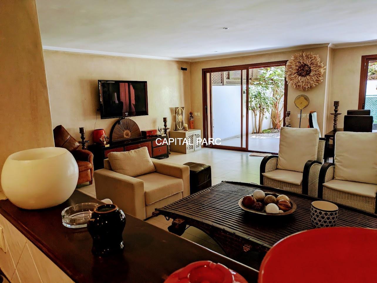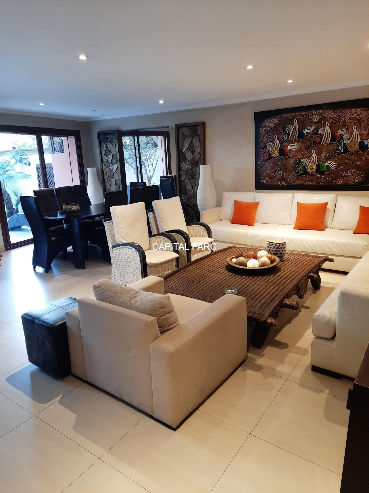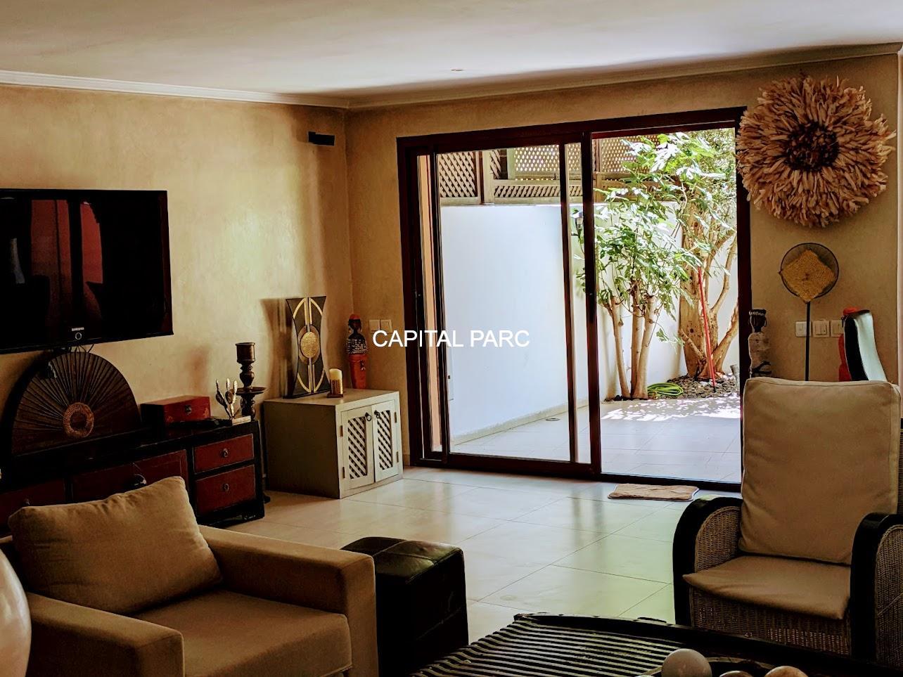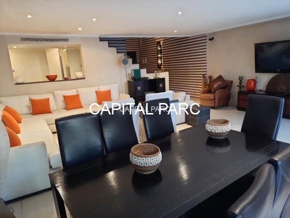 Nous vous invitons à découvrir ce beau duplex situé au rez-de-chaussée d’une belle residence dans le prestigieux quartier de l’hivernage à Marrakech . Duplex de 174 m couverts , 70 m de terrasse , 02 suites au premier étage, un grand salon au rez-de-chaussée, une salle à manger , une salle d’eau et une magnifique cuisine bien équipée. Le duplex possède également une place parking et une cave . Résistance avec ascenseur, piscine et bien entretenue.