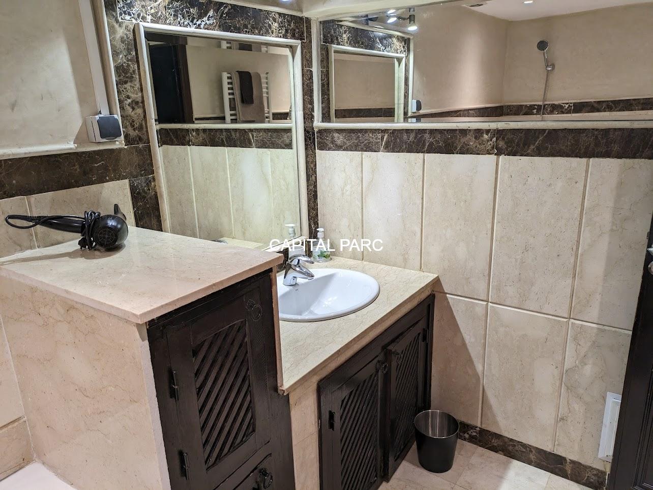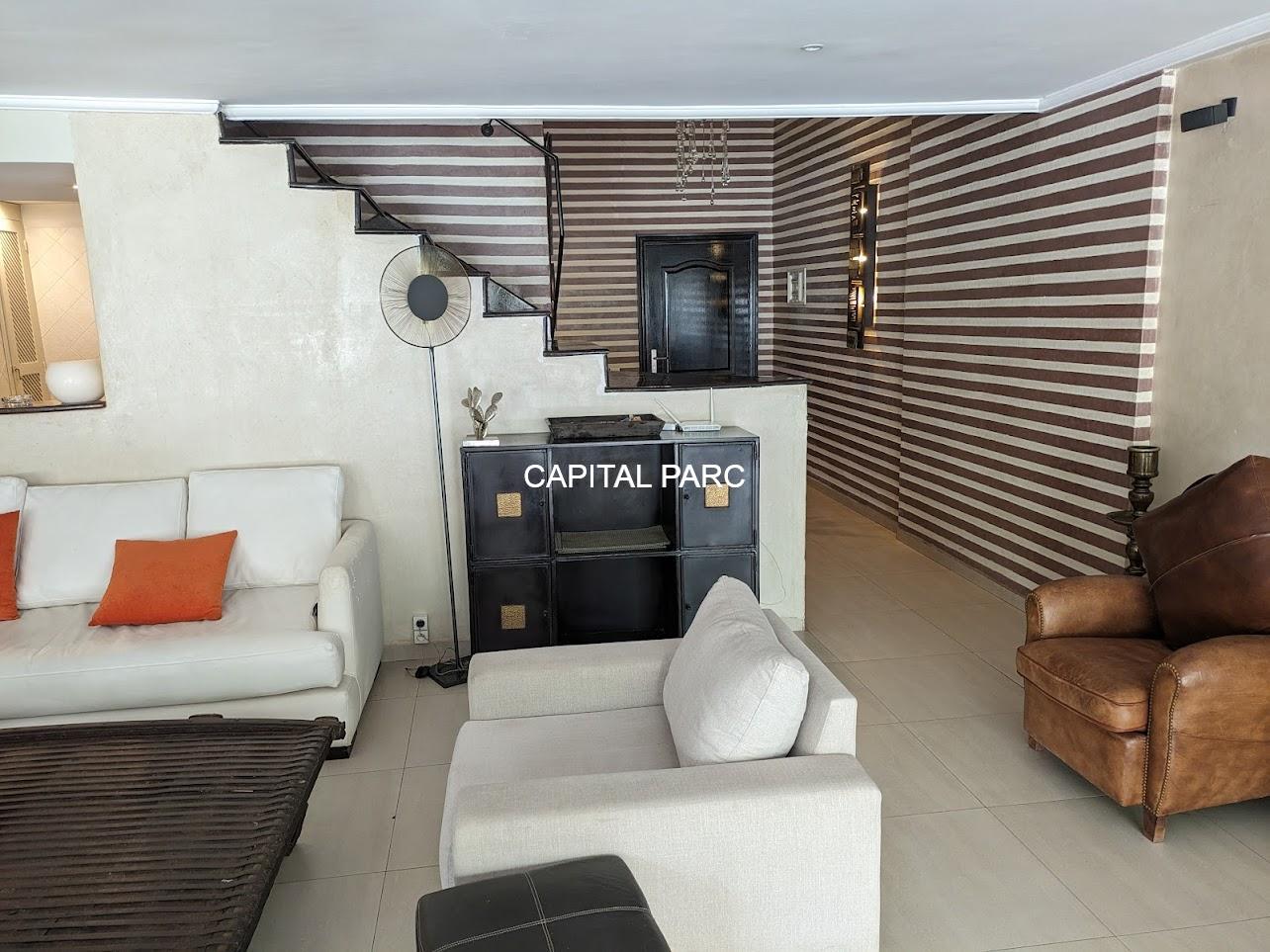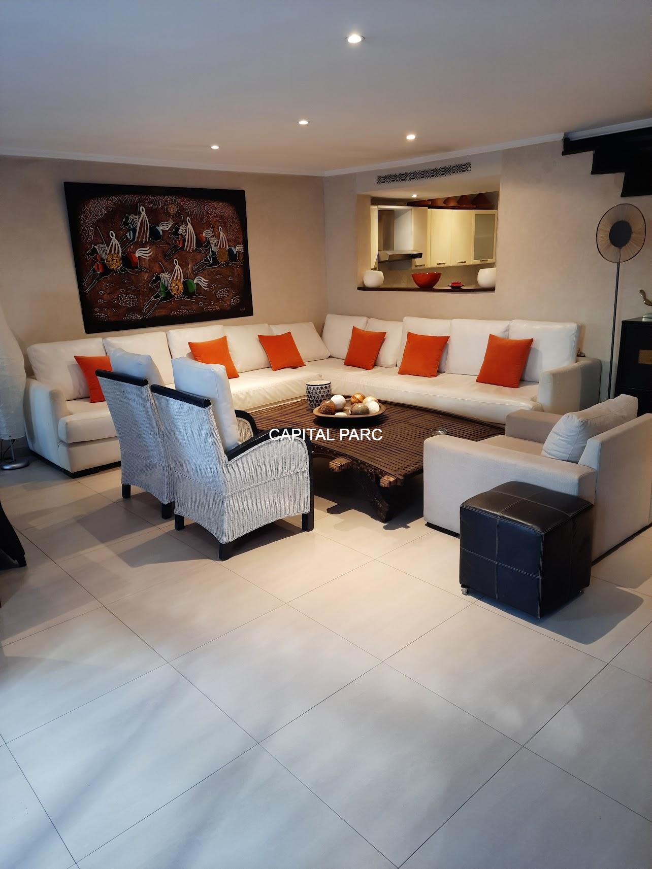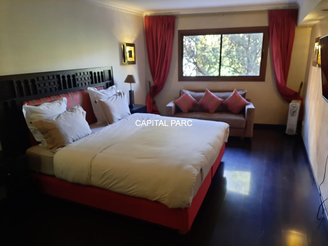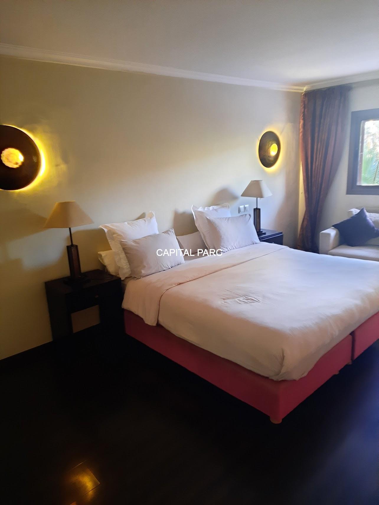 Nous vous invitons à découvrir ce beau duplex situé au rez-de-chaussée d’une belle residence dans le prestigieux quartier de l’hivernage à Marrakech . Duplex de 174 m couverts , 70 m de terrasse , 02 suites au premier étage, un grand salon au rez-de-chaussée, une salle à manger , une salle d’eau et une magnifique cuisine bien équipée. Le duplex possède également une place parking et une cave . Résistance avec ascenseur, piscine et bien entretenue.
