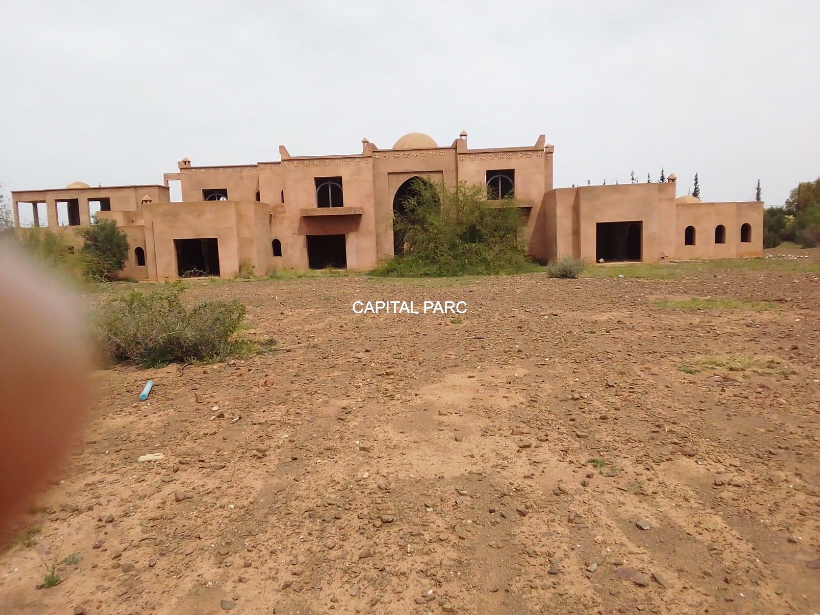 Nous mettons en vente cette maison d’hôtes autorisée pour la construction. Terrain : 1h , habitable 1000 m , deux niveaux , 7 suites , triple salon , grande cuisine , piscine , puits et un parc de 10 000 m . Accès par goudron , environ 18 km de marrakech , 2 km dans les terres . Très belle maison avec une belle architecture Arabo andalous .