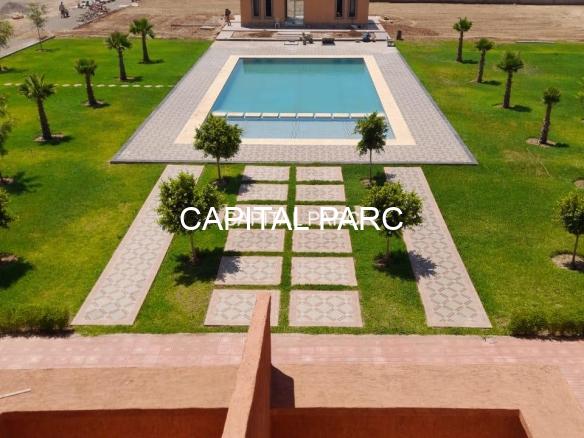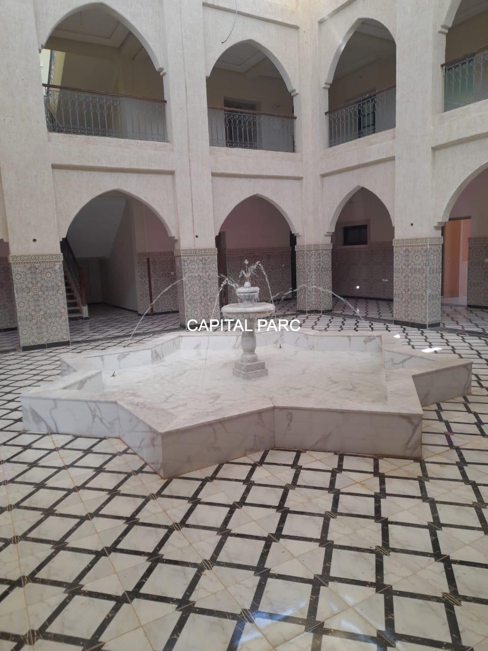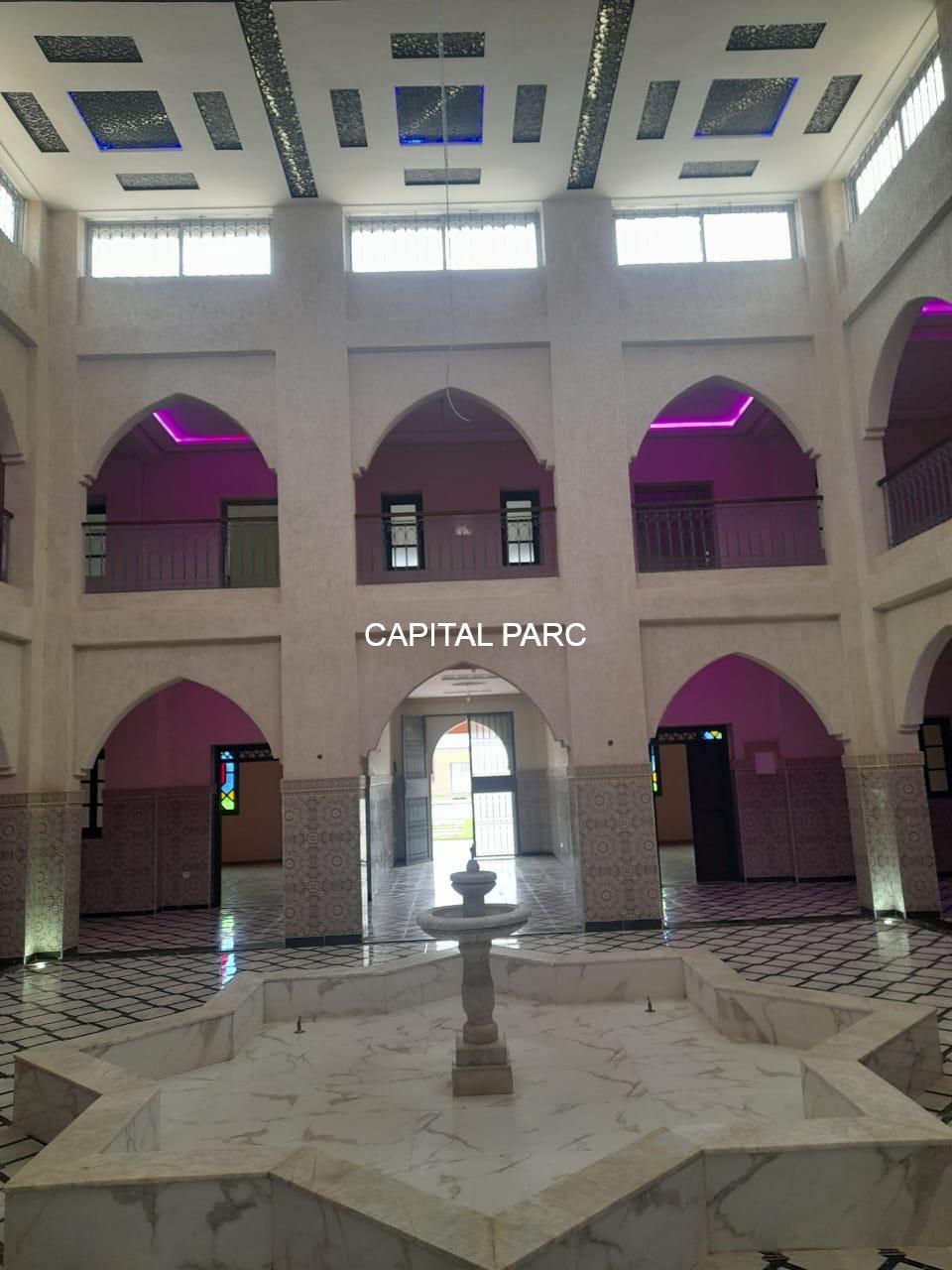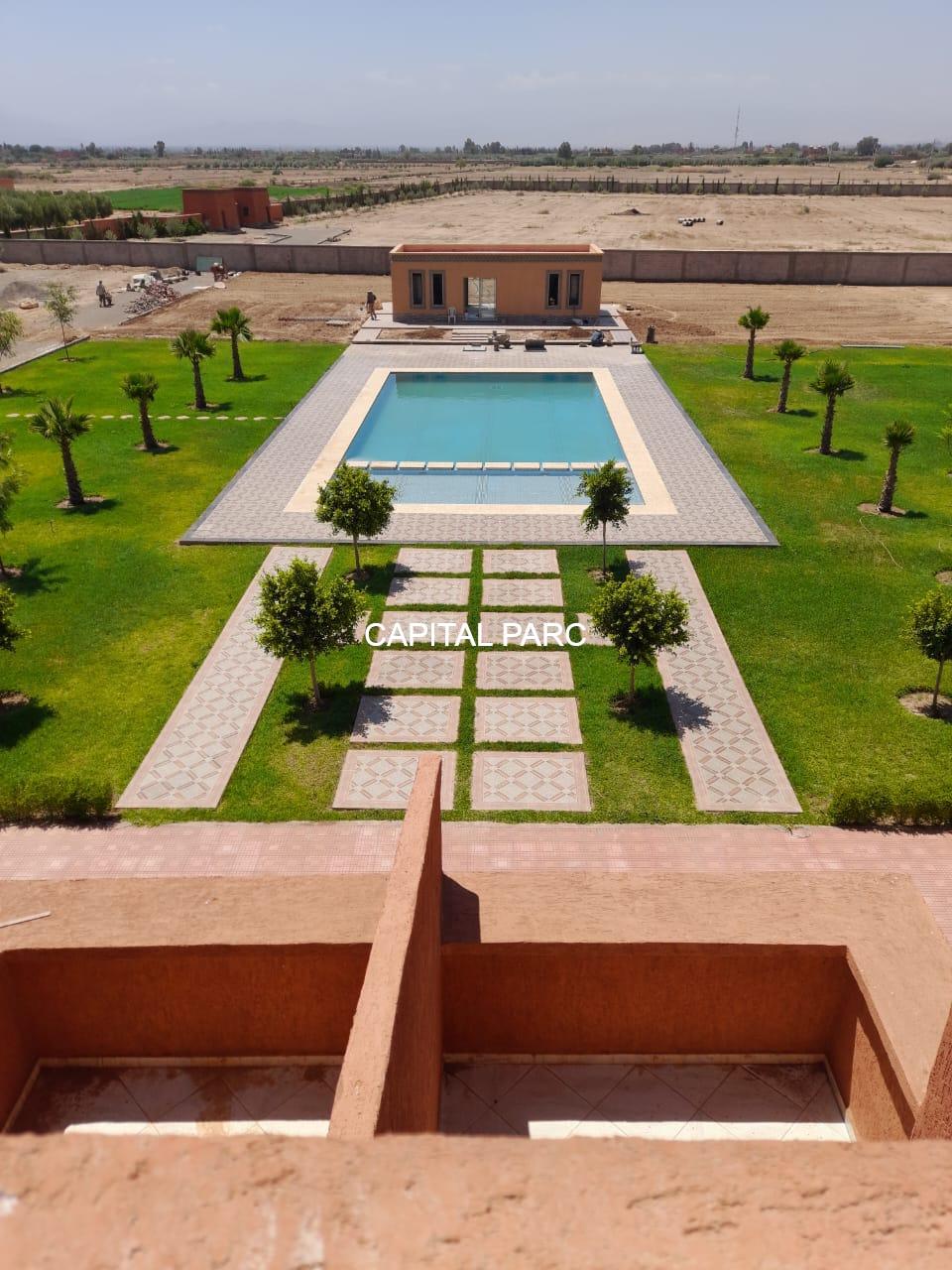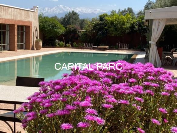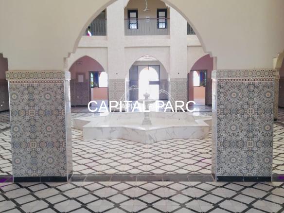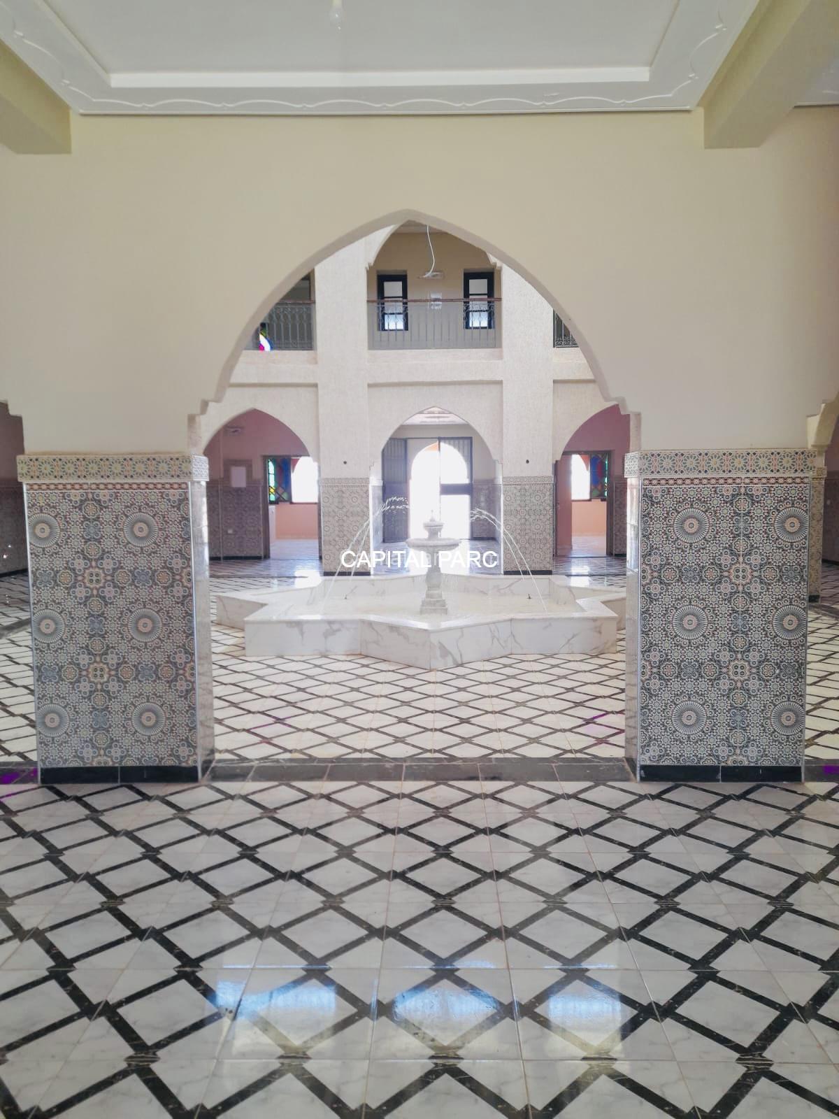 Cette belle maison traditionnelle à construite avec une autorisation de maison d’hôtes, la surface habitable est de 1670 m , avec 10 chambres chacune avec sa salle de bain , 6 suites , 4 salons , une grande cuisine , et une belle terrasse , le site est doté d’un puits avec moteur , une grande piscine avec local technique, un pool house , des arbres fruitiers , et un grand mur de cloture en dure . Possibilité de faire une extension d’activité sur l’espace libres . Magnifique parc avec vue imprenable sur l’atlas . Atmosphère saint et de l’air pure à remplir les poumons.