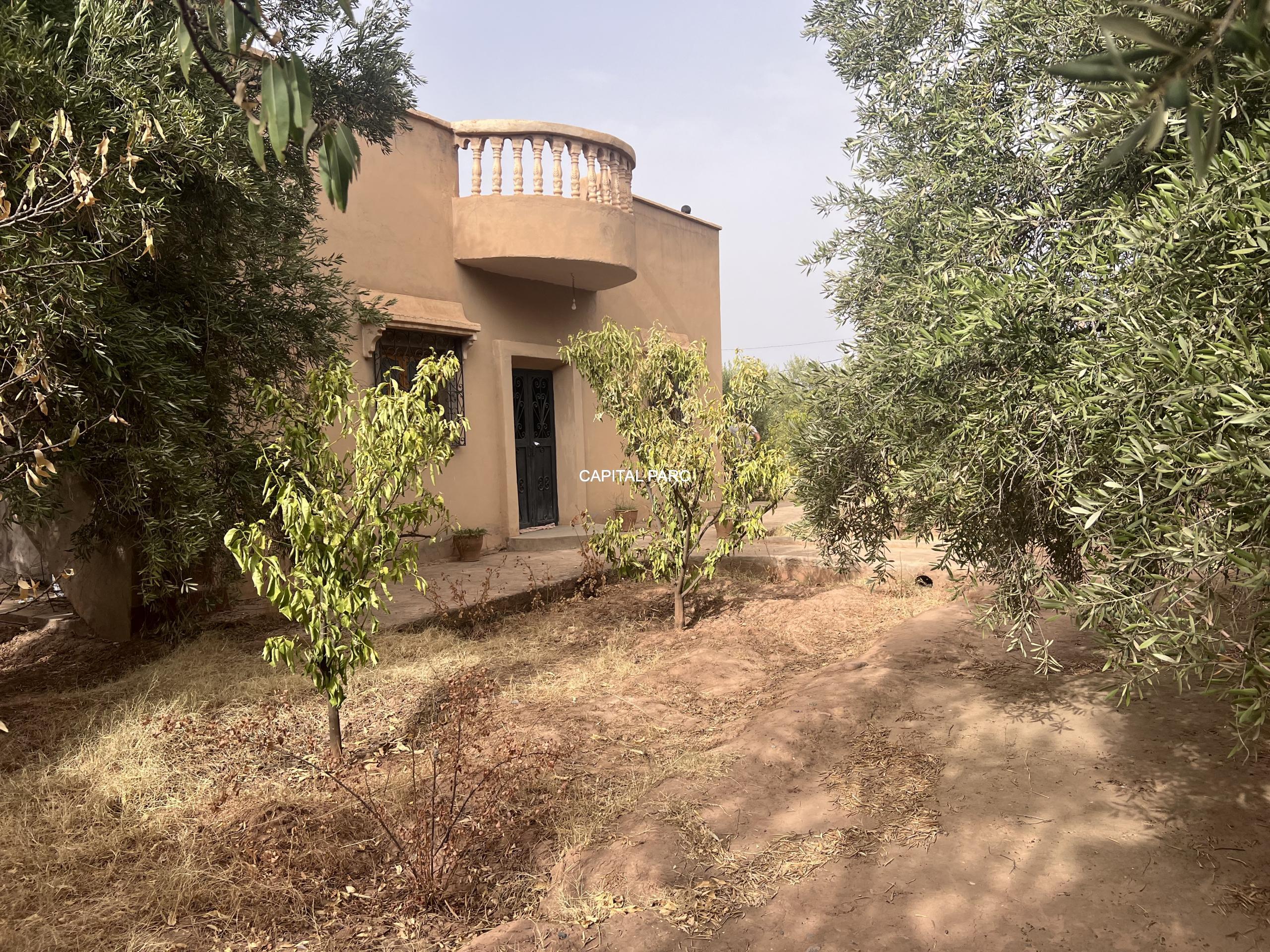 Cette petite maison se situe à environ 25 km de Marrakech dans la region de sidi abdellah ghiat , sur un terrain de 100 m , il contient un puits avec moteur , des oliviers et quelques arbres fruitiers. La petite , la propriété est électrifiée et clôturée.