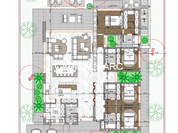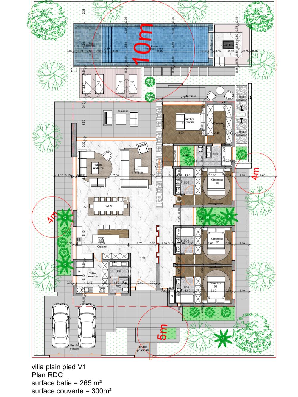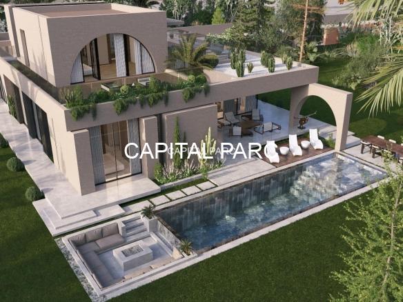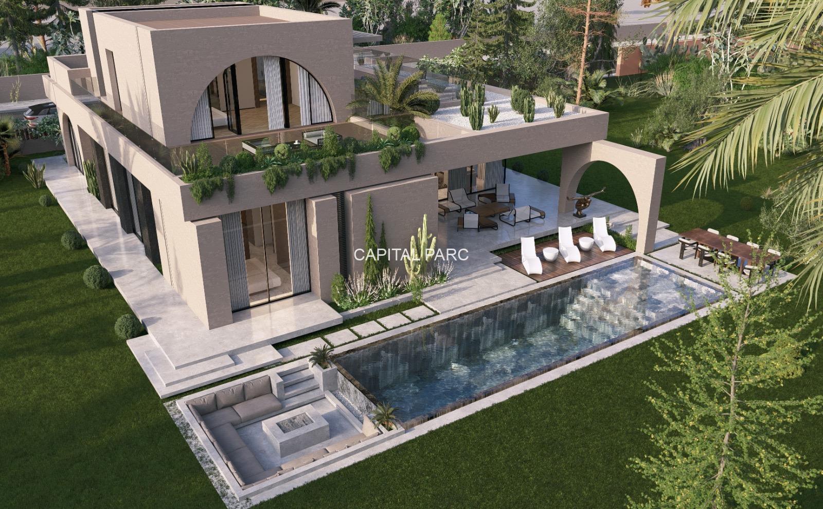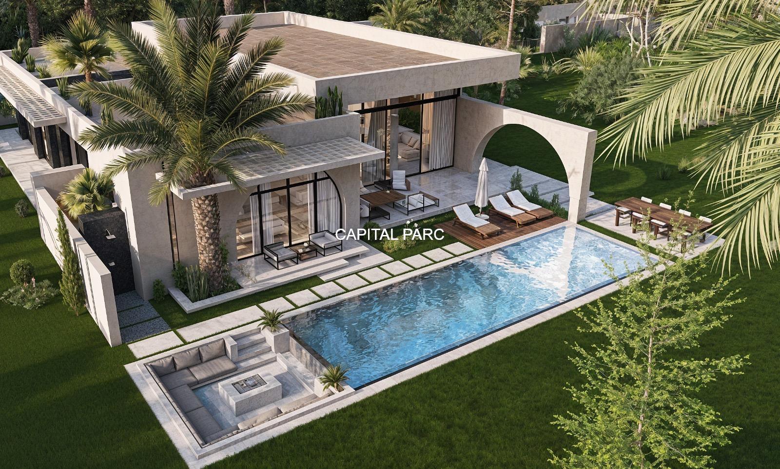 Des villas plein pied sont proposées dans ce magnifique programme, 03 grandes chambres avec chacune sa salle de bain et dressing , une grande chambres parentale avec sa grande salle de bain , toilette et dressing . Double salon dont une avec cheminée, une salle à manger , une grande cuisine bien équipée, grande terrasse et une grande piscine . 265 m bâtie, 300 m habitable et 830 m de terrain. Les villas sont exposées de manière a laisser rentrer la lumière dans toutes les pieces . Très belle finition, des prestations de haut de gamme et un cadre idéal.