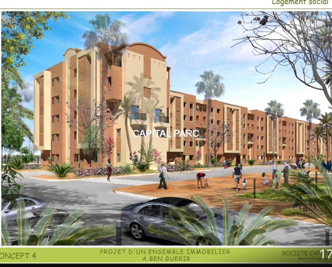 Ce projet immobileir en vente est situé dans la vallée de la ville de Ben guerir a environ 80 km de marrakech . Projet idéalement placé a l’entrée de la ville . Il comprends plusieurs types de logements, des logements sociaux , des logements de moyen standing , des lots économiques, des commerce , complexe sportif et supermarché.