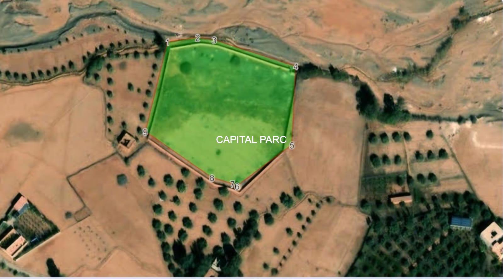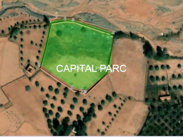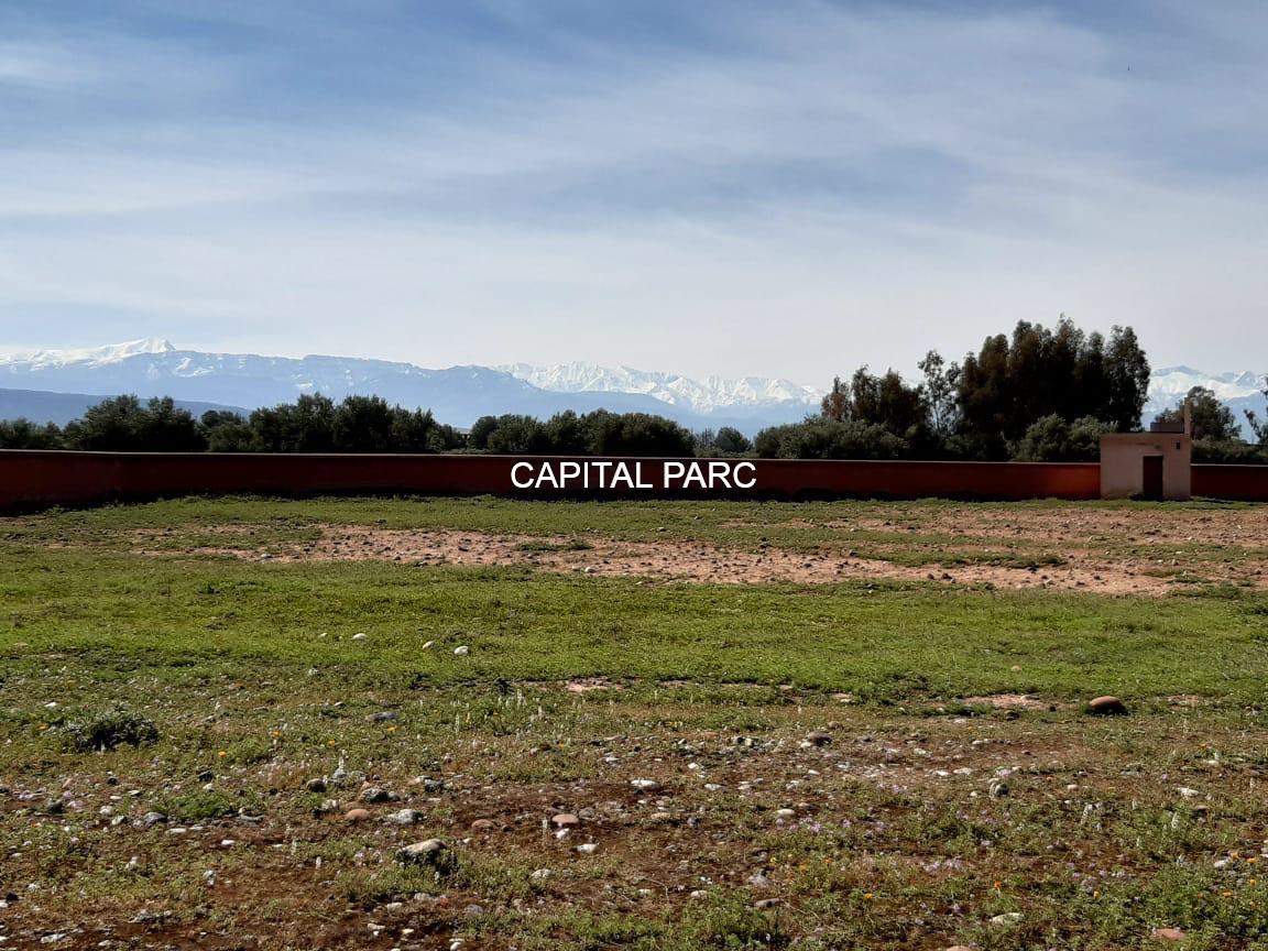 Terrain de 1,31 hectare, entièrement clôturé avec porte fermée, offre un cadre exceptionnel avec une vue imprenable sur les montagnes de l’Atlas.