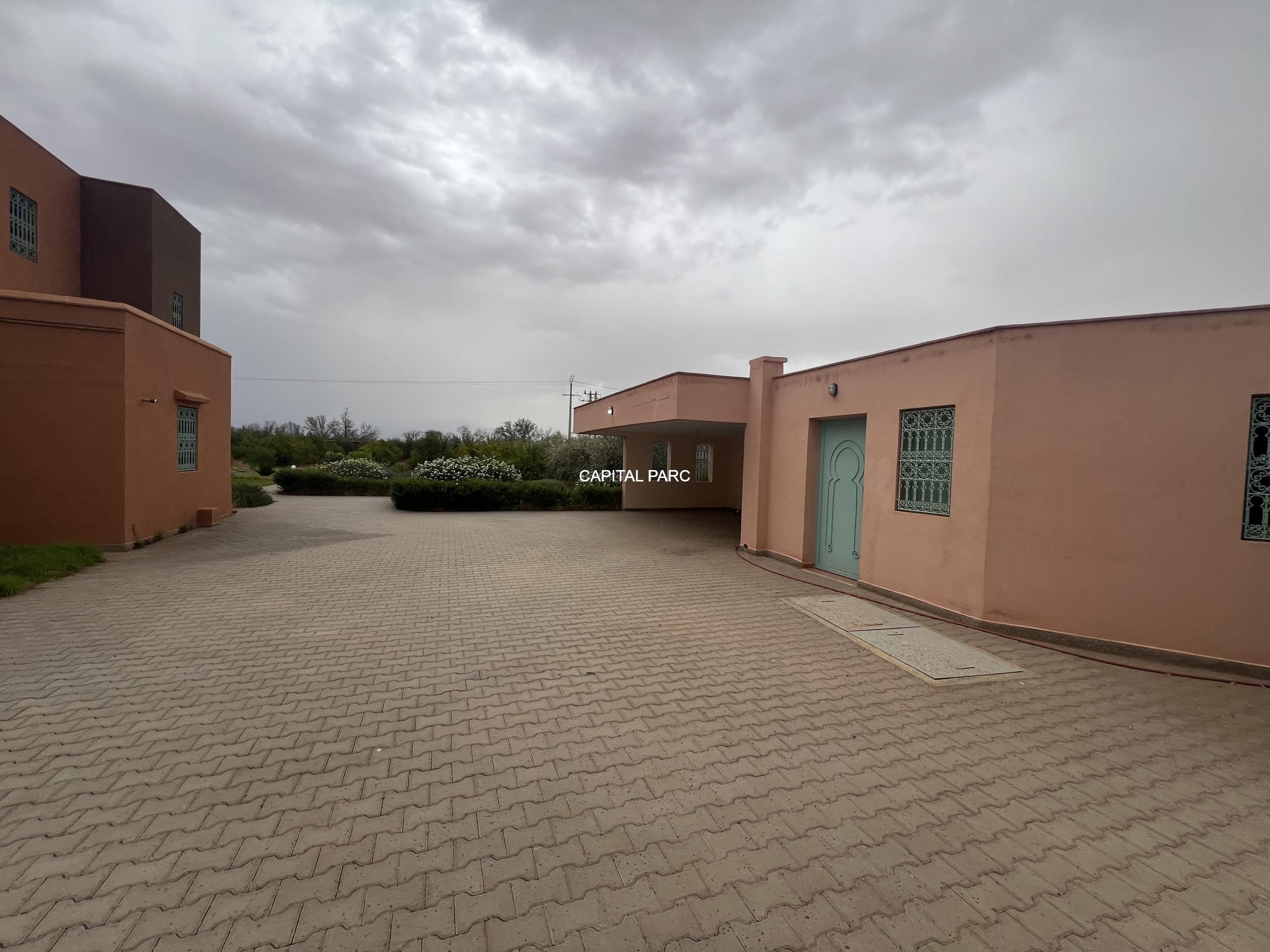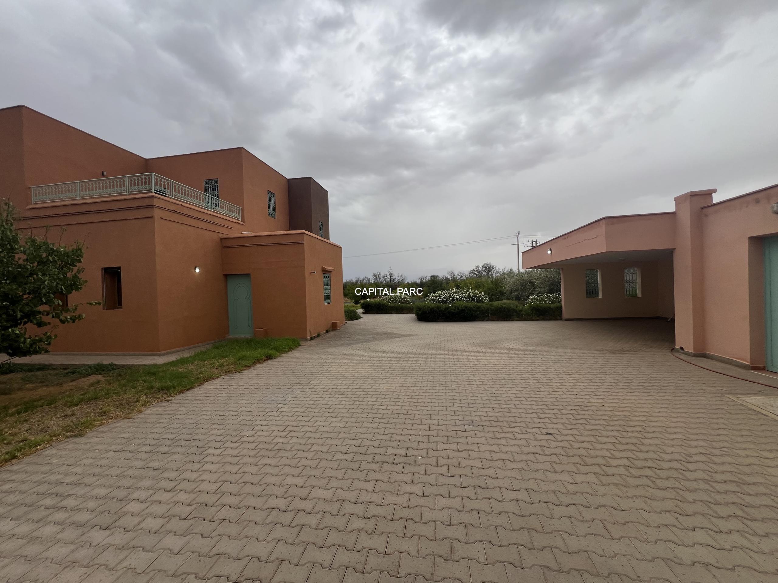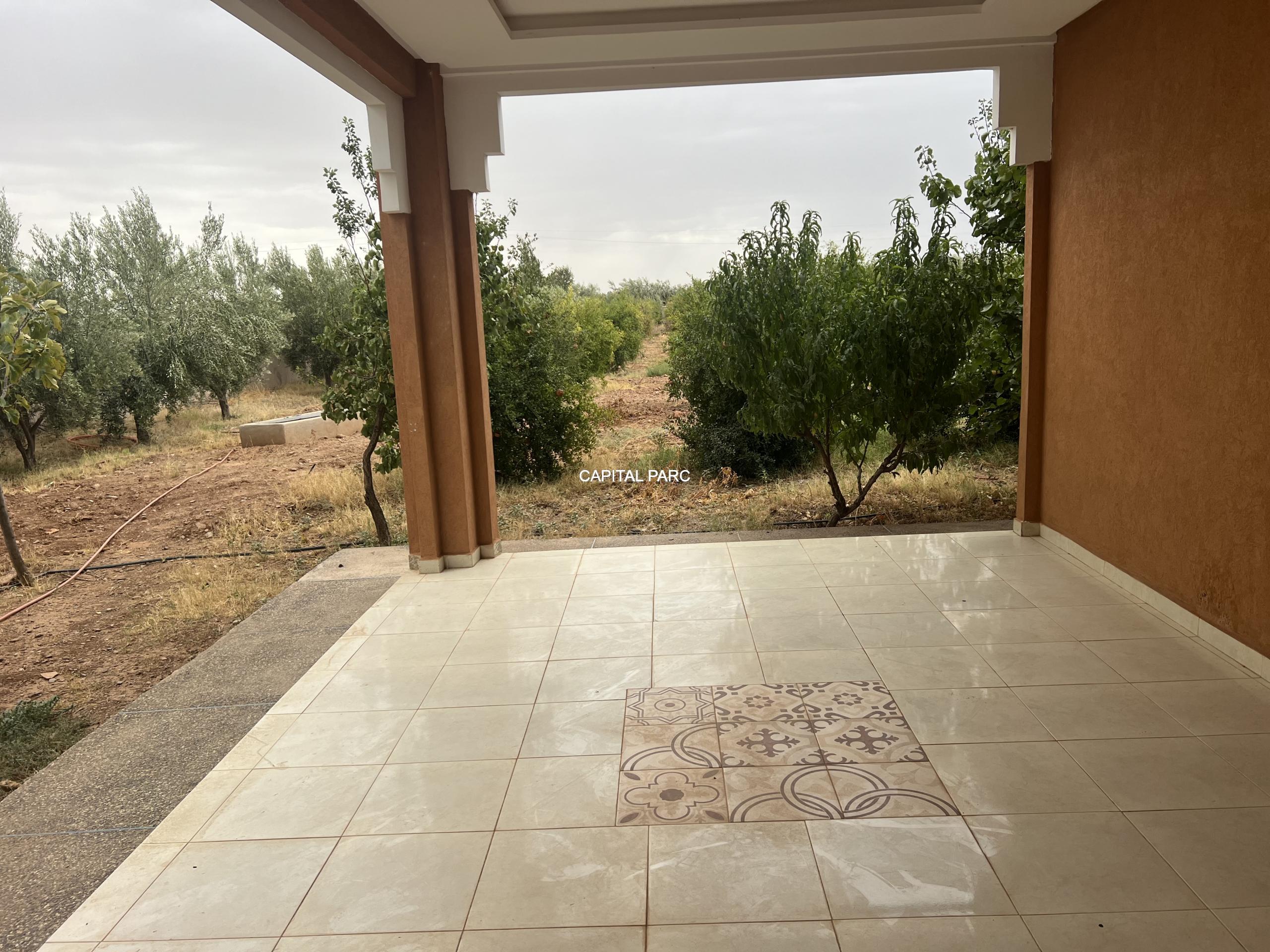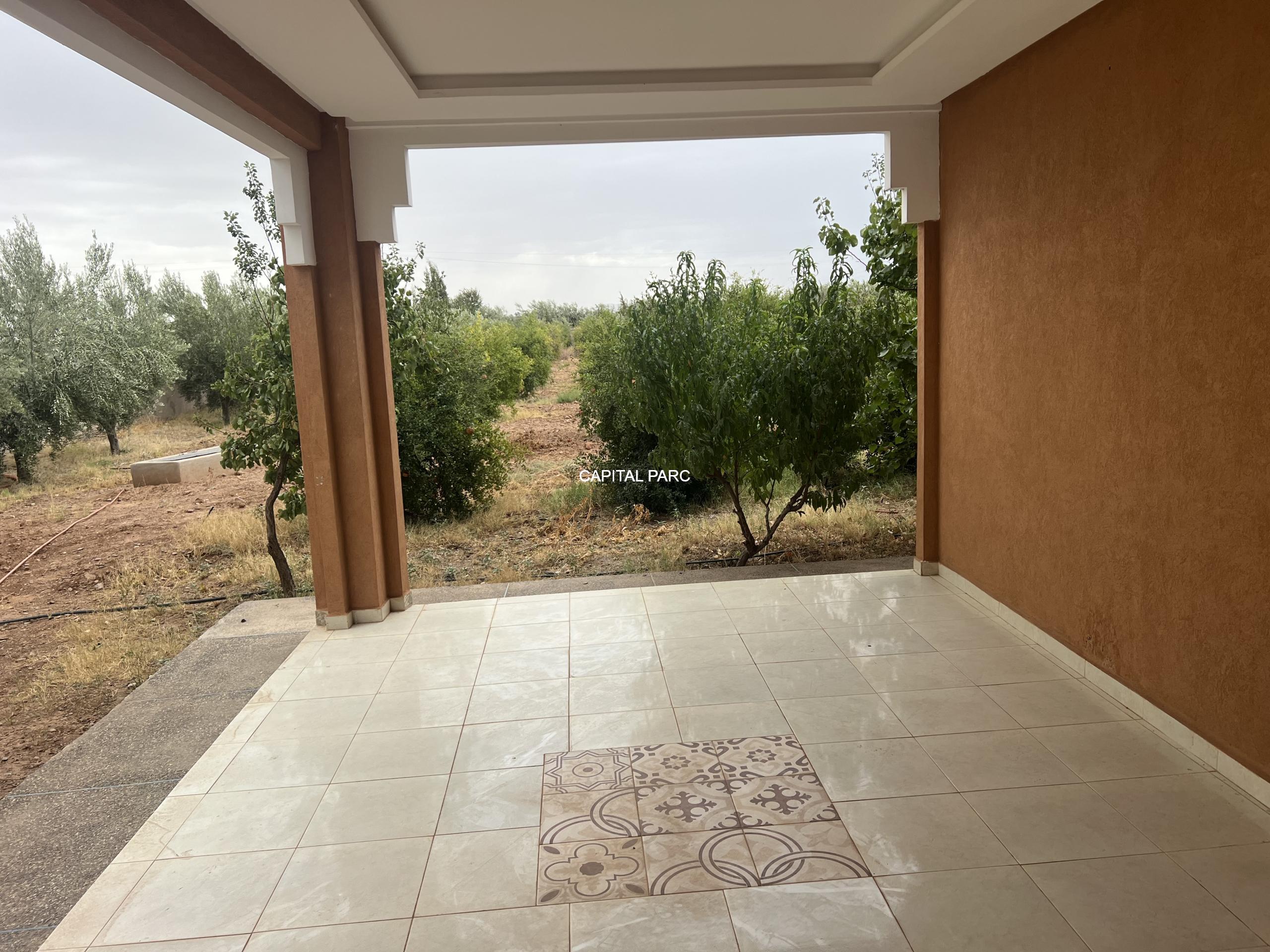 Situation géographique : Marrakech route ourika . Superficie du terrain : 10 000 m, superficie habitable : 300m . Orientation plein sud : nombre de chambre : 03 . Nombre de salle de bain ; 02 nombre de cuisine 02 .