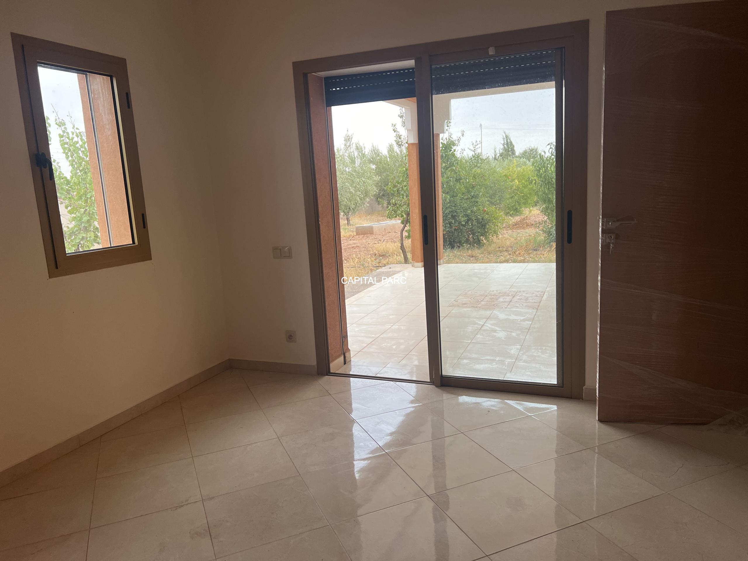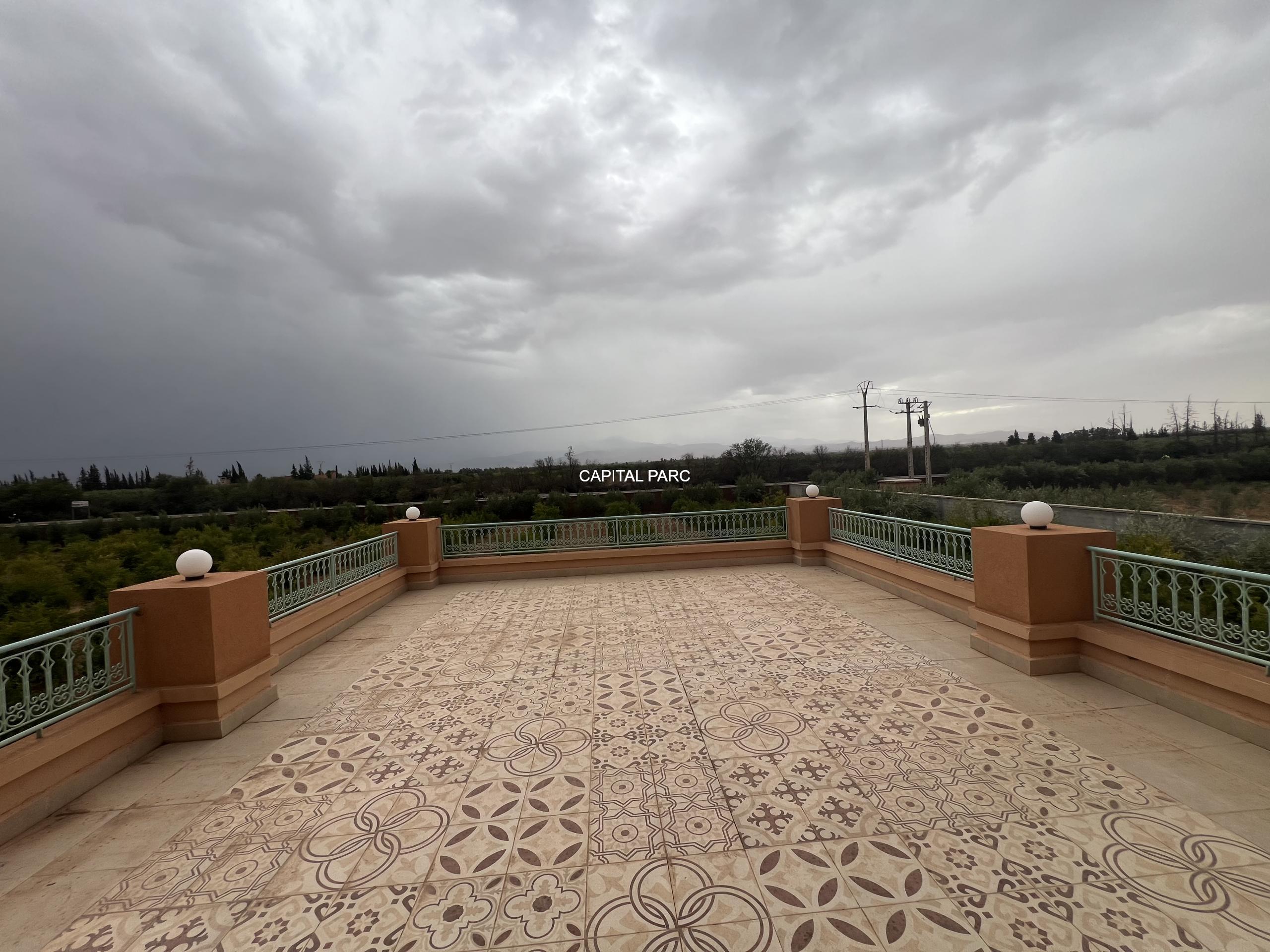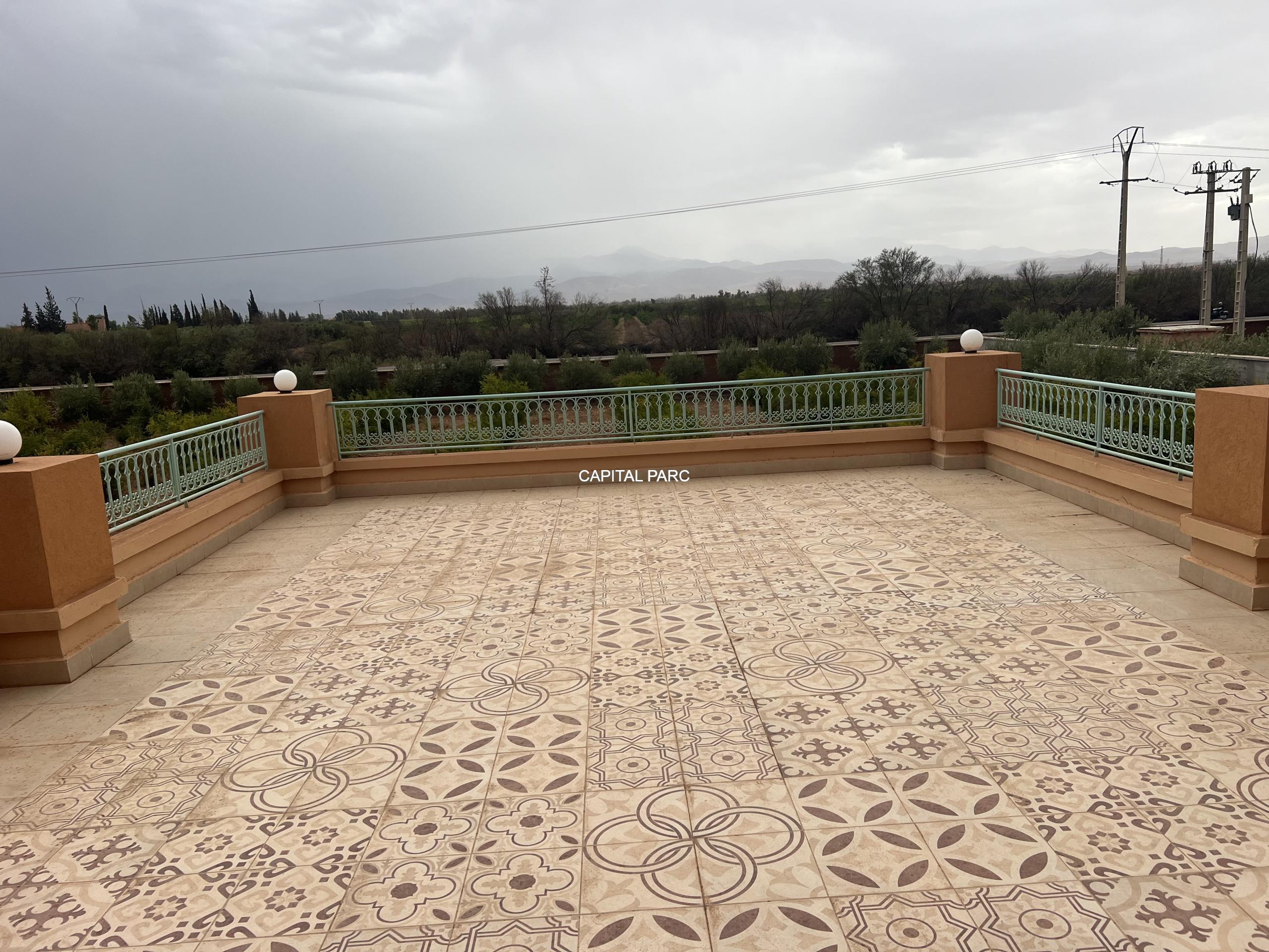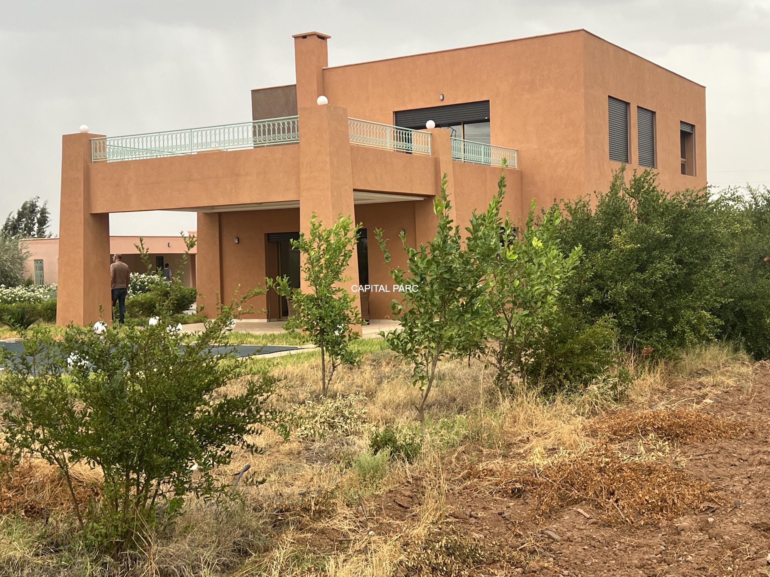 Situation géographique : Marrakech route ourika . Superficie du terrain : 10 000 m, superficie habitable : 300m . Orientation plein sud : nombre de chambre : 03 . Nombre de salle de bain ; 02 nombre de cuisine 02 .