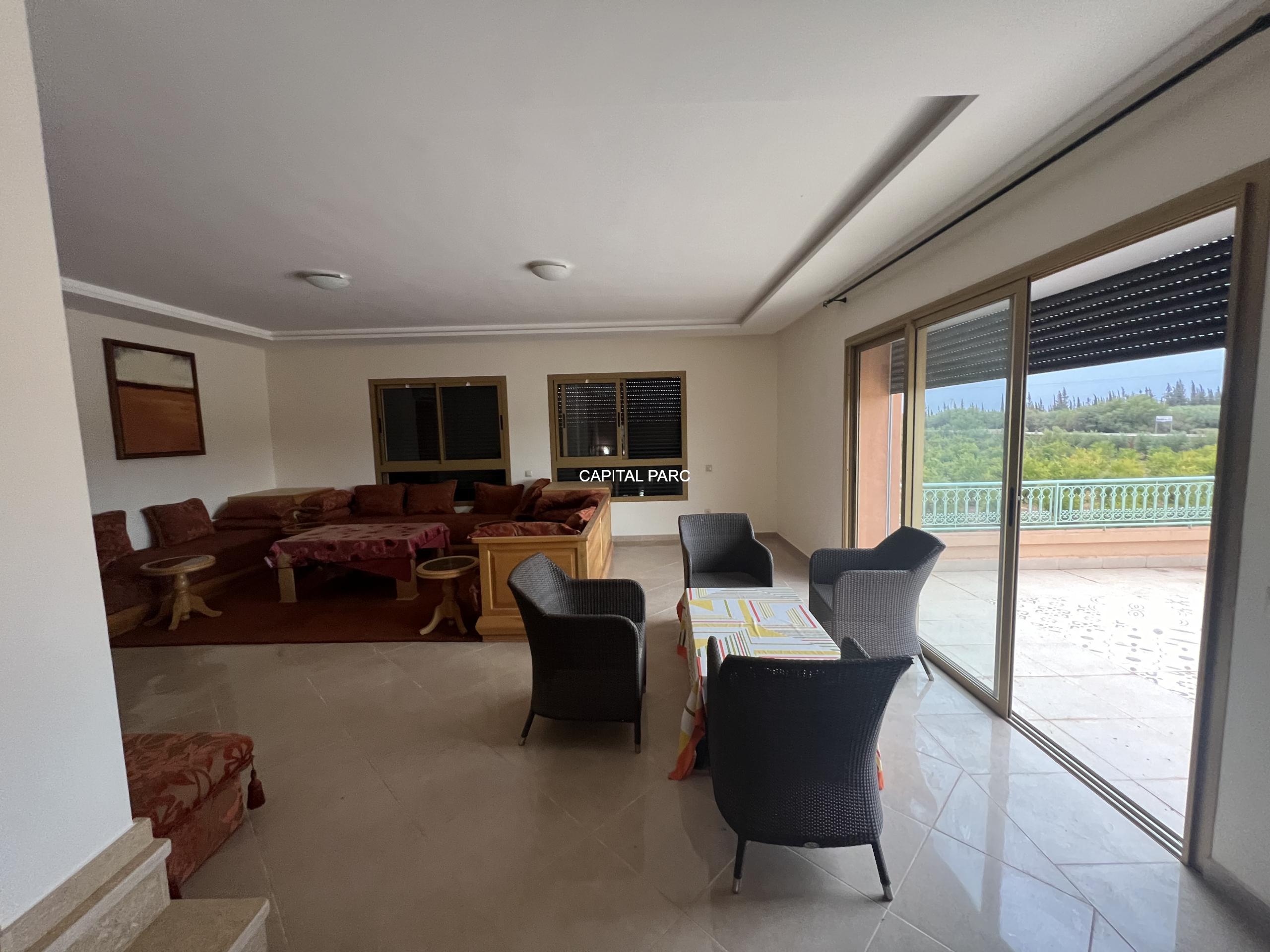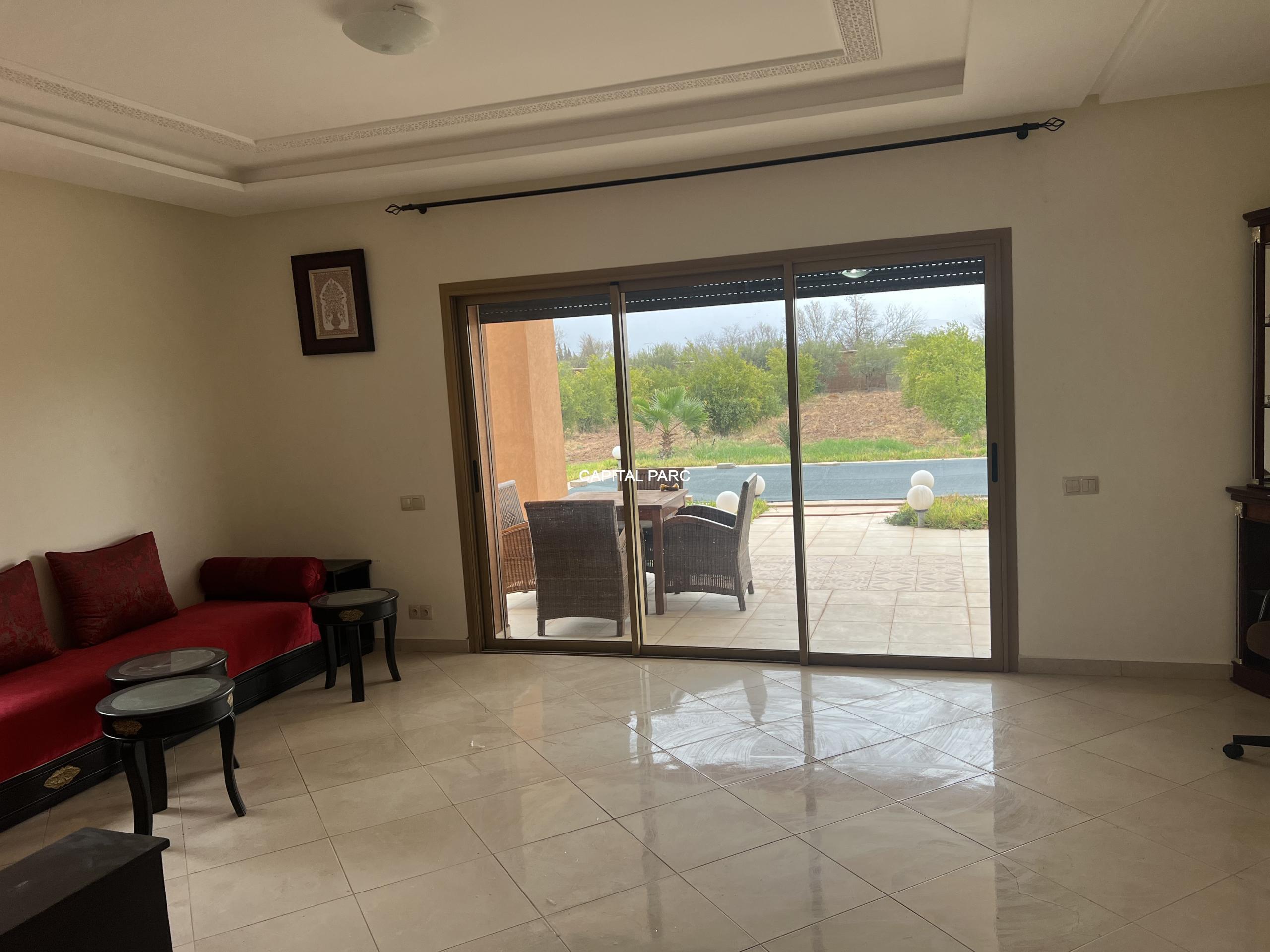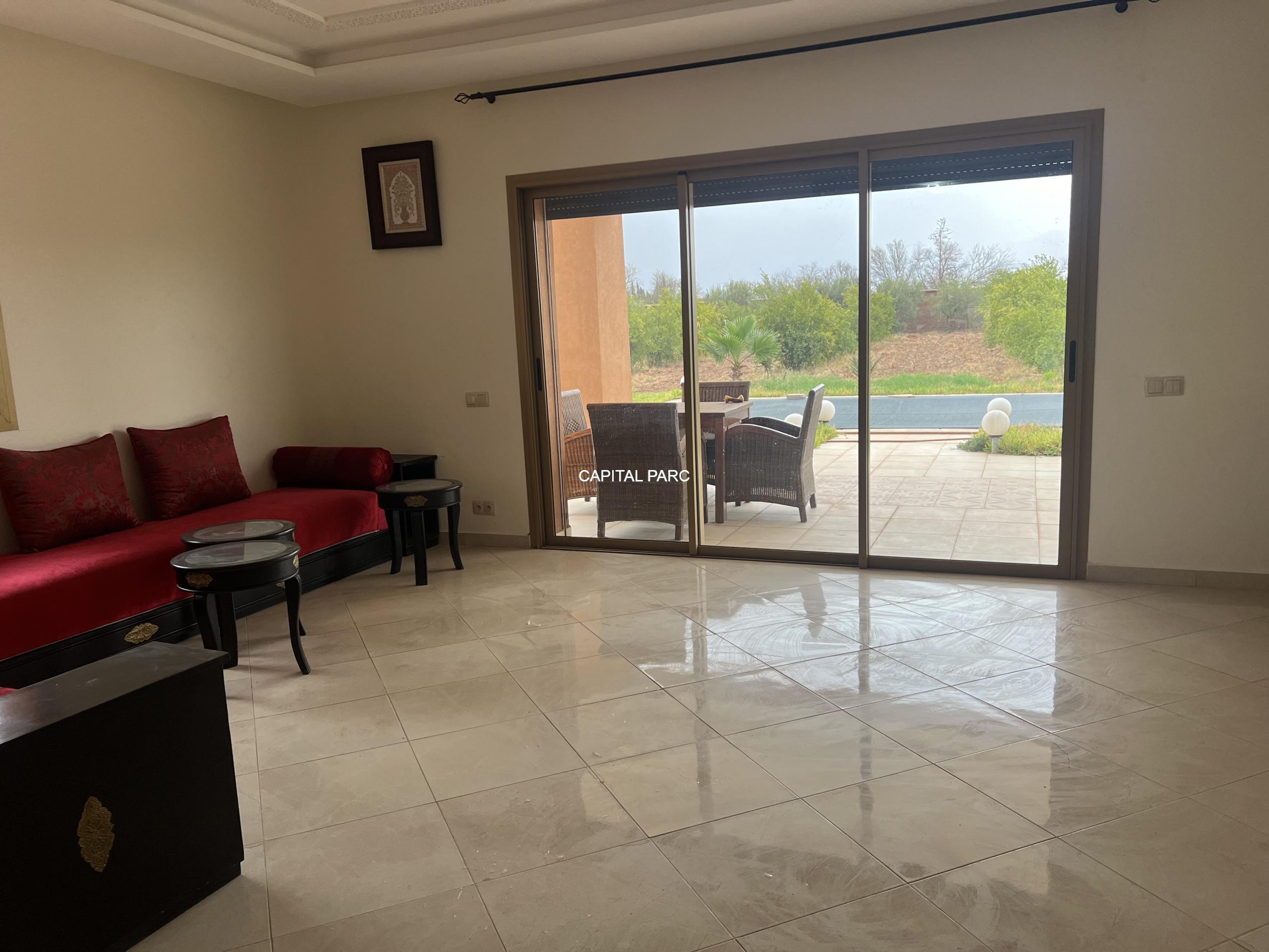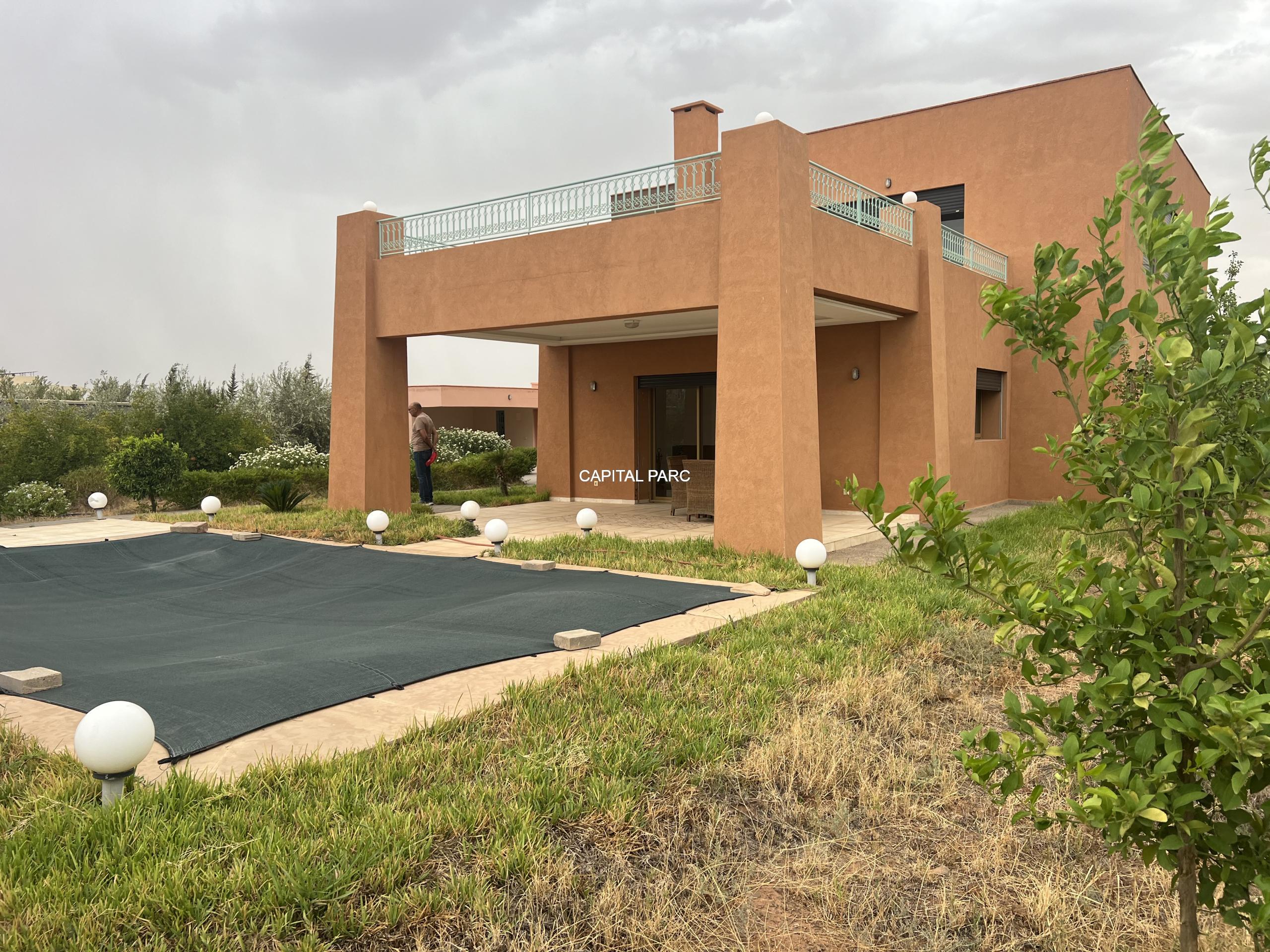 Situation géographique : Marrakech route ourika . Superficie du terrain : 10 000 m, superficie habitable : 300m . Orientation plein sud : nombre de chambre : 03 . Nombre de salle de bain ; 02 nombre de cuisine 02 .