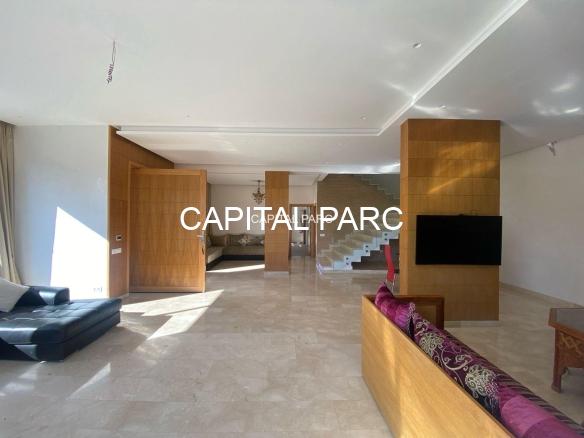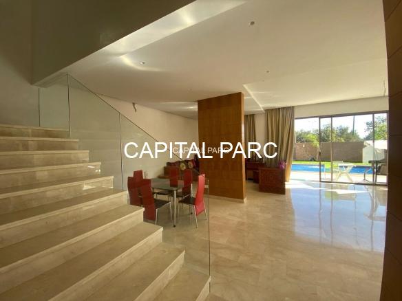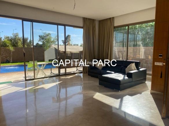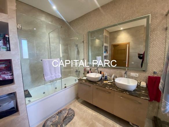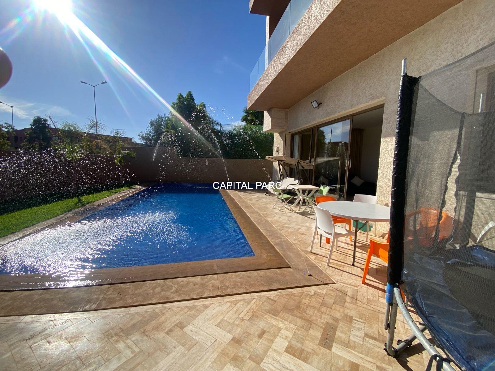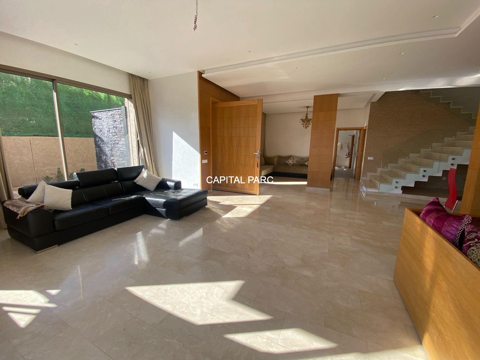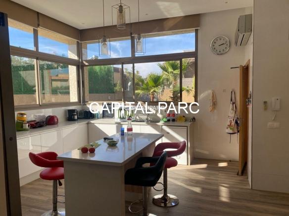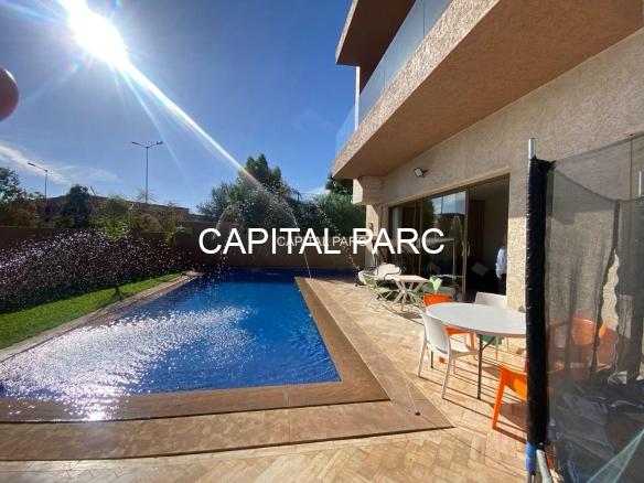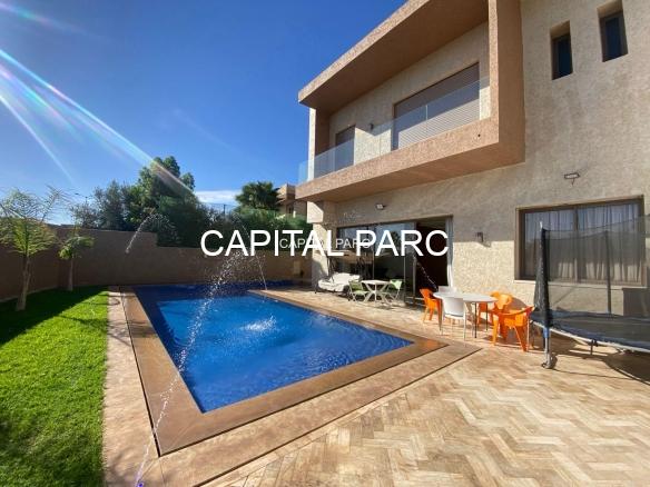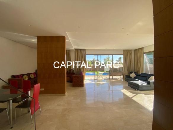 Situation : route de casablanca à 15 minutes du centre-ville de marrakech , 600 m de jardin , 05 chambres , 04 salles de bain, chambres de bonne , salon marocain , salon européen et salle à manger , grande piscine , mur en cascade d’eau , lumière tamisée, piscine moderne à débordement, cuisine avec accès services . Résidence avec poscine principale , terrain de tennis et d’autres activités à l’intérieur de la résidence.