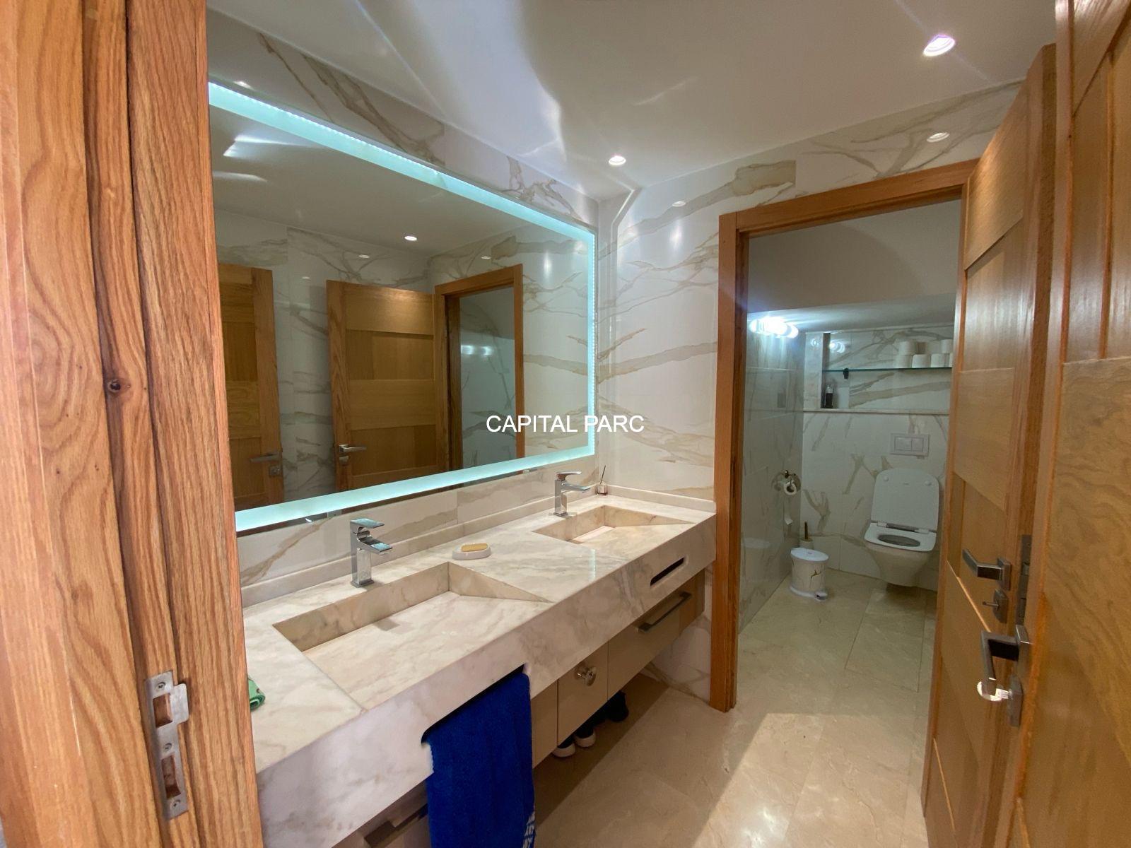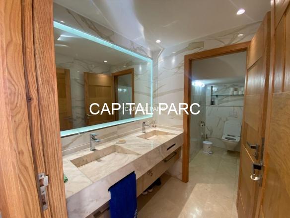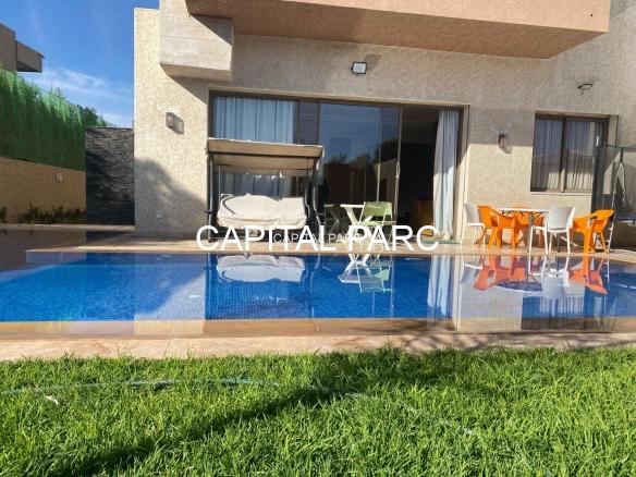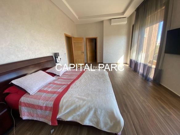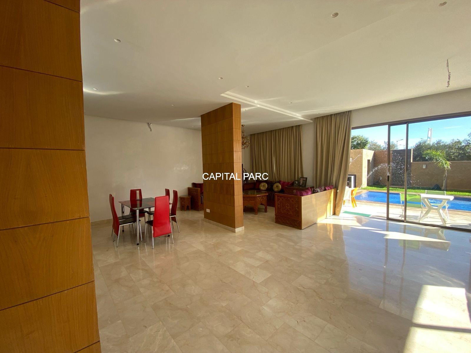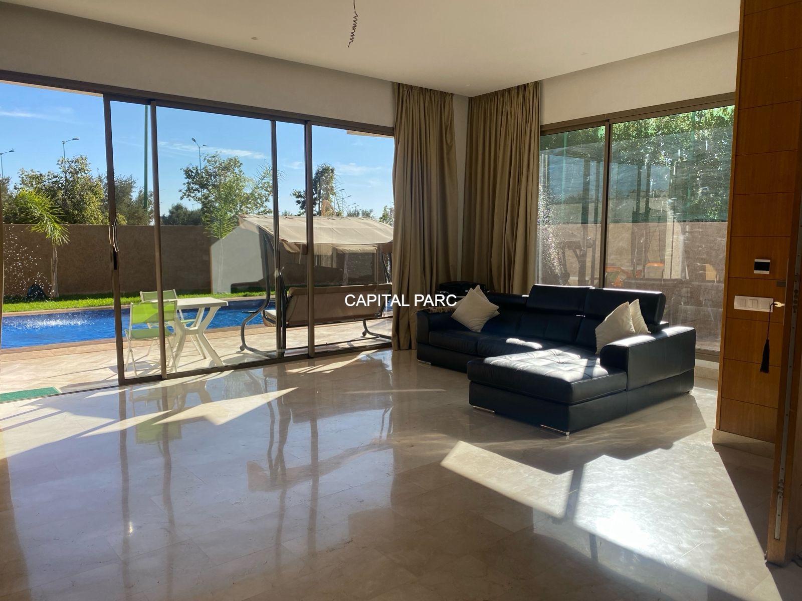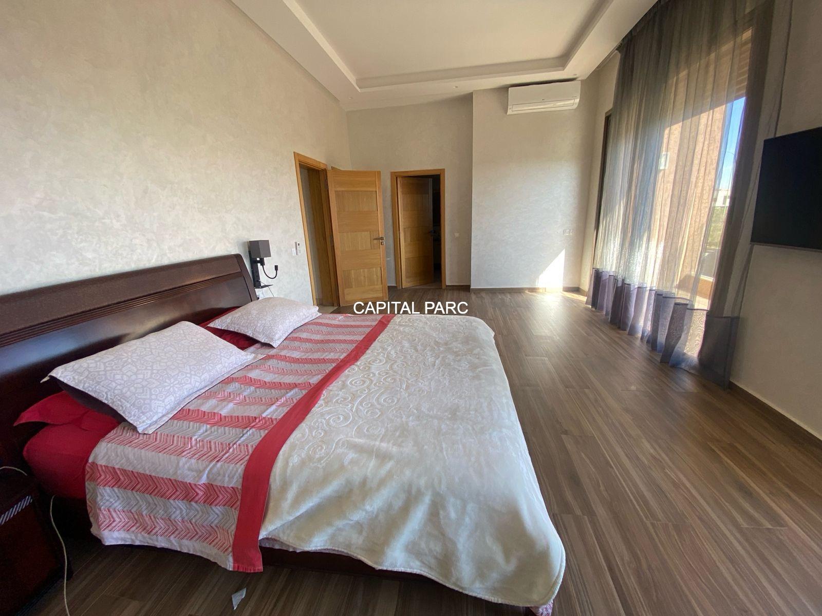 Situation : route de casablanca à 15 minutes du centre-ville de marrakech , 600 m de jardin , 05 chambres , 04 salles de bain, chambres de bonne , salon marocain , salon européen et salle à manger , grande piscine , mur en cascade d’eau , lumière tamisée, piscine moderne à débordement, cuisine avec accès services . Résidence avec poscine principale , terrain de tennis et d’autres activités à l’intérieur de la résidence.