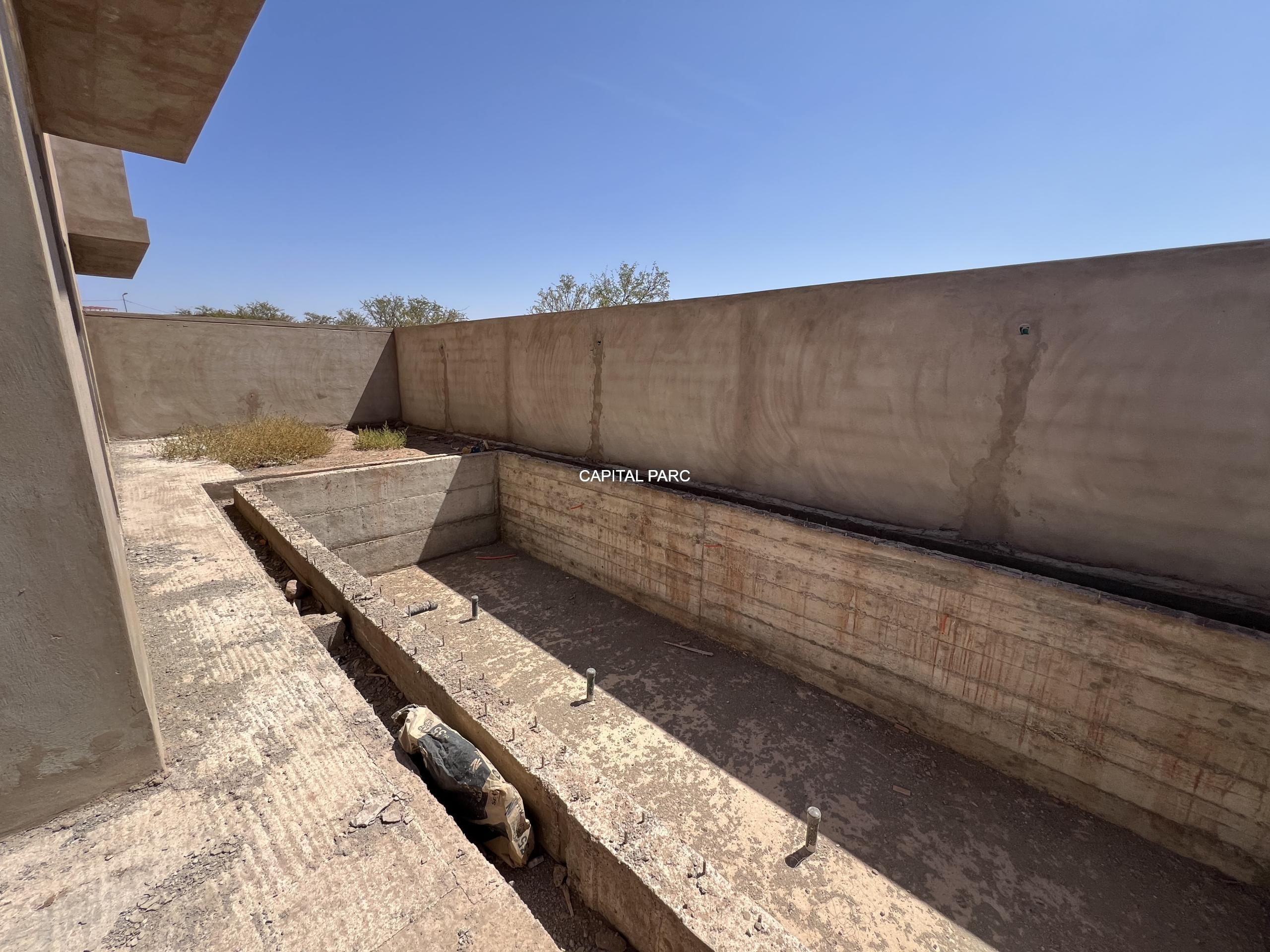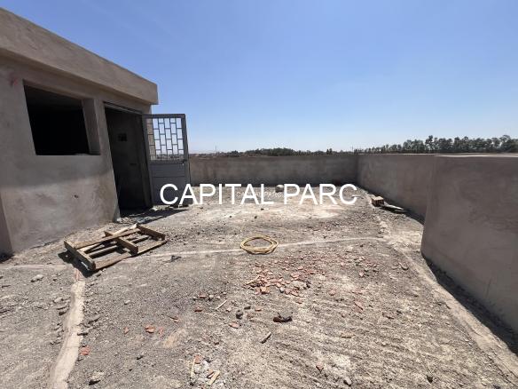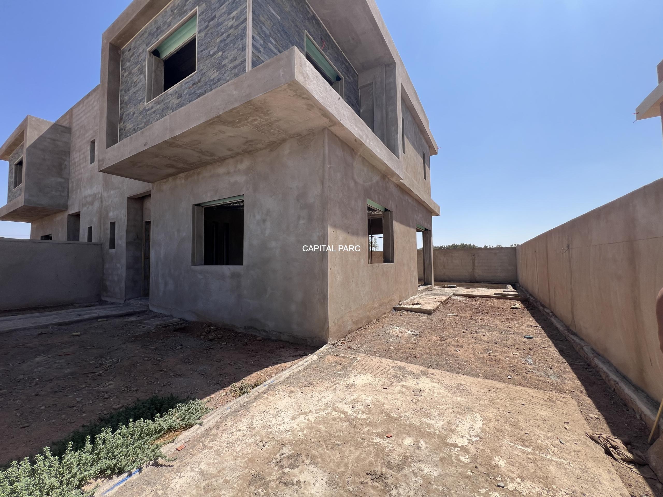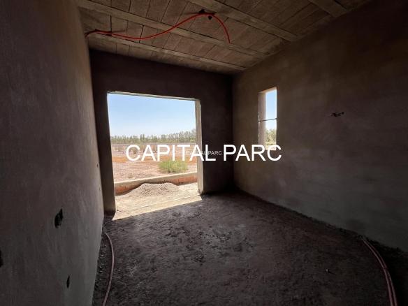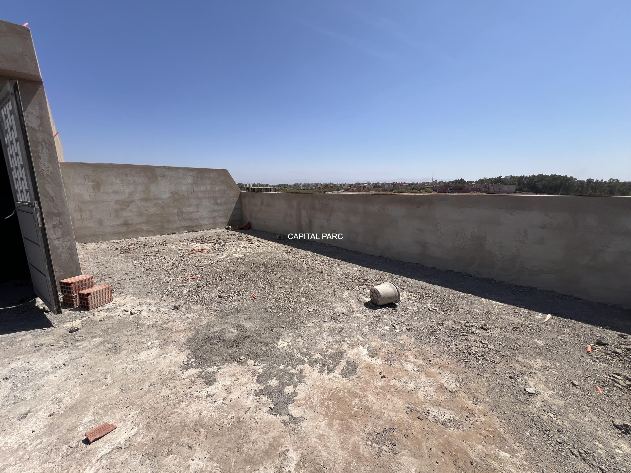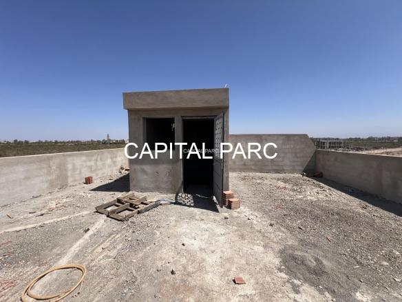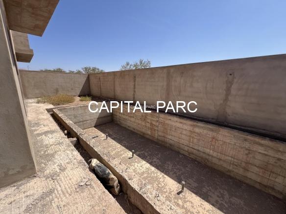 Situation géographique : marrakech sud , route amizmiz . Superfcie du terrain : 280 m , superficie habitable 360 m , nombre de chambre : 04 , nombre de salle de bain : 02 , double salon , cuisine ouverte , salle d’eau pour les inviter , piscine et garage .