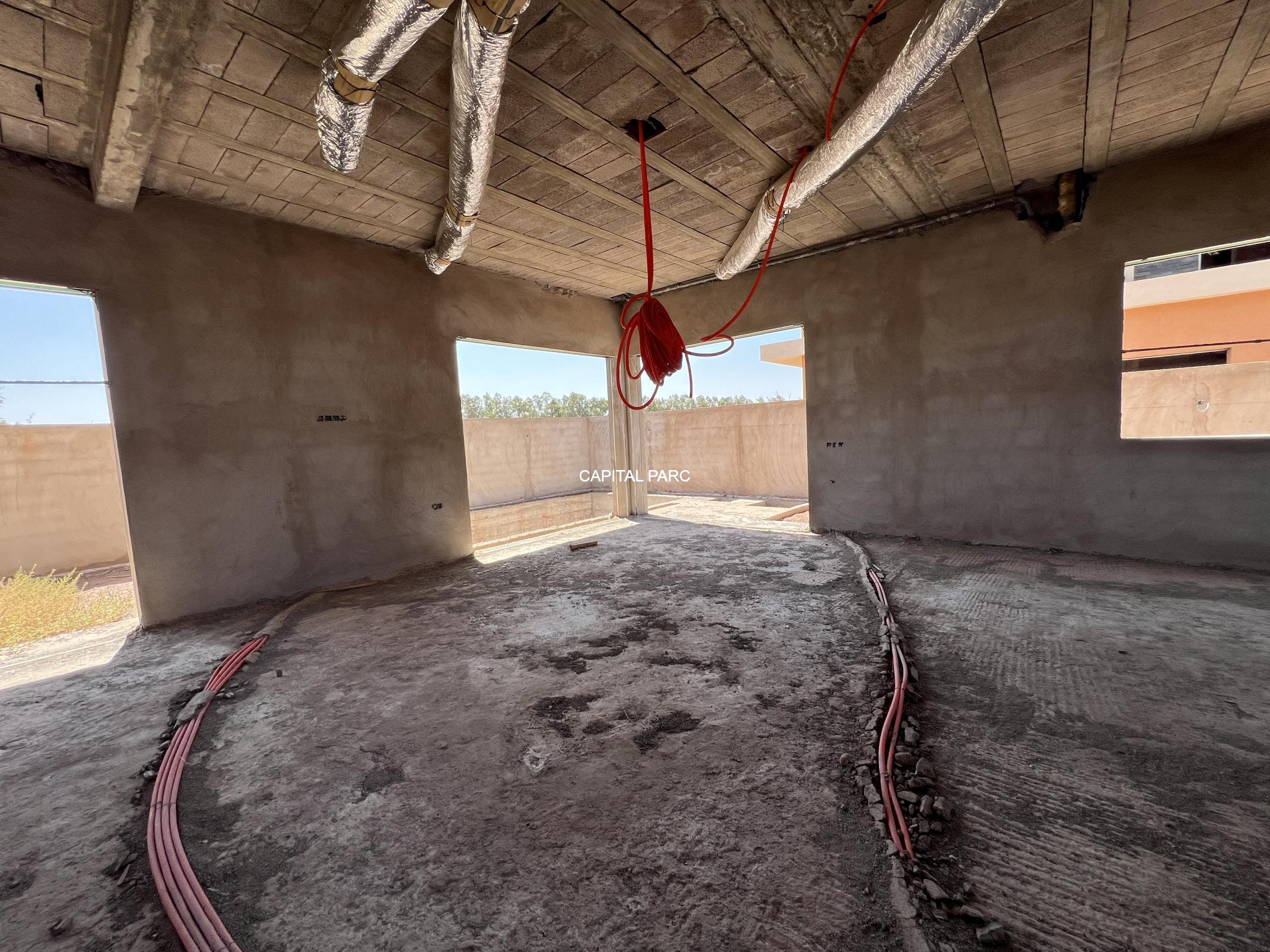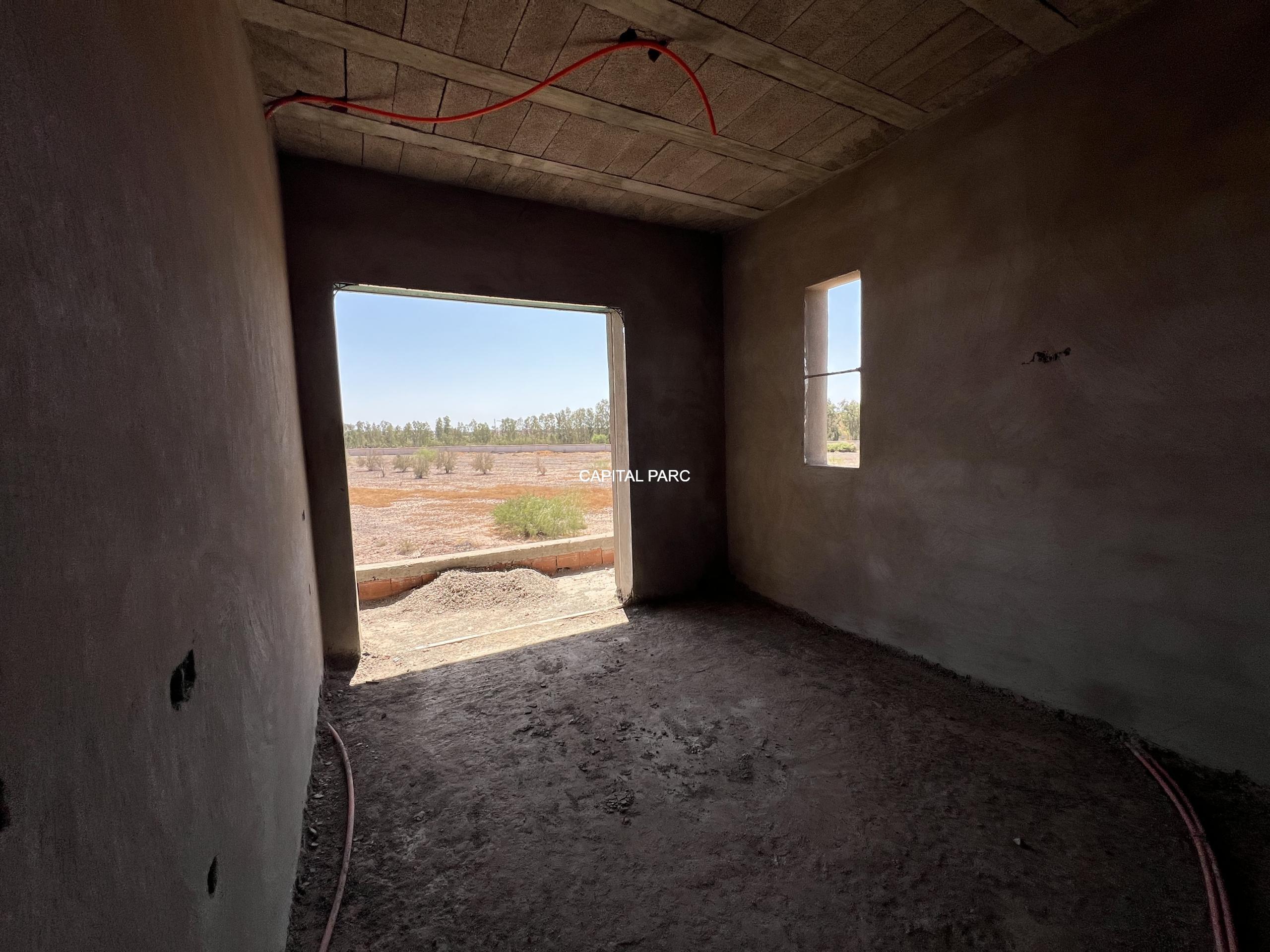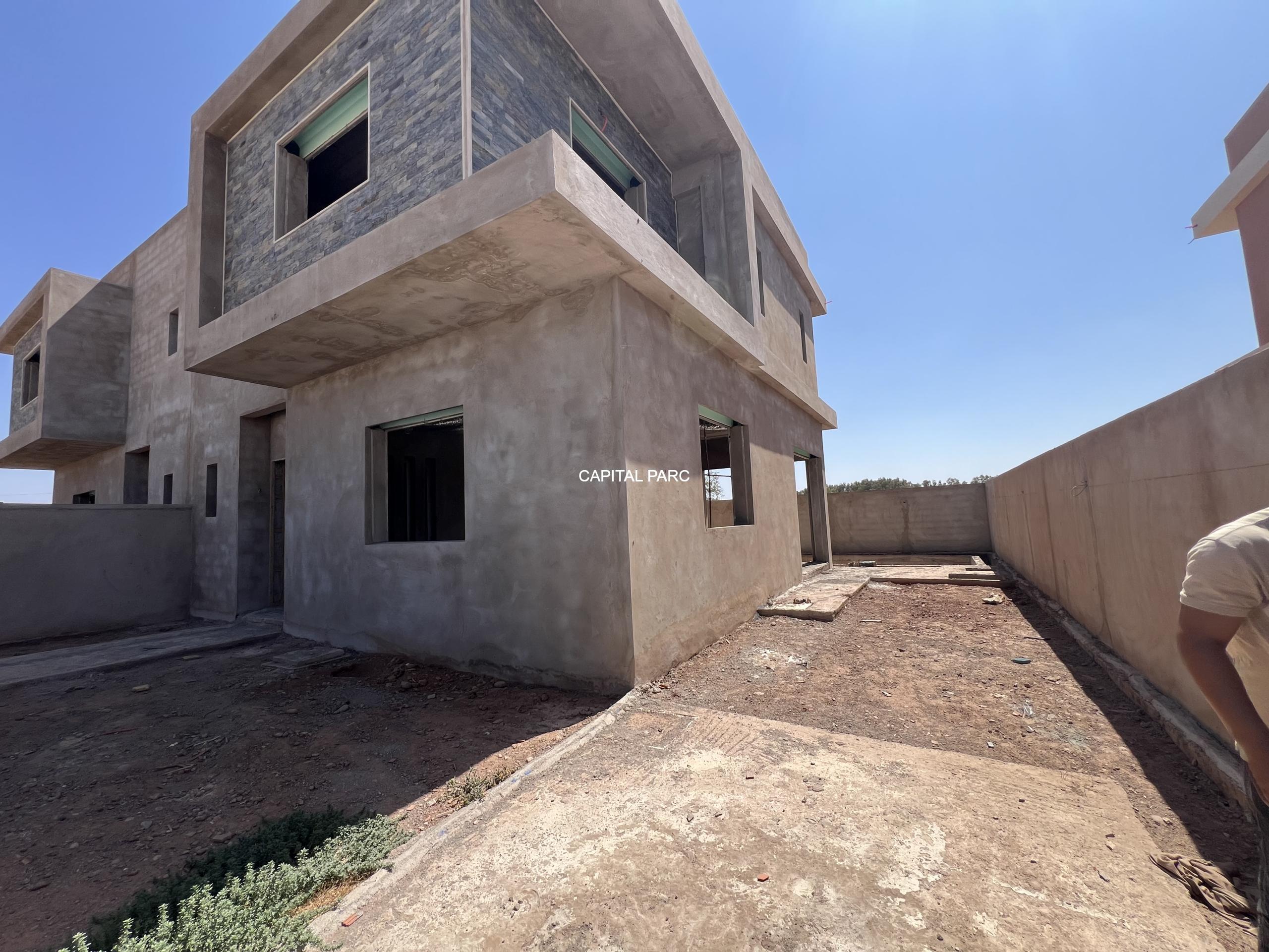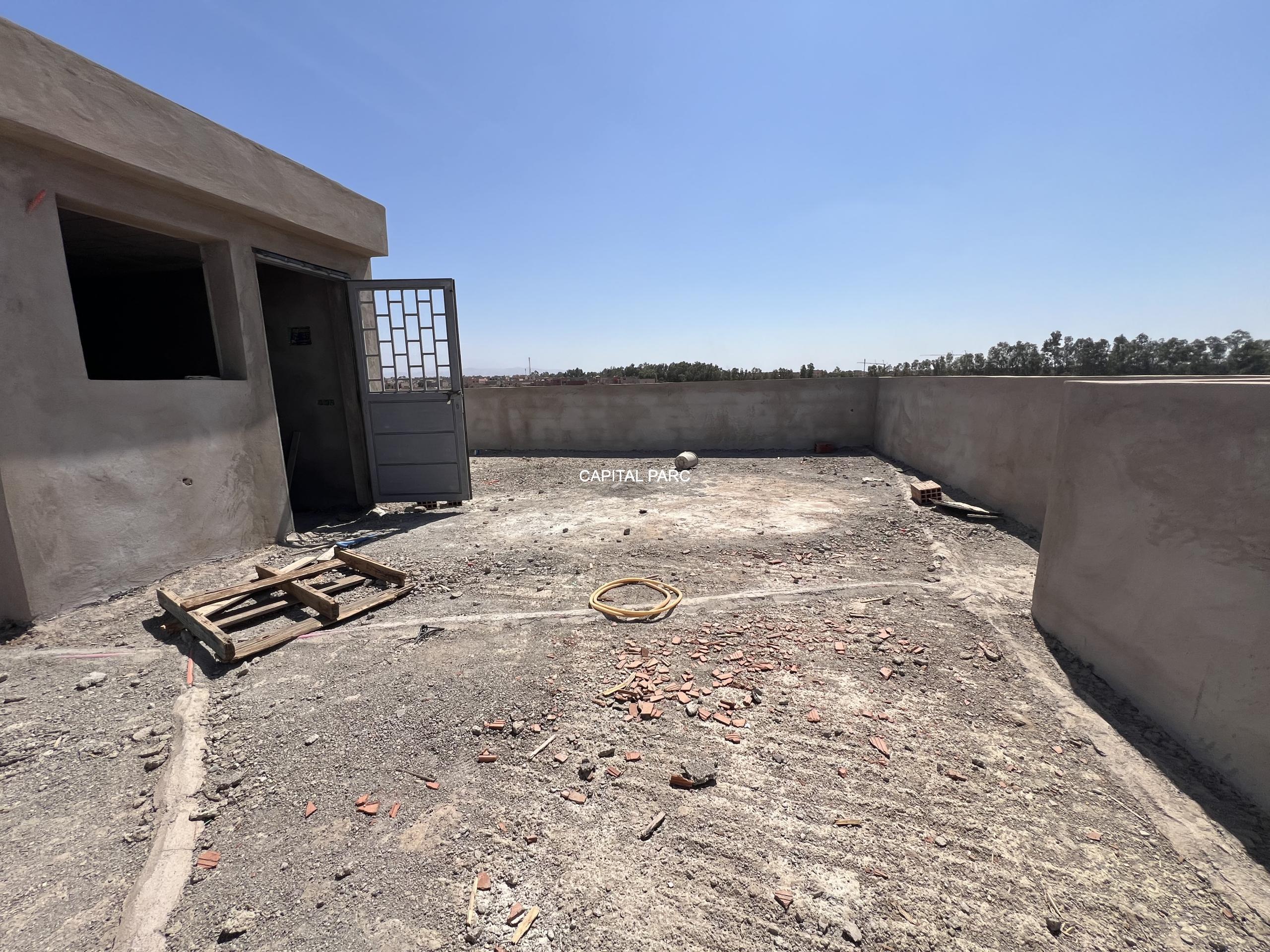 Situation géographique : marrakech sud , route amizmiz . Superfcie du terrain : 280 m , superficie habitable 360 m , nombre de chambre : 04 , nombre de salle de bain : 02 , double salon , cuisine ouverte , salle d’eau pour les inviter , piscine et garage .